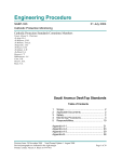 Engineering Procedure SAEP-333 31 July 2004 Cathodic Protection Monitoring Cathodic Protection Standards Committee Members Umair, Ahmed A., Chairman Al-Arfaj, M.A. Al-Mahrous, H.M. Al-Mulhem, Tariq A. Al-Qarashi, A.M. Al-Rasasi, G.M. Al-Salman, A.M. Al-Zubail, S.A. Barnawi, I.Y. Bukhamseen, A.A. Catte, D.R. Hosawi, M.A. Khan, N.A. Saudi Aramco DeskTop Standards Table of Contents 1 2 3 4 5 Scope............................................................. 2 Applicable Documents................................... 2 Safety............................................................. 2 Monitoring Procedures................................... 3 Responsibilities............................................ 19 Appendix A-1...................................................... 21 Appendix A-2...................................................... 23 Appendix A-3...................................................... 29 Appendix B......................................................... 38 Previous Issue: 28 November 2001 Next Planned Update: 1 August 2009 Revised paragraphs are indicated in the right margin Primary contact: Naeem A. Khan on 874-7951 Page 1 of 39 Document Responsibility: Cathodic Protection Issue Date: 31 July 2004 Next Planned Update: 1 August 2009 1 SAEP-333 Cathodic Protection Monitoring Scope Monitoring of the CP systems is required to ensure that the CP systems perform satisfactorily and the structures receive adequate protection. This procedure provides the instructions and establishes the responsibilities to monitor cathodic protection (CP) systems for onshore and offshore facilities. Commentary Note: Cathodic Protection is essential to protect the underground steel structure from corrosion and it is proven to prolong its life expectancy. For this reason it is cost effective that the proponent corrects deficiencies at the earliest possible time". 2 Applicable Documents Saudi Aramco Engineering Procedure SAEP-332 Cathodic Protection Commissioning Saudi Aramco General Instructions GI-0002.100 Work Permit System GI-0428.001 Cathodic Protection Responsibilities Supply Chain Management Manual Topic CU 22.03 3 Safety Cathodic protection personnel are responsible for obtaining appropriate work permits and associated gas test results from the operations foreman before starting any job. Inspect excavations and confined spaces and ensure they are in a safe condition prior to entering. This includes testing for gas, as discussed above. Appropriate personal protective equipment (PPE), such as safety glasses, safety shoes with electrically insulated soles, etc., shall be worn. Fall restraining devices shall be used when working on top of structures such as storage tanks. Appropriate safety precautions must be followed when making electrical measurements, and include: a. Personnel must be knowledgeable and qualified in electrical safety precautions prior to installing, adjusting, repairing or removing impressed current protection equipment. Page 2 of 39 Document Responsibility: Cathodic Protection Issue Date: 31 July 2004 Next Planned Update: 1 August 2009 4 SAEP-333 Cathodic Protection Monitoring b. Use caution when long test leads (100 meters or longer) are extended near overhead high voltage AC power lines, since hazardous voltages can be induced into the test leads. Use rubber mats, rubber gloves, or both, when making measurements near high voltage AC power lines. c. Use caution when stringing test leads across streets, roads and other locations subject to vehicular traffic. d. Use caution when making tests at electrical isolation devices. Appropriate voltage detection instruments or voltmeters with insulated test leads should be used to determine if hazardous voltages exist before proceeding with tests. e. Use properly insulated test lead clips and terminals to avoid contact with unexpected hazardous voltages. Test clips should be attached one at a time each time a connection is made. A single hand should be used to make the connection, in a well balanced body position, while the other hand should be free from resting on any surface. f. Testing should be avoided when there are thunderstorms or rain in the area. Remote lightning strikes can create hazardous voltage surges that travel along the pipe under test. g. Inspect excavations and confined spaces and ensure they are in a safe condition prior to entering. This includes testing for gas, as discussed above. Monitoring Procedures 4.1 Rectifier Periodic Check and Monitoring Procedures: 4.1.1 Rectifier Monthly Checks Check rectifiers on a monthly basis to determine if they are operating. This can be done by Operations or Maintenance personnel who visit the site on a regular basis for purposes other than those relating to cathodic protection. If the checks are done by non-cathodic protection personnel, they shall report any abnormality in rectifier operation to the cathodic protection personnel who operate the system. Exception: Rectifiers fitted with remote monitoring systems do not need to have the monthly checks performed through field personnel visits. The monthly rectifier checks requirement also does not apply to Northern Area Producing Offshore platforms. 4.1.2 Rectifier Quarterly Checks Page 3 of 39 Document Responsibility: Cathodic Protection Issue Date: 31 July 2004 Next Planned Update: 1 August 2009 SAEP-333 Cathodic Protection Monitoring Cathodic protection personnel shall visit rectifier sites on a quarterly basis and immediately prior to the annual survey, to read and record rectifier output volts and amps. Verify these readings with a portable meter and calibrate rectifier meters accordingly. Also check and record oil level and oil temperature on oil-immersed units. Exception: Rectifiers fitted with remote monitoring systems do not need to have the quarterly checks performed through field personnel visits. However, Proponents may decide to perform these site visits anyway, if required due to particular operational needs o