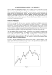 A CAPSULE SUMMARY OF THE WAVE PRINCIPLE The Wave Principle is Ralph Nelson Elliott's discovery that social, or crowd, behavior trends and reverses in recognizable patterns. Using stock market data as his main research tool, Elliott isolated thirteen patterns of movement, or "waves," that recur in market price data. He named, defined and illustrated those patterns. He then described how these structures link together to form larger versions of those same patterns, how those in turn link to form identical patterns of the next larger size, and so on. In a nutshell, then, the Wave Principle is a catalog of price patterns and an explanation of where these forms are likely to occur in the overall path of market development. Pattern Analysis Until a few years ago, the idea that market movements are patterned was highly controversial, but recent scientific discoveries have established that pattern formation is a fundamental characteristic of complex systems, which include financial markets. Some such systems undergo "punctuated growth," that is, periods of growth alternating with phases of nongrowth or decline, building fractally into similar patterns of increasing size. This is precisely the type of pattern identified in market movements by R.N. Elliott some sixty years ago. The basic pattern Elliott described consists of impulsive waves (denoted by numbers) and corrective waves (denoted by letters). An impulsive wave is composed of five subwaves and moves in the same direction as the trend of the next larger size. A corrective wave is composed of three subwaves and moves against the trend of the next larger size. As Figure 1 shows, these basic patterns link to form five- and three-wave structures of increasingly larger size (larger "degree" in Elliott terminology). In Figure 1, the first small sequence is an impulsive wave ending at the peak labeled 1. This pattern signals that the movement of one larger degree is also upward. It also signals the start of a three-wave corrective sequence, labeled wave 2. Figure 1 1 Waves 3, 4 and 5 complete a larger impulsive sequence, labeled wave (1). Exactly as with wave 1, the impulsive structure of wave (1) tells us that the movement at the next larger degree is upward and signals the start of a three-wave corrective downtrend of the same degree as wave (1). This correction, wave (2), is followed by waves (3), (4) and (5) to complete an impulsive sequence of the next larger degree, labeled wave [1]. Once again, a three-wave correction of the same degree occurs, labeled wave [2]. Note that at each "wave one" peak, the implications are the same regardless of the size of the wave. Waves come in degrees, the smaller being the building blocks of the larger. Here are the accepted notations for labeling Elliott Wave patterns at every degree of trend: Wave Degree 5s With the Trend 3s Against the Trend Grand Supercycle* [I] [II] [III] [IV] [V] [A] [B] [C] Supercycle (I) (II) (III) (IV) (V) (A) (B) (C) Cycle I II III IV V ABC Primary* [1] [2] [3] [4] [5] [A] [B] [C] Intermediate (1) (2) (3) (4) (5) (A) (B) (C) Minor 12345 ABC Minute* [i] [ii] [iii] [iv] [v] [a] [b] [c] Minuette (i) (ii) (iii) (iv) (v) (a) (b) (c) Subminuette i ii iii iv v abc *degrees normally denoted by circles are here presented with brackets. Within a corrective wave, waves A and C may be smaller-degree impulsive waves, consisting of five subwaves. This is because they move in the same direction as the next larger trend, i.e., waves (2) and (4) in the illustration. Wave B, however, is always a corrective wave, consisting of three subwaves, because it moves against the larger downtrend. Within impulsive waves, one of the odd-numbered waves (usually wave three) is typically longer than the other two. Most impulsive waves unfold between parallel lines except for fifth waves, which occasionally unfold between converging lines in a form called a "diagonal triangle." Variations in corrective patterns involve repetitions of the three-wave theme, creating more complex structures that are named with such terms as "zigzag," "flat," "triangle" and "double three." Waves two and four typically "alternate" in that they take different forms. Each type of market pattern has a name and a geometry that is specific and exclusive under certain rules and guidelines, yet variable enough in other aspects to allow for a limited diversity within patterns of the same type. If indeed markets are patterned, and if those patterns have a recognizable geometry, then regardless of the variations allowed, certain relationships in extent and duration are likely to recur. In fact, real world experience shows that they do. The most common and therefore reliable wave relationships are discussed in 2 Elliott Wave Principle, by A.J. Frost and Robert Prechter. Applying the Wave Principle The practical goal of any analytical method is to identify market lows suitable for buying (or covering shorts), and market highs suitable for selling (or selling short). The Elliott Wave Principle is especially well suited to these functions. Nevertheless, the Wave Principle does not provide certainty about any one market outcome; rather, it provides an objective means of assessing the relative probabilities of possible future paths for the market. At any time, two or more valid wave interpretations are usually acceptable by the rules of the Wave Principle. The rules are highly specific and keep the number of valid alternatives to a minimum. Among the valid alternatives, the analyst will generally regard as preferred the interpretation that satisfies the largest number of guidelines and will accord top alternate status to the interpretation satisfying the next largest number of guidelines, and so on. Alternate interpretations are extremely important. They are not "bad" or rejected wave interpretations. Rather, they are valid interpretations that are accorded a lower probability than the preferred count. They are an essential aspect of investing with 
