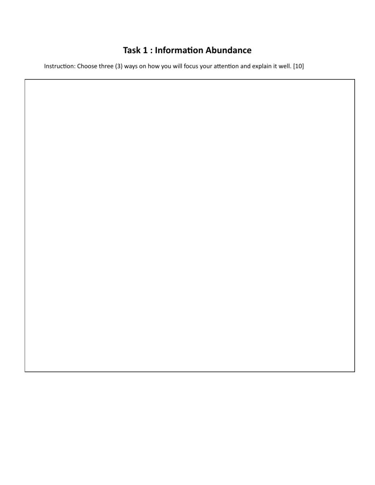 Task 1 : Information Abundance Instruction: Choose three (3) ways on how you will focus your attention and explain it well. [10]