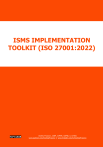 ISMS IMPLEMENTATION TOOLKIT (ISO 27001:2022) TLP:CLEAR Andrey Prozorov, CISM, CIPP/E, CDPSE, LA 27001 www.patreon.com/AndreyProzorov || www.linkedin.com/in/AndreyProzorov ISMS Implementation Toolkit (ISO 27001:2022) TLP:CLEAR 6.0, 27.12.2023 General Information The ISMS Implementation Toolkit comprises a set of documents for cybersecurity professionals who want to understand, design, implement, and get ready for the certification of an Information Security Management System (ISMS) according to ISO 27001:2022. It is used by over 1000 professionals globally, including CISOs, Information Security Managers, GRC Managers, Compliance Managers, DPOs, Internal Auditors, and Information Security Consultants. It is a nonprofit project created by Andrey Prozorov, a cybersecurity and privacy expert with 15 years of experience in ISMS implementation and audit. The toolkit consists of four parts: Intro, Plan, Do, and Check. Each of these parts covers critical topics that address all major subjects related to ISMS. 1. Intro 2. Plan 3. Do 4. Check & Act • • • • • • Design and Planning • ISMS Context • IS Governance • List of ISMS Documents • Asset Management • Risk Management (templates) • IS Policy and Framework • Document Management • Topic-specific policies and procedures • Incident Management and Data Breach Notification • Supply Chain Security • IS Awareness • Gap Analysis • Audit and NC management • Measures and Management Review • Certification audit Glossaries Basic standards Other standards IS Frameworks Risk Management (methodologies) • Mappings The toolkit is regularly reviewed and updated. The current version is 6.0. 200+ documents are available on Patreon - https://www.patreon.com/posts/47806655 You can support this project and get access to all the documents ("Only ISMS Toolkit" or a higher subscription is needed). The list of documents is further. TLP:CLEAR Andrey Prozorov, CISM, CIPP/E, CDPSE, LA 27001 www.patreon.com/AndreyProzorov || www.linkedin.com/in/AndreyProzorov ISMS Implementation Toolkit (ISO 27001:2022) TLP:CLEAR 6.0, 27.12.2023 How to use the toolkit? If you are new to the ISO 27001 standard, start with the following documents: 1. "ISO 27001 Introduction", presentation [1.6] 2. "The ISMS family of standards", presentation [1.9] 3. ISO 27000:2018 ISMS. Overview and vocabulary, mindmap [1.12] 4. ISO 27001:2022, mindmap [1.14] 5. ISO 27002:2022 Information security controls, mindmap [1.15] 6. ISO 27001. New information security controls, 2022 [1.16] 7. ISO 27701:2019 Privacy Information Management, mindmap [1.20] 8. Requirements for documented information in ISO 27001 and ISO 27701 [2.29] 9. All about Information Security Policies [3.10] 10. Introduction to Information Security, Generated by ChatGPT [3.28] If you are planning to implement an ISMS, you should focus on the “Plan” section, especially on these documents: 1. "How to implement an ISMS using the ISMS Implementation Toolkit" [2.1] 2. ISMS Implementation Plan [2.3] 3. ISMS RACI Chart [2.6] 4. Information Security and Data Protection Integrated Approach [2.10] 5. "ISO 27001:2022 Tips and Tricks. How to accelerate the implementation" [2.12] 6. "ISO 27001: ISMS Scope", presentation [2.18] 7. Requirements for documented information in ISO 27001 and ISO 27701 [2.29] 8. An extended list of ISMS Documents [2.32] 9. Readiness to the ISMS (ISO 27001): Simple indicators [4.12] 10. Best ISMS Implementation Guides (ISO 27001) [1.22] If you're familiar with ISO 27001 and are in the process of implementing it, check out my recommendations and templates on specific topics. For example, ISMS Context, Gap Analysis, Information Security Policy and other ISMS documents, Risk management, Statement of Applicability, Awareness, Metrics and KPIs, Internal Audit, ISMS Management Review, Certification Audit and others. All documents are classified into three levels: Beginner, Advanced, or Expert, based on their difficulty and required knowledge. The most important (valuable) documents are marked by π₯. TLP:CLEAR Andrey Prozorov, CISM, CIPP/E, CDPSE, LA 27001 www.patreon.com/AndreyProzorov || www.linkedin.com/in/AndreyProzorov ISMS Implementation Toolkit (ISO 27001:2022) TLP:CLEAR # 6.0, 27.12.2023 Name Level Type File Date π₯ Information Security and Data Beginner advice links 09.12.2022 1.2. Information Security vs Cybersecurity Beginner review pdf, docx 13.02.2023 1.3. IT and IS Governance. Terms Beginner review pdf, docx 12.09.2022 1.4. Cyber Resilience: Terms Beginner review pdf, docx 06.11.2023 1.5. How to understand the NIST CSF if you prefer ISO 27001? Advanced advice pdf, docx 11.08.2023 π₯ "ISO 27001 Introduction", Beginner slides pdf upd.18.12.2023 π₯ "ISO 27001:2022. What has Advanced slides pdf upd.12.11.2022 1.8. ISO Survey 2022: ISO 27001 certificates Advanced review pdf, xlsx 15.09.2022 1.9. π₯ "The ISMS family of standards", Beginner slides pdf 09.10.2023 1.10. The ISO 27000 Family of Standards (mindmap) Beginner review pdf, xmind 17.05.2023 1.11. The ISO 27000 Family of Standards (description) Beginner review pdf, docx upd.06.07.2022 1.12. π₯ ISO 27000:2018 ISMS. Overview and Beginner review pdf, xmind 12.07.2023 1.13. ISO 27100:2022 Cybersecurity. Overview and concepts, mindmap- Beginner review pdf, xmind 06.11.2023 1.14. π₯ ISO 27001:2022, mindmap Beginner review pdf, xmind upd.10.07.2023 1.15. π₯ ISO 27002:2022 Information security Beginner review pdf, xmind upd.13.03.2023 π₯ ISO 27001. New information security Beginner review pdf, docx upd.05.02.2022 1.17. ISO 27002-2022: Information Security Controls by Operational Capabilities Expert review pdf, xmind 06.02.2023 1.18. ISO 27001. Information Security Controls Mapping (2013 and 2022) Advanced review pdf, docx 21.10.2022 1.19. ISO 27003:2017 ISMS Guidance, mindmap Advanced review pdf, xmind upd.10.07.2023 1.20. π₯ ISO 27701:2019 Privacy Information Beginner review pdf, xmind 14.03.2022 1.21. ISO 277