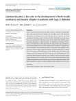 Received: 21 November 2018 Revised: 4 March 2019 Accepted: 5 March 2019 DOI: 10.1111/obr.12862 OBESITY COMORBIDITY/ETIOLOGY AND PATHOPHYSIOLOGY Lipotoxicity plays a key role in the development of both insulin resistance and muscle atrophy in patients with type 2 diabetes Ruth C.R. Meex | Ellen E. Blaak Department of Human Biology, NUTRIM School of Nutrition and Translational Research in Metabolism, Maastricht University, Maastricht, The Netherlands | Luc J.C. van Loon Summary Insulin resistance and muscle mass loss often coincide in individuals with type 2 diabetes. Most patients with type 2 diabetes are overweight, and it is well established Correspondence Ruth C.R. Meex, Department of Human Biology, Maastricht University, 6229 ER Maastricht, The Netherlands. Email: ruth.meex@maastrichtuniversity.nl that obesity and derangements in lipid metabolism play an important role in the Funding information Horizon 2020 Framework Programme, Grant/ Award Number: MARIE SKŁODOWSKA‐ CURIE INDIVIDUAL FELLOWSHIPS; European Commission, Grant/Award Number: H2020‐ MSCA‐IF more, an increased flux of fatty acids from the adipose tissue may contribute to development of insulin resistance in these individuals. Specifically, increased adipose tissue mass and dysfunctional adipose tissue lead to systemic lipid overflow and to low‐grade inflammation via altered secretion of adipokines and cytokines. Furtherincreased fat storage in the liver and in skeletal muscle, resulting in an altered secretion of hepatokines, mitochondrial dysfunction, and impaired insulin signalling in skeletal muscle. Recent studies suggest that obesity and lipid derangements in adipose tissue can also lead to the development of muscle atrophy, which would make insulin resistance and muscle atrophy two sides of the same coin. Unfortunately, the exact relationship between lipid accumulation, type 2 diabetes, and muscle atrophy remains largely unexplored. The aim of this review is to discuss the relationship between type 2 diabetes and muscle loss and to discuss some of the joint pathways through which lipid accumulation in organs may affect peripheral insulin sensitivity and muscle mass. K E Y W OR D S insulin resistance, interorgan crosstalk, muscle atrophy, obesity Abbreviations: 1RM, one repetition maximum; DAG, diacylglycerol; FGF‐19, fibroblasts 1 | I NT R O DU CT I O N growth factor 19; FGF‐21, fibroblasts growth factor 21; FXR, farnesoid X receptor; GM‐ CSF, granulocyte‐macrophage colony‐stimulating factor; IL, interleukin; IMCL, intramyocellular lipid droplets; IκB, inhibitor of kappa B; mTOR, mammalian target of The global prevalence of diabetes is rising rapidly. The number of rapamycin; MuRF1, muscle RING finger 1; NAFLD, nonalcoholic fatty liver disease; NF‐κB, adults with diabetes in the world increased from 108 million in 1980 nuclear factor kappa B; PA, phosphatidic acid; PEDF, pigment epithelium‐derived factor; PGC1α, peroxisome proliferator‐activated receptor Gamma Coactivator 1‐alpha; PKC, to 422 million in 2014,1 and by 2045, this number is expected to protein kinase C; PPARγ, peroxisome proliferator‐activated receptors gamma; PXR, pregane increase to 693 million.2 Type 2 diabetes (T2D) is the most common X receptor; RBP4, retinol binding protein 4; ROS, reactive oxygen species; T2D, type 2 diabetes; TNFα, tumour necrosis factor α form of this disease and accounts for 85% to 95% of the cases. -------------------------------------------------------------------------------------------------------------------------------- This is an open access article under the terms of the Creative Commons Attribution‐NonCommercial License, which permits use, distribution and reproduction in any medium, provided the original work is properly cited and is not used for commercial purposes. © 2019 The Authors. Obesity Reviews published by John Wiley & Sons Ltd on behalf of World Obesity Federation Obesity Reviews. 2019;20:1205–1217. wileyonlinelibrary.com/journal/obr 1205 1206 MEEX ET AL. Muscle insulin resistance is one of the key features of T2D. In muscle and liver.15-18 It is well established that obesity plays a crucial recent years, however, it has been increasingly recognized that there role in the development of insulin resistance.19 In the past two is also a deterioration in muscle mass and muscle strength in patients decades, an increasing number of papers also linked obesity to a 3,4 with T2D, and this is independent of the length of disease, meta- reduced muscle mass, and this phenomenon has been named bolic control, vitamin D status, and the presence of microvascular “sarcopenic obesity (Figure 1).”20 Sarcopenic obesity is now frequently 5 complications and pain. In healthy individuals, muscle mass decreases observed and led to the suggestion that obesity not only causes insulin at an annual rate of 1% to 2% after the age of 50.6 This means that an resistance but also plays a role in the development of muscle atro- average male person of 80 kg with 35 kg of muscle mass would lose phy.21 If this is true, this would mean that insulin resistance and mus- 350 to 700 g a year, which is the equivalent of 7 to 14 kg over cle atrophy are “two sides of the same coin” and it would explain the 20 years. Individuals with T2D have an accelerated ageing process, simultaneous occurrence of insulin resistance and muscle atrophy in which places them at greater risk for developing frailty at an earlier many patients with T2D. Notably, the combination of increased adi- age. We, as well as others, have shown that the problem of muscle pose tissue mass and muscle atrophy may aggravate cardiometabolic loss is most striking in individuals with T2D who are older; it is esti- complications.22,23 In this review, we will discuss the relationship mated that 30% to 50% of patients with T2D older than 65 suffer from between T2D and muscle mass loss, and we will discuss some of the moderate to severe muscle loss,