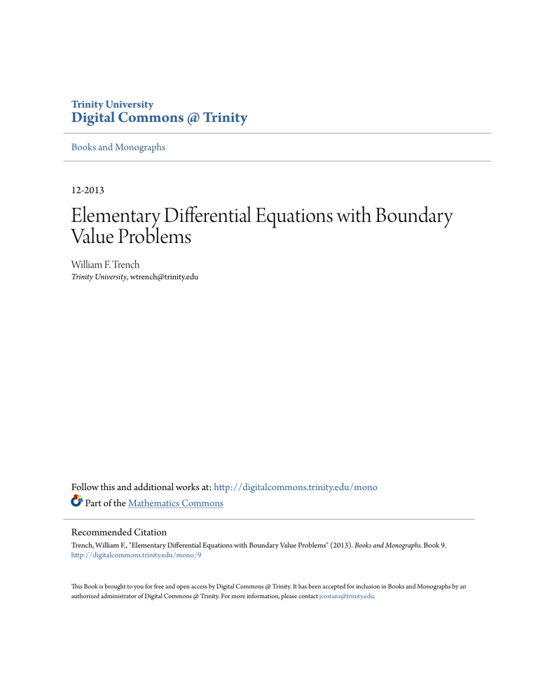 Trench, William F., "Elementary Differential Equations with Boundary Value Problems" (2013). Books and Monographs. Book 9.