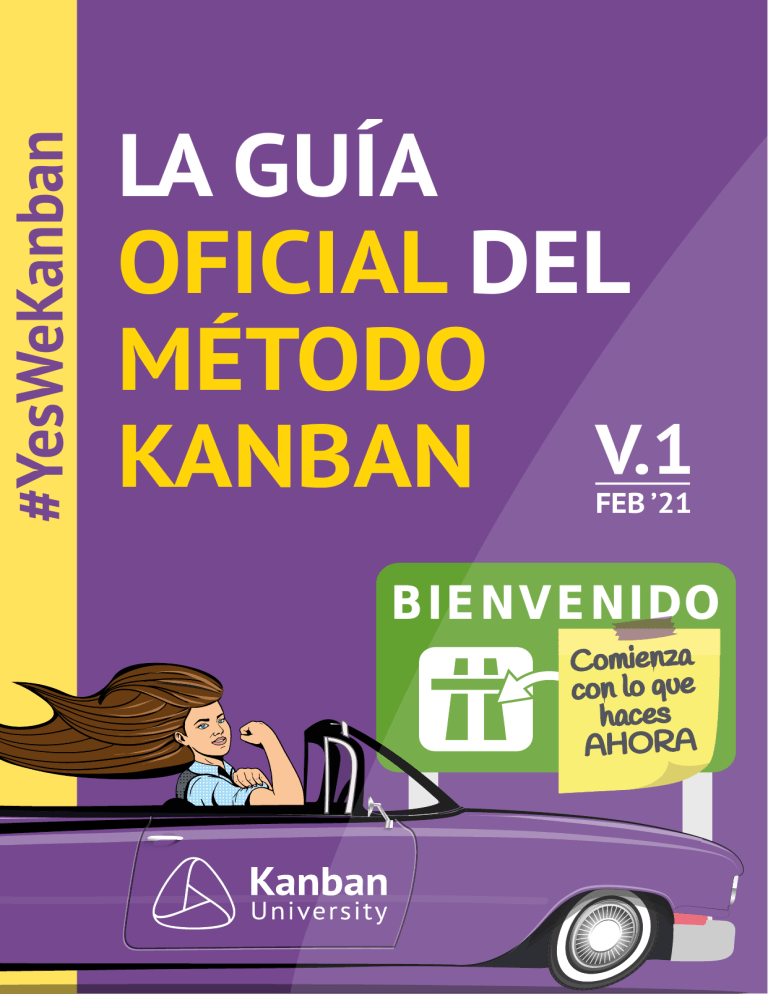 #YesWeKanban LA GUÍA OFICIAL DEL MÉTODO KANBAN V.1 FEB ’21 BIENVENIDO Comienza con lo que haces AHORA Índice El Método Kanban3 ¿Qué es Kanban? 3 ¿Método, metodología o marco de trabajo? 4 Orígenes4 Áreas de Aplicación4 Principios y Prácticas del Método Kanban 5 “Kan-Bahn” - Una metáfora introductoria 8 Prácticas específicas 11 Principios de Kanban5 Principios de Gestión del Cambio5 Principios de Entrega del Servicio5 Prácticas generales de Kanban6 Visualizar6 Limitar el Trabajo en Curso (WiP)6 Gestionar el flujo 6 Hacer las políticas explícitas6 Implementar ciclos de retroalimentación7 Mejorar colaborativamente, evolucionar experimentalmente 7 Utilización vs Rendimiento9 Tipos de trabajo9 Clases de servicio9 Gestionar el flujo de trabajo 9 Visualizar9 Limitar el trabajo en paralelo9 Traccionar (Pull)10 Flujo de trabajo10 Bloqueos10 Políticas explícitas10 Ciclos de retroalimentación10 Mejorar el sistema10 Opciones, puntos de compromiso y tiempo de entrega 10 STATIK11 Tableros Kanban12 Los límites del trabajo en curso (WiP limits) y la tracción (pull) 12 Métricas principales de Kanban13 Cadencias de Kanban14 Copyright © Mauvius Group Inc. 2021. Todos los derechos reservados. 1570 W Armory Way Ste 101, #188, Seattle, WA 98119 2 El Método Kanban Esta guía está dirigida a las personas que se inician en Kanban y están interesadas en profundizar los conceptos básicos del método. Por este motivo, se incluye una metáfora inicial (KanBahn) para ayudar a los lectores a conectar con el concepto. Esperamos que esta guía facilite un inicio sencillo dentro del amplio mundo de conocimiento sobre el Método Kanban. Para los alumnos de las clases de Kanban University que quieran revisar algunos aspectos sobre el Método Kanban, recomendamos el libro electrónico “Kanban Esencial Condensado” como referencia. ¿Qué es Kanban? La manera más sencilla de entenderlo es decir que “con Kanban, puedes gestionar el trabajo”. Es un método para gestionar todo tipo de servicios profesionales, también el denominado trabajo del conocimiento. Utilizar el Método Kanban significa aplicar un pensamiento holístico sobre los servicios, enfocándose en mejorarlos desde la perspectiva de sus clientes. Con el Método Kanban, se visualiza el trabajo y cómo se mueve a través de un flujo de trabajo. Esto te ayuda a gestionar de manera eficiente tu negocio , incluyendo la comprensión y gestión de los riesgos en la entrega de servicios a los clientes. Con el tiempo, gracias a Kanban, podrás desarrollar una capacidad adaptativa para responder mejor y más rápido a los cambios de necesidades y expectativas de tus clientes o de tu entorno empresarial. Kanban es ampliamente conocido por su uso en equipos, para aliviar la sobrecarga de trabajo y recuperar el control sobre el mismo. Aunque esto permite obtener beneficios inmediatos, aplicando el Método Kanban a mayor escala (por ejemplo, para una línea de servicio que habitualmente incluya el trabajo de varios equipos o partes de una organización) genera mayores oportunidades. Utilizado en un enfoque orientado al servicio, Kanban es una herramienta eficaz de desarrollo organizacional. Kanban University (www.kanban.university) es el centro del método y donde es encuentra la comunidad global de formadores, entrenadores y consultores que continúan evolucionando y desarrollando su conocimiento. 3. FOMENTAR ACTOS DE LIDERAZGO a todos los niveles Pr #YesWeKanban Prácticas Generales VISUALIZAR LIMITAR EL TRABAJO EN CURSO ¡Deja de empezar, empieza a terminar! De derecha a izquierda. Limita el trabajo en el sistema a la capacidad disponible, basándote en los datos. Muestra el trabajo y su flujo. Visualiza los riesgos. Construye un modelo visual que refleje cómo se trabaja. HACER LAS POLÍTICAS EXPLÍCITAS ESTABLECER CICLOS DE RETROALIMENTACIÓN Ten políticas acordadas y visibles para todos los involucrados: - Criterios de Pull (tracción/arrastre) - Límites de WiP (trabajo en curso) - Clases de servicio - Otras que correspondan Establece ciclos de retroalimentación con la cadencia adecuada. Fomenta la colaboración, el aprendizaje y las mejoras. Basado en datos. 1. COMPRENDER Y ENFOCARSE en cumplir las necesidades y expectativas del cliente 2. GESTIONAR EL TRABAJO; dejar que los trabajadores se auto organicen en torno a él 3. REVISAR PERIÓDICAMENTE LA RED DE SERVICIOS Y SUS POLÍTICAS, para mejorar los resultados entregados GESTIONAR EL FLUJO El flujo es el movimiento del trabajo. Gestiona el flujo para ser predecible y confiable. Utiliza los datos. MEJORAR COLABORATIVAMENTE, EVOLUCIONAR EXPERIMENTALMENTE Usa el método científico. Cambia basándote en hipótesis. Ejecuta experimentos para aprender (safe-to-fail experiments). Yes We 2. ACORDAR la búsqueda de la mejora continua a través del cambio evolutivo Princi pio del C s de Ge s amb io tión 1. EMPEZAR CON LO QUE HACES AHORA: - Entendiendo los procesos actuales tal como se utilizan - Respetando roles, responsabilidades y títulos existentes ga tre En de io ios rvic cip e in el S d COLABORACIÓN · COMPRENSIÓN · LIDERAZGO EL MÉTODO KANBAN ENFOQUE AL CLIENTE · TRANSPARENCIA · FLUJO DE TRABAJO · ACUERDO · EQUILIBRIO· RESPETO Copyright © Mauvius Group Inc. 2021. Todos los derechos reservados. 1570 W Armory Way Ste 101, #188, Seattle, WA 98119 3 ¿Método, metodología o marco de trabajo? Kanban es frecuentemente confundido con una metodología o un marco de trabajo. En Ingeniería de Software, una metodología es una aproximación a la definición de procesos de desarrollo de software y gestión de proyectos (un nombre poco apropiado para “metodología” que significa “el estudio de métodos”). Las metodologías contienen flujos de trabajo y procesos definidos y prescriptivos, incluidos roles y responsabilidades. Esto significa que, habitualmente, son específicos a un dominio como el del desarrollo de software. Por otra parte, un marco de trabajo es un