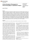 588501 research-article2015 QHRXXX10.1177/1049732315588501Qualitative Health ResearchMorse General: Keynote Critical Analysis of Strategies for Determining Rigor in Qualitative Inquiry Qualitative Health Research 2015, Vol. 25(9) 1212­–1222 © The Author(s) 2015 Reprints and permissions: sagepub.com/journalsPermissions.nav DOI: 10.1177/1049732315588501 qhr.sagepub.com Janice M. Morse1 Abstract Criteria for determining the trustworthiness of qualitative research were introduced by Guba and Lincoln in the 1980s when they replaced terminology for achieving rigor, reliability, validity, and generalizability with dependability, credibility, and transferability. Strategies for achieving trustworthiness were also introduced. This landmark contribution to qualitative research remains in use today, with only minor modifications in format. Despite the significance of this contribution over the past four decades, the strategies recommended to achieve trustworthiness have not been critically examined. Recommendations for where, why, and how to use these strategies have not been developed, and how well they achieve their intended goal has not been examined. We do not know, for example, what impact these strategies have on the completed research. In this article, I critique these strategies. I recommend that qualitative researchers return to the terminology of social sciences, using rigor, reliability, validity, and generalizability. I then make recommendations for the appropriate use of the strategies recommended to achieve rigor: prolonged engagement, persistent observation, and thick, rich description; inter-rater reliability, negative case analysis; peer review or debriefing; clarifying researcher bias; member checking; external audits; and triangulation. Keywords qualitative; trustworthiness; rigor; reliability; validity; generalizability; dependability; credibility; transferability In the 1980s, Guba and Lincoln transformed the nature of qualitative inquiry by developing criteria to ensure rigor (which they termed trustworthiness) during qualitative inquiry, to evaluate the credibility, transferability, dependability, and the trustworthiness of the completed product (Guba, 1981; Guba & Lincoln, 1985, 1989). These criteria included strategies that, in various forms, have been used extensively for ensuring rigor for four decades, yet, with few exceptions (Krefting, 1991; O’Neill, 1995; Tuckett, 2005), have not been questioned. They have been used as the criteria to ensure rigor during the conduct of the research, as checklists for the evaluation of the research, and as indicators of the worthiness of the research (Morse, in press-a, in press-b). All textbooks on qualitative methods contain a description of these strategies to be used in inquiry; funding agencies use them to provide an assurance of quality, and journal reviewers use them for the evaluation of the reliability and the validity of the completed research. However, despite these strategies being universally perceived as essential in qualitative inquiry, their use has not been carefully examined. We have neither critiqued their use, nor determined how they actually affect research design and the quality of inquiry. We have not even determined which strategies are appropriate for use in each type of inquiry, or for each type of data collection strategy. We have not determined how they actually ensure the quality of inquiry and how they change the final product of our research. What are these strategies? Guba and Lincoln (1989, pp. 301–329) identified the overall goal of trustworthiness, consisting of credibility, transferability, dependability, and confirmability, to be respectively equivalent to quantitative criteria of internal validity, external validity, reliability, and objectivity. These criteria have remained the same over time (see, for instance, Creswell, 2012), but the strategies for attaining each have changed over time. The strategies proposed by Guba and Lincoln (1989) were as follows: Credibility (i.e., internal validity): Prolonged engagement, persistent observation, triangulation, peer debriefing, negative case analysis, referential adequacy, and member checks (process and terminal). Transferability (external validity, or generalizability): Thick description is essential for “someone interested” 1 University of Utah, Salt Lake City, Utah, USA Corresponding Author: Janice M. Morse, University of Utah, 2151 E 900 S, Salt Lake City, UT 84108, USA. Email: vshannonqhr@gmail.com 1213 Morse (p. 316) to transfer the original findings to another context, or individuals. Dependability (i.e., reliability): Attainable through credibility, the use of “overlapping methods” (triangulation), “stepwise replication” (splitting data and duplicating the analysis), and use of an “inquiry audit” (p. 317) or audit trail. Confirmability (Objectivity): Using strategies of triangulation and the audit trail. The final step, addressing all of the above criteria, is the reflexive journal. However, how these strategies are operationalized has developed over time, and it is not clear whether Guba and Lincoln expected all to be practiced for every project. Creswell (2012) noted that “qualitative researchers should engage in at least two of them in any given study” (p. 253), but he did not tell us which two, or why, when, and how to use each strategy. Furthermore, we do not know whether and how the use of these strategies, as presently operationalized during inquiry, affects the process of inquiry. Do they enhance the processes of conceptualization for the investigators? Inhibit inquiry? Do they work—making the inquiry more rigorous—or do they make no difference to the developing research? Do they actually make our research valid, reliable and trustworthy? These questions suggest it is time to reopen the discussion on the determination of trustworthiness in qualitative inquiry: We must critique the use of recommended strateg