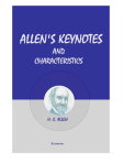 Keynotes and Characteristics with Com parisons of som e of the Leading Rem edies of the M ateria M edica By H. C. Allen, M. D. AUTHOR OF THE THERAPEUTICS OF FEVERS, BOENNINGHAUSEN'S REPERTORY SLIPS AND MATERIA MEDICA OF THE NOSODES. FOURTH EDITION Preface: Fourth Edition What applied to the third edition applies to this, the fourth. The facet that a fourth is demanded is convincing proof that Dr. Allen left an indestructible monument of homeopathic materia medica, on that is true to Homeopathy and immensely helpful to every physician who consults it. The Publishers Preface: Third Edition The first edition of this book was only about half the size of the second, as it was prepared somewhat hastily for a special purpose, but Dr. Allen took his time to the second edition and gave the world a well rounded out and complete standard book on homeopathic materia medica. We do no mean that the first edition was faulty as to its matter, for is was used unchanged in the later edition, but it did not embrace a sufficient number of remedies. As Dr. Allen died before a third edition was needed we concluded to bring it out unchanged. It is a masterpiece of materia medica work: its symptomatology is made up of the unchanging landmarks of our remedies that are in constant use; it is, in short, a book that needs no revision. The Publishers Philadephia, Pa. Preface: Second Edition In preparing the second edition for the press the work has been enlarged and practically rewritten. Many more remedies have been included and symptoms and comparisons extended, yet care has been taken that every symptom has been verified. The original plan has been maintained, viz., to give only those symptom-guides that mark the individuality of the remedy. that the student of materia medica may use them as landmarks to master the genius of the remedial agent. At the suggestion of the publisher and in response to numerous enquiries a more extended symptomatology of the nosodes has been included, for these invaluable additions to our armamentarium, like the so-called tissue remedies of Schuessler, only need more extensive provings to place them in the list of polychrests. That the student may acquire that correct pronunciation of our remedial agents an alphabetical list of remedies with the accentuation is given, for a homeopathic physician may properly be held accountable for the correct use of the terms peculiar to his profession. An index of remedies and comparisons is also included. Preface: First Edition The life-work of the student of homoeopathic Materia Medica is one of constant comparison an differentiation. He must compare the pathogenesis of a remedy with the recorded anamnesis of the patient; he must differentiate the apparently similar symptoms of two or more medical agents in order to select the simillinum. To enable the student or practitioner to do this correctly and rapidly he must have as a basis for comparison, some knowledge of the individuality of the remedy; something that is peculiar, uncommon, or sufficiently characteristic in the confirmed pathogenesis of a polychrest remedy that may be used as a pivotal point of comparison. It may be a so-called "keynote," a "characteristic," the "red strand of the rope," and central modality or principle as the aggravation of Bryonia, the amelioration from motion of Rhus, the furious, vicious delirium of Belladonna or the apathetic indifference of Phosphoric acid - some familiar landmark around which the symptoms may be arranged in the mind for comparison. Something of this kind seems indispensable to enable us to intelligently and successfully use our voluminous symptomatology. Also, if we may judge from the small number of homeopathic physicians who rely on the single remedy in practice, and the almost constant demand for a "revision" of the Materia Medica, its study in the past, as well as at present, has not been altogether satisfactory to the majority. An attempt to render the student's task less difficult, to simplify its study, to make it both interesting and useful, to place its mastery within the reach of every intelligent man or woman in the profession, is the apology for the addition of another monograph to our present works of reference. It is all-important that the first step in the study of homeopathic therapeutics be correctly taken, for the pathway is then more direct and the view more comprehensive. The object of this work is to aid the student to master that which is guiding and characteristic in the individuality of each remedy and thus utilize more readily the symptomatology of the Homoeopathic Materia Medica, the most comprehensive and practical work for the cure of the sick ever given the medical profession. It is the result of years of study as student, practitioner and teacher, and is published at the earnest solicitation of many alumni of Hering College, with the hope that it may be of as much benefit to the beginner as it has been to the compiler. 2 Allen’s Keynotes Abrotanum Southernwood. (Compositae.) Alternate constipation and diarrhoea; lineteria. Marasmus of children with marked emaciation, especially of legs (Iod., Sanic., Tub.); the skin is flabby and hangs loose in folds (of neck, Nat. m., Sanic.). In marasmus head weak, cannot hold it up. (Aeth.). Marasmus of lower extremities only. Ravenous hunger; loosing flesh while eating well (Iod., Nat. m., Sanic., Tub.). Painful contractions of the limbs from cramps or following colic. Rheumatism; for the excessive pain before the swelling commences; from suddenly-checked diarrhoea or other secretions; alternates with haemorrhoids, with dysentery. Gout; joints stiff, swollen, with pricking sensation; wrists and ankle-joints painful and inflamed. Very lame and sore all over. Itching chilblains (Agar.). Great weakness and prostration and a kind of hectic fever with children; unable to stand. Child is ill-natured, irritable, cross and despondent; violent, inhuman, would like to do something cruel