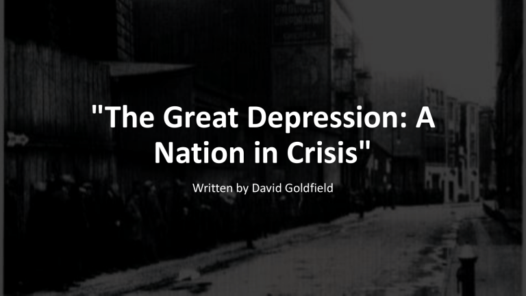 "The Great Depression: A Nation in Crisis" Written by David Goldfield Outline • Warm-up Questions • Reading Strategy: Analyze Graphs • Article • Assignment Warm-Up Questions Reading Strategy Reading One: The Great Depression: A Nation in Crisis Unemployed men outside Al Capone's soup kitchen in Chicago during the Great Depression 1931 5 • Prosperity: the state of thriving, especially in terms of wealth, success, and well-being • Manipulations: Controlling or influencing something in a skillful or sometimes deceptive way. • Plunge: To drop suddenly and steeply • Evaporate: To disappear or vanish, especially quickly. Do you think the rise of remote work and online platforms reflects a new kind of economic "bubble" in the post-pandemic era? evaporate • Distribution: the way something is shared or spread out. • Collapse: a sudden failure or breakdown. • Recovery: the process of returning to a normal or better state. 1. As college students, how do you think income inequality or economic instability affects access to education and opportunities? 2. Do you think large corporations today hold too much power, similar to the oligopolies in the 1920s? How does this affect consumers and smaller businesses? Oligopolies Have you ever faced a situation where something important in your life plummeted (e.g., grades, opportunities) or skyrocketed (e.g., success, costs)? How did you handle it? • Plummet: to fall or drop suddenly and steeply. • Skyrocket: to rise or increase rapidly and dramatically. skyrocket plummet skyrocket • Stifling: preventing something from happening or growing; suffocating. • Dispossessed: people who have lost their homes, land, or possessions. • Compensation: payment or something given to make up for a loss or service. In what ways did the migration of dispossessed farmers challenge the idea of the “American Dream” during the Depression? Tickle-down Economy What do you think the "trickle-down" approach meant to ordinary people during the Depression? • Unprecedented: never done or known before • Relief: aid or assistance provided, especially in times of hardship or need. • Intervention: The act of coming between to influence or take action, especially to resolve a situation. • Indispensable: something that cannot be done without or replaced. paraphrasing Assignment The (1)_________ of the 1920s abruptly ended with the (2)_________ collapse of the stock market in October 1929. Financial manipulations and speculative behavior contributed to the plunge in market confidence, wiping out years of gains. Much of the nation’s wealth (3)________, leading to a stifling economic depression characterized by the unequal (4)________ of income and wealth. Industrial production (5)__________, unemployment skyrocketed, and millions of dispossessed families struggled to survive. With no federal (6)_________ programs in place, relief efforts fell short of meeting the massive need. President Hoover’s limited (7)__________, such as the Reconstruction Finance Corporation, failed to spark recovery. In 1932, Franklin D. Roosevelt’s campaign focused on plans to rebuild the economy from the bottom up, emphasizing the (8)_________ of the “forgotten man” in national renewal. evaporated indispensability compensation distribution interventions prosperity plummeted unprecedented