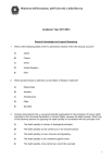 Ministero dell’Istruzione, dell’Univerità e della Ricerca Academic Year 2011/2012 General Knowledge and Logical Reasoning 1 2 3 Which of the following states is NOT a permanent member of the UN Security Council? A Japan B France C China D United Kingdom E USA Which ancient Greek is referred to as the father of Western medicine? A Hippocrates B Aristotle C Aristophanes D Plato E Socrates Amnesty International (AI), a non-governmental organisation for the protection of human rights enshrined in the Universal Declaration of Human Rights, opposes the death penalty. Which one of the following reasons for opposing the death penalty is inconsistent with the principles of AI. A The death penalty is contrary to theological principles. B The death penalty can be carried out on an innocent person. C The death penalty is cruel, inhuman and degrading. D The death penalty is not a deterrent against crime. E The death penalty, once carried out, cannot be reversed. 1 4 Three red balls, three yellow balls and one green ball are placed in a bag and the bag is shaken. I place my hand in the bag and pull out a red ball followed by a green ball. I do not replace either ball. Which one of the following statements is true? 5 A At least one of the next three balls must be yellow. B The next ball will definitely be yellow. C The next two balls cannot both be red. D The next ball could be any one of red, yellow or green. E At least one of the next three balls must be red. My friend has three children, Alice, George and Hannah and I need to buy two presents for them to share. I want to buy two different toys and I want to make sure that Alice, George and Hannah will each like at least one of them. I don't want the toys to have small parts. Toy Jigsaw Building bricks Car Bear Train Small Parts? Yes Yes No No No Liked by Alice? No Yes No Yes No Liked by George? Yes Yes No No Yes Liked by Hannah? Yes No Yes Yes No Price €12 €9 €12 €7 €8 How much am I going to pay in total? A €15 B €16 C €19 D €20 E €24 2 6 The number of visitors to the local swimming pool at different times on Wednesday last week is recorded in this table: Time 8am - 10am 10am - 12 noon 12 noon - 2pm 2pm - 4pm 4pm - 6pm 6pm - 8pm Number of visitors 23 41 35 60 40 15 Which chart shows the data from the table? A B C D E 3 7 8 9 The polis is the most important institutional expression of the classical Greek way of life. What type of state is it? A A city state B A federal state C A modern state D A monarchical state E A tyrannical state Which set of statements about Dante Alighieri is correct? A he was from Florence, wrote poetry, died before 1400 B he was from Milan, was born in the thirteenth century, died before 1400 C he was from Milan, was the son of Giulia Beccaria, wrote poetry D he was from Tuscany, wrote poetry, was the son of Giulia Beccaria E he was of noble family, was born in the fourteenth century, wrote tragedies Which of the following is NOT true of the Enlightenment? A It was a cultural trend that spread across Europe, which emphasised the sovereignty of the people, as a carrier of values. B It was a cultural trend that highlighted all the social and economic inequalities, and paved the way for the French Revolution. C It was a cultural trend that spread across Europe, mainly in France, in the early 1700s. D It was a cultural trend, according to which the only real art was rational, understandable by all, and identified itself with Greek and Roman art. E It was a cultural trend that was based on the exaltation of reason that, eliminating any irrational element of knowledge, by itself, revealed the truth without the help of the transcendental realm. In France this lead to materialism and atheism. 4 10 Two security guards, Dave and Geoff, are patrolling an airbase. Dave passes the front gate every 8 minutes. Geoff passes the front gate every 15 minutes. They have just set off on their individual routes at the start of their shift. How long will it be before they meet up at the front gate again? A 2h 00mins B 1h 30mins C 1h 00mins D 2h 30mins E 3h 00mins 11 Employees at a printing company are paid a basic rate of €11 per hour during the day Monday to Friday. During weekday evenings and on Saturdays they are paid at one and a half times the basic rate and on Sundays they are paid at double the basic rate. The table below shows the hours worked by employees last week: Mon-Fri daytime 32 27 36 30 35 Alice Ben Chetan Daniel Ellen Mon-Fri evenings and Saturdays 8 8 8 8 8 Sundays 6 8 2 6 4 Which employee earned most last week? A Alice B Ben C Chetan D Daniel E Ellen IMAT 2011 © UCLES 2011 5 12 A teacher in a school for children from 11 to 16 years old sets a code number to unlock his classroom door. He has a method for remembering his code. He uses: • • • the 2 digits of his birth month reversed (for example, February would be 02 reversed to 20); then the age of the children in his class at the start of the year with the digits reversed; and finally, the date of his birthday in the month, also reversed. Which one of the following could not be the code to unlock his door? A 602124 B 903121 C 701131 D 215150 E 115191 13 It has long been thought that birds are much less intelligent than humans and apes. But now it seems that some species of birds have the same kind of thinking skills as apes. Crows can create and use tools and are socially sophisticated when finding and protecting food. So how can a bird with a walnut-size brain be capable of such achievements? The answer is that both crows and apes have much bigger brains than you would expect from the size of their bodies. The same pattern is found in humans, parrots and chimps - all intelligent animals. Which one of the following can be drawn as a conclusion from the above passage? A Relative brain size is a better indicator of intelligence than absolute brain size. B Crows are more intelligent than other species of birds. C Animals that cannot create tools are 
