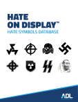 HATE ™ ON DISPLAY HATE SYMBOLS DATABASE 1 HATE ON DISPLAY This database provides an overview of many of the symbols most frequently used by a variety of white supremacist groups and movements, as well as some other types of hate groups. You can find the full listings at adl.org/hate-symbols INTRODUCTION TO THE HATE ON DISPLAY HATE SYMBOLS DATABASE ADL is a leading anti-hate organization that was founded in 1913 in response to an escalating climate of anti-Semitism and bigotry. Today, ADL is the first call when acts of anti-Semitism occur and continues to fight all forms of hate. A global leader in exposing extremism, delivering anti-bias education and fighting hate online, ADL’s ultimate goal is a world in which no group or individual suffers from bias, discrimination or hate. ADL’s Center on Extremism debuted its Hate on Display hate symbols database in 2000, establishing the database as the first and foremost resource on the internet for symbols, codes, and memes used by white supremacists and other types of haters. Over the past two decades, Hate on Display has regularly been updated with new symbols and images as they have come into common use by extremists, as well as new functions to make it more useful and convenient for users. Although the database contains many examples of online usage and shared graphics, another feature that makes it unique is its emphasis on real world examples of hate symbols—showing them as extremists actually use them: on signs and clothing, graffiti and jewelry, and even on their own bodies as tattoos and brands. Readers of this document and users of the Hate on Display database should be aware that this database, by its nature, contains racist and anti-Semitic imagery and language that some may find offensive. IMPORTANT NOTE ABOUT THIS DOCUMENT No one who encounters one of the symbols listed in this database should rush to judgment. All symbols depicted here must be evaluated carefully in the context in which they appear. Few symbols represent just one idea or are used exclusively by one group. For example, the Confederate Flag is a symbol that is frequently used by white supremacists, but which also has been used by people and groups that are not necessarily racist. Similarly, other symbols in this database may be used in certain contexts by people who are not extreme or racist. The descriptions here point out significant non-hateful meanings and contexts but may not be able to relay every possible meaning of a particular symbol. ARE WE MISSING SOMETHING? Submit a Hate Symbol to ADL at hate-symbols@adl.org Hate on Display is a trademark of ADL. www.adl.org © 2019 ADL 2 HATE ON DISPLAY 1-11 1-11 is a numeric symbol used by the Aryan Knights, an Idaho-based prison gang, to identify themselves. Substituting letters for numbers, 1 and 11 mean A and K, i.e., Aryan Knights. READ FULL DESCRIPTION >> 100% 100% is shorthand for “100% white” among white supremacists. It is also common to create alphanumeric variations to proclaim solidarity with a particular white supremacist group or gang, such as “112%” for “100% Aryan Brotherhood.” READ FULL DESCRIPTION >> 109/110 The figure 109 is white supremacist numeric shorthand for the number of countries anti-Semites claim Jews have been expelled from. In calling for the expulsion of Jews from the U.S., they often refer to the U.S. as the 110th. READ FULL DESCRIPTION >> 12 The number 12 is a numeric symbol for Aryan Brotherhood groups (as are the numbers 1 and 2 separately), especially the Aryan Brotherhood of Texas. Substituting letters for numbers, 12 equals AB, i.e., Aryan Brotherhood. READ FULL DESCRIPTION >> 13 The number 13 is a numeric symbol for the Aryan Circle, the large Texas-based racist prison gang. Substituting letters for numbers, 1 and 3 equals A and C, i.e., AC or Aryan Circle. READ FULL DESCRIPTION >> 3 HATE ON DISPLAY 13/52 AND 13/90 13/52 and 13/90 are racist numeric codes used by white supremacists to portray African-Americans as savage and criminal. White supremacists claim that Blacks make up only 13% of the U.S. population but commit 52% of all murders and 90% of all violent interracial crime. READ FULL DESCRIPTION >> 14 14 is numerical shorthand for the white supremacist slogan known as the “14 Words”: “We must secure the existence of our people and a future for white children.” READ FULL DESCRIPTION >> 14 Words Also: FOURTEEN WORDS 14 Words is a reference to the popular white supremacist slogan: “We must secure the existence of our people and a future for white children.” READ FULL DESCRIPTION >> 14/23 The number combination 14/23 is a numeric symbol associated with the Southern Brotherhood, the largest white supremacist prison gang in Alabama. The 14 is a reference to the white supremacist “14 Words” slogan (“We must secure the existence of our people and a future for white children”), while the 23 refers to the “23 precepts,” a list of rules that Southern Brotherhood members must follow. READ FULL DESCRIPTION >> 14/88 Also: 8814 1488 is the combination of two common white supremacist numeric symbols: 1) 14 (shorthand for the “14 Words” slogan: “We must secure the existence of our people and a future for white children”) and 2) 88 (standing for “Heil Hitler”). READ FULL DESCRIPTION >> 4 HATE ON DISPLAY 18 Also: COMBAT 18, C18 18 is a white supremacist alphanumeric code for Adolf Hitler (1=A and 8=H). It is most commonly associated with the British white supremacist group Combat 18 or C18. READ FULL DESCRIPTION >> 21-2-12 Members of the Unforgiven, a Florida-based racist prison gang, use the numeric symbol 21-2-12 as a sort of slogan. Substituting letters for numbers, 21 stands for U (“Unity”), 2 stands for B (“Brotherhood”) and 12 stands for L (“Loyalty”). READ FULL DESCRIPTION >> 211 CREW Also: ARYAN ALLIANCE, BROTHERHOOD OF ARYAN ALLIANCE The 211 Crew is a large racist prison gang based in Colorado. Its main tattoo (or “s