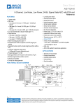 Data Sheet AD7124-8 8-Channel, Low Noise, Low Power, 24-Bit, Sigma-Delta ADC with PGA and Reference ► Low-side power switch FEATURES ► General-purpose outputs ► 3 power modes ► Multiple filter options ► RMS noise ► Internal temperature sensor ► Low power: 24 nV rms at 1.17 SPS, gain = 128 (255 µA ► Self and system calibration typical) ► Mid power: 20 nV rms at 2.34 SPS, gain = 128 (355 µA typical) ► Full power: 23 nV rms at 9.4 SPS, gain = 128 (930 µA typical) ► Up to 22 noise free bits in all power modes (gain = 1) ► Output data rate ► Full power: 9.38 SPS to 19,200 SPS ► Mid power: 2.34 SPS to 4800 SPS ► Low power: 1.17 SPS to 2400 SPS ► Rail-to-rail analog inputs for gains > 1 ► Simultaneous 50 Hz/60 Hz rejection at 25 SPS (single cycle settling) ► Diagnostic functions (which aid safe integrity level (SIL) certification) ► Crosspoint multiplexed analog inputs ► 8 differential/15 pseudo differential inputs ► Programmable gain (1 to 128) ► Band gap reference with 10 ppm/°C drift maximum (70 µA) ► Matched programmable excitation currents ► Internal clock oscillator ► On-chip bias voltage generator ► Sensor burnout detection ► Automatic channel sequencer ► Per channel configuration ► Power supply: 2.7 V to 3.6 V and ±1.8 V ► Independent interface power supply ► Power-down current: 5 µA maximum ► Temperature range: −40°C to +125°C ► 32-lead LFCSP ► 3-wire or 4-wire serial interface ► SPI, QSPI™, MICROWIRE™, and DSP compatible ► Schmitt trigger on SCLK ► ESD: 4 kV ► AEC-Q100 qualified for automotive applications APPLICATIONS ► Temperature measurement ► Pressure measurement ► Industrial process control ► Instrumentation ► Smart transmitters FUNCTIONAL BLOCK DIAGRAM AVDD REGCAPA 1.9V LDO AIN0/IOUT/VBIAS AIN1/IOUT/VBIAS AIN2/IOUT/VBIAS/P1 AIN3/IOUT/VBIAS/P2 AIN4/IOUT/VBIAS/P3 AIN5/IOUT/VBIAS/P4 AIN6/IOUT/VBIAS AIN7/IOUT/VBIAS AIN8/IOUT/VBIAS AIN9/IOUT/VBIAS AIN10/IOUT/VBIAS AIN11/IOUT/VBIAS AIN12/IOUT/VBIAS AIN13/IOUT/VBIAS AIN14/IOUT/VBIAS/REFIN2(+) AIN15/IOUT/VBIAS/REFIN2(–) BANDGAP REF IOVDD REGCAPD REFIN1(+) REFIN1(–) AVDD AVSS CROSSPOINT MUX REFIN2(+) REFIN2(–) AV SS AVDD 1.8V LDO REFERENCE BUFFERS BUF BURNOUT PGA1 DETECT 24-BIT Σ-Δ ADC PGA2 BUF VARIABLE DIGITAL FILTER SERIAL INTERFACE AND CONTROL LOGIC X-MUX GPOs TEMPERATURE SENSOR POWER SWITCH DOUT/RDY DIN SCLK CS ANALOG BUFFERS AVSS DIAGNOSTICS PSW REFOUT VBIAS CHANNEL SEQUENCER SYNC DIAGNOSTICS AVDD COMMUNICATIONS POWER SUPPLY SIGNAL CHAIN DIGITAL EXCITATION CURRENTS INTERNAL CLOCK CLK AD7124-8 AVSS DGND 001 AVSS Figure 1. Rev. F DOCUMENT FEEDBACK TECHNICAL SUPPORT Information furnished by Analog Devices is believed to be accurate and reliable "as is". However, no responsibility is assumed by Analog Devices for its use, nor for any infringements of patents or other rights of third parties that may result from its use. Specifications subject to change without notice. No license is granted by implication or otherwise under any patent or patent rights of Analog Devices. Trademarks and registered trademarks are the property of their respective owners. Data Sheet AD7124-8 TABLE OF CONTENTS Features................................................................ 1 Applications........................................................... 1 Functional Block Diagram......................................1 General Description...............................................4 Specifications........................................................ 5 Timing Characteristics...................................... 11 Absolute Maximum Ratings ................................14 Thermal Resistance......................................... 14 ESD Caution.....................................................14 Pin Configuration and Function Descriptions ..... 15 Terminology......................................................... 18 Typical Performance Characteristics................... 19 RMS Noise and Resolution................................. 28 Full Power Mode.............................................. 28 Mid Power Mode.............................................. 31 Low Power Mode..............................................34 Getting Started.................................................... 37 Overview.......................................................... 37 Power Supplies................................................ 38 Digital Communication..................................... 38 Configuration Overview.................................... 40 ADC Circuit Information.......................................46 Analog Input Channel.......................................46 Programmable Gain Array (PGA).....................47 Reference.........................................................47 Bipolar/Unipolar Configuration......................... 47 Data Output Coding..........................................48 Excitation Currents........................................... 48 Bridge Power-Down Switch..............................48 Logic Outputs................................................... 48 Bias Voltage Generator.................................... 49 Clock................................................................ 49 Power Modes................................................... 49 Standby and Power-Down Modes....................49 Digital Interface................................................ 50 DATA_STATUS.................................................52 Serial Interface Reset (DOUT_RDY_DEL and CS_EN Bits)............................................ 52 Reset................................................................ 52 Calibration........................................................ 52 Span and Offset Limits..................................... 53 System Synchronization...................................54 Digital Filter..........................................................55 Sinc4 Filter......................