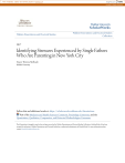View metadata, citation and similar papers at core.ac.uk brought to you by CORE provided by Walden University Walden University ScholarWorks Walden Dissertations and Doctoral Studies Walden Dissertations and Doctoral Studies Collection 2017 Identifying Stressors Experienced by Single Fathers Who Are Parenting in New York City Stacey Theresa Melhado Walden University Follow this and additional works at: https://scholarworks.waldenu.edu/dissertations Part of the Medicine and Health Sciences Commons, Psychology Commons, and the Quantitative, Qualitative, Comparative, and Historical Methodologies Commons This Dissertation is brought to you for free and open access by the Walden Dissertations and Doctoral Studies Collection at ScholarWorks. It has been accepted for inclusion in Walden Dissertations and Doctoral Studies by an authorized administrator of ScholarWorks. For more information, please contact ScholarWorks@waldenu.edu. Walden University College of Social and Behavioral Sciences This is to certify that the doctoral dissertation by Stacey Melhado has been found to be complete and satisfactory in all respects, and that any and all revisions required by the review committee have been made. Review Committee Dr. Patricia Heisser-Metoyer, Committee Chairperson, Psychology Faculty Dr. Sandra Caramela-Miller, Committee Member, Psychology Faculty Dr. Tony Wu, University Reviewer, Psychology Faculty Chief Academic Officer Eric Riedel, Ph.D. Walden University 2017 Abstract Identifying Stressors Experienced by Single Fathers Who Are Parenting in New York City by Stacey Melhado M.A., Walden University, 2008 B.S., John Jay College, 2001 Dissertation Submitted in Partial Fulfillment of the Requirements for the Degree of Doctor of Philosophy Health Psychology Walden University January 2017 Abstract Fathers face difficulties when taking on the single parent role, including having to prove their ability to care for their children alone. Existing research does not address issues concerning single fathers and the stressors they experience in raising their children. This study addresses these issues and helps researchers understand single fathers by using a qualitative approach to understand their perception of parenting. Fourteen participants from New York City participated in semi-structured interviews to elicit information about this phenomenon. This study focused on experiences the men have while being a single parent, the impact of living in New York City on single fathers parenting, and helpful services for single fathers. After completion of the interviews, each discussion was input into the memos section of Nvivo for use in the analysis phase. Interviews were separated into descriptive nodes addressing each area of interest. Data was then dissected into subnodes, which assisted in determining the themes, represented by participant responses. The last analysis step included the establishment of important ideas for each of the three research questions. The findings show fathers experience stressors when being a single parent as they identified childcare, the absence of the child's mother, finances, housing, medical insurance, and communication issues as stress factors. Surprisingly, a majority of the participants felt living in New York positively impacted their parenting. Although a majority of the participants identified stress as part of their parenting experience, all the fathers identified services as a practical tool to help them improve their parenting. Several implications for positive social change after completing this research study include helping providers understand the needs of this population, and identifying the need for support to help improve parenting for this population. Identifying Stressors Experienced by Single Fathers Who Are Parenting in New York City by Stacey Melhado M.A., Walden University, 2008 B.S., John Jay College, 2001 Dissertation Submitted in Partial Fulfillment of the Requirements for the Degree of Doctor of Philosophy Health Psychology Walden University January 2017 Dedication I dedicate this work to my husband, Miguel, and my sons, Jason and MJ. Thank you for your support in all of my educational and work endeavors over the years. Your love and support has been a source of strength and encouragement. I also want to dedicate this study to the fathers who took time to let me get to know them, it was truly my pleasure speaking with each of you. Acknowledgments I would first like to give praise and thanks to the Lord for giving me the strength, drive, and energy to complete my thesis. I would like to thank Dr. Heisser-Metoyer, who started the process with me, and has continued to stand by my side through the entire process. To Dr. Caramela-Miller, I thank you for accepting the role of committee member. Although you were both tough at times I do not think I would have completed my dissertation without your persistence, dedication, and continued support. The time and energy you both put into guiding me during this process is greatly appreciated. I would like to give some personal praises to my unit who allowed me to take breaks and work on parts of my dissertation without complaint. A very special thank you to my husband for standing by my side throughout this process, for stepping up and taking on a huge parenting role, and for being the person you are. A million thanks to my parents for being my backbone, for standing by me, and supporting my decisions with their own sacrifices to assist me. To my son Jason for understanding that sacrifices come with success and for being my motivation to set an example for you to follow. Everything I have completed thus far has been for you. To my baby Miguel you have been a blessing in disguise, a motivation in itself. Thank you to everyone who has been a part of this process, it is greatly appreciated. Table of Contents Chapter 1 ....................................................................................................