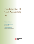 Fundamentals of Cost Accounting 3e William N. Lanen University of Michigan Shannon W. Anderson Rice University Michael W. Maher University of California at Davis FUNDAMENTALS OF COST ACCOUNTING Published by McGraw-Hill/Irwin, a business unit of The McGraw-Hill Companies, Inc., 1221 Avenue of the Americas, New York, NY, 10020. Copyright © 2011, 2008, 2006 by The McGraw-Hill Companies, Inc. All rights reserved. No part of this publication may be reproduced or distributed in any form or by any means, or stored in a database or retrieval system, without the prior written consent of The McGraw-Hill Companies, Inc., including, but not limited to, in any network or other electronic storage or transmission, or broadcast for distance learning. Some ancillaries, including electronic and print components, may not be available to customers outside the United States. This book is printed on acid-free paper. 1 2 3 4 5 6 7 8 9 0 WVR/WVR 1 0 9 8 7 6 5 4 3 2 1 0 ISBN MHID 978-0-07-352711-6 0-07-352711-4 Vice president and editor-in-chief: Brent Gordon Editorial director: Stewart Mattson Publisher: Tim Vertovec Director of development: Ann Torbert Development editor: Emily A. Hatteberg Vice president and director of marketing: Robin J. Zwettler Marketing director: Sankha Basu Marketing manager: Kathleen Klehr Vice president of editing, design and production: Sesha Bolisetty Senior project manager: Susanne Riedell Senior production supervisor: Debra R. Sylvester Interior designer: JoAnne Schopler Senior photo research coordinator: Jeremy Cheshareck Senior media project manager: Allison Souter Cover design: JoAnne Schopler Typeface: 10.5/12 Times New Roman Compositor: MPS Limited, A Macmillan Company Printer: World Color Press Inc. Library of Congress Cataloging-in-Publication Data Lanen, William N. Fundamentals of cost accounting / William N. Lanen, Shannon W. Anderson, Michael W. Maher. — 3rd ed. p. cm. Includes index. ISBN-13: 978-0-07-352711-6 (alk. paper) ISBN-10: 0-07-352711-4 (alk. paper) 1. Cost accounting. I. Anderson, Shannon W. II. Maher, Michael, 1946- III. Title. HF5686.C8M224 2011 657'.42—dc22 2009044025 www.mhhe.com Dedication To my wife, Donna, and my children, Cathy and Tom, for encouragement, support, patience, and general good cheer throughout the years. Bill I dedicate this book to my husband Randy, my children Evan and David, and my parents, Max and Nina Weems. Your support and example motivate me to improve. Your love and God’s grace assure me that it isn’t necessary. Shannon I dedicate this book to my children, Krista and Andrea, and to my extended family, friends, and colleagues, who have provided their support and wisdom over the years. Michael About the Authors William N. Lanen William Lanen is Professor of Accounting at the University of Michigan Business School. He holds degrees in economics from the University of California, Berkeley, and Purdue University and earned a PhD in accounting from the Wharton School of the University of Pennsylvania. Bill teaches management accounting in both the BBA and MBA programs at the University of Michigan. He also teaches management accounting in Global MBA Programs and Executive Education Programs in Asia, Europe, and Latin America. Before coming to the University of Michigan, Bill was on the faculty at the Wharton School of the University of Pennsylvania, where he taught various financial and managerial accounting courses at the undergraduate, MBA, and Executive MBA levels. He has received teaching awards at both the University of Michigan and the Wharton School. Bill is an Associate Editor of Management Science and serves on the Editorial Boards of The Accounting Review and the Journal of Management Accounting Research. He has published in Journal of Accounting Research; Journal of Accounting and Economics; Accounting, Organizations and Society; and The Accounting Review. Bill is past-president of the Management Accounting Section of the American Accounting Association. iv Shannon W. Anderson Michael W. Maher Shannon Anderson is an Associate Professor of Management at the Jones Graduate School of Business at Rice University and a Principle Fellow at the University of Melbourne. She previously taught at the University of Michigan and worked as an engineer at General Motors Corporation. She received a doctorate and master’s degree in business economics at Harvard University and a BSE in civil engineering with a concentration in operations research at Princeton University. Michael Maher is a Professor of Management at the University of California-Davis. He previously taught at the University of Michigan, the University of Chicago, and the University of Washington. He also worked on the audit staff at Arthur Andersen & Company and was a self-employed financial consultant for small businesses. He received his BBA from Gonzaga University, which named him Distinguished Alumnus in 1989, and his MBA and PhD from the University of Washington, and he earned the CPA from the state of Washington. Shannon’s research, which focuses on the design and implementation of performance measurement and cost control systems, spans the fields of management accounting and operations research. Her research on activity-based costing won the 2006 American Accounting Association’s Notable Contribution Award and the 2003 AAA Management Accounting Section’s Notable Contribution to the Literature Award. She and Bill won the 2006 AAA Management Accounting Section’s Notable Contribution to the Literature Award for their study of the performance impact of electronic data interchange (EDI) systems. Shannon currently serves as an Editor of the Accounting Review and on the Editorial Boards of Accounting, Organizations and Society; Production and Operations Management; and Management Accounting Research. She has also served on numerous committees for the American Accounting Association and the Management Accounting Section of the American Accounting Association