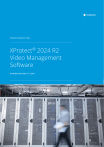1 Product Comparison Chart XProtect® Video Management Software 2024 R2 Product Comparison Chart XProtect® 2024 R2 Video Management Software Available November 7th, 2024 2 Product Comparison Chart XProtect® Video Management Software 2024 R2 Contents Introduction 3 High-level XProtect VMS product comparison 4 Detailed XProtect VMS product comparison 6 High-level XProtect client comparison 12 Detailed XProtect client comparison 13 3 Product Comparison Chart XProtect® Video Management Software 2024 R2 Introduction As the world’s leading provider of open platform IP video management software (VMS), Milestone Systems offers a wide range of VMS products optimized for different types of deployment and usage. This document provides an indepth comparable outline of Milestone’s XProtect® VMS products and the associated clients. This document is intended as a technical sales tool with two primary purposes: • To provide an overview of the features that each XProtect product provides • To support the selection of the optimal product by offering a visible comparison between the various products in the XProtect product range This document contains several separate comparison charts, for XProtect VMS platform products and for XProtect clients, where each product category has an overview comparison chart, followed by a more detailed and comprehensive chart. The following XProtect VMS platform products are covered: • XProtect® Corporate • XProtect® Expert • XProtect® Professional+ • XProtect® Express+ • XProtect® Essential+ The following XProtect clients are covered: • XProtect® Smart Client • XProtect® Web Client • XProtect® Mobile The document does not cover XProtect Extensions or Milestone Utilities. The information in this document only provides basic information. Refer to the individual product specification sheets for a complete listing of all features for a given XProtect product. Milestone reserves the right to change the product specifications without prior notice. 4 Product Comparison Chart XProtect® Video Management Software 2024 R2 High-level XProtect VMS product comparison Corporate XProtect Expert XProtect Professional+ XProtect Express+ XProtect Essential+ XProtect VMS Products XProtect The table below gives an overview of Milestone’s XProtect VMS products and their key capabilities. Key Features Type of deployment Licensing Maximum number IP devices 1 per recording server Number of recording servers per system Maximum numbers of users Customer Dashboard and Connected Services2 Alarm Manager Video out via Milestone Open Network Bridge Dual authorization (Smart Client users) Supports XProtect Smart Client, XProtect Web Client and XProtect Mobile Secure HTTPS camera connectivity (on supported devices) Adding devices on HTTPS3 Single device firmware 4 upgrade Bulk device firmware4 upgrade Map function Third-party application integration and support for video analytics5 Built-in Video Motion Detection (VMD) with Auto adjustable VMD sensitivity H.264, MJPEG, MPEG-4, MPEG-4 ASP & MxPEG H.2656 Adaptive streaming/playback Direct streaming (mobile server) Microsoft Active Directory support External identity provider support (OIDC) SSO Metadata support Centralized management XProtect Remote Manager, part of Care Plus Flexible event rule engine Hardware accelerated video decoding for Video Motion Detection (Quick sync) Hardware accelerated video decoding for Video Motion Detection (NVIDIA) Hardware accelerated video decoding in the Mobile Server Support for live video play without recording storage Edge Storage and Scalable Video Quality Recording™ Smart Map functions Media database encryption and digital signing Recording Server communication encryption Management Server communication encryption Mobile Server communication encryption XProtect Management Server Failover Hot- & cold-failover recording server Evidence Lock Perpetual 48 Centrally managed, multiserver Perpetual Unrestricted7 Centrally managed, multiserver Perpetual Unrestricted7 Centrally managed, distributed sites Perpetual Unrestricted7 1 Unrestricted7 - 1 Unrestricted7 Supported ✓ ✓ ✓ Unrestricted7 Unrestricted7 Supported ✓ ✓ ✓ Unrestricted7 Unrestricted7 Supported ✓ ✓ ✓ Unrestricted7 Unrestricted7 Supported ✓ ✓ ✓ ✓ ✓ ✓ ✓ ✓ ✓ ✓ ✓ ✓ ✓ ✓ ✓ ✓ ✓ ✓ ✓ ✓ ✓ ✓ ✓ ✓ ✓ ✓ ✓ ✓ ✓ ✓ ✓ ✓ ✓ ✓ ✓ ✓ ✓ ✓ ✓ ✓ ✓ ✓ ✓ ✓ ✓ ✓ ✓ ✓ ✓ ✓ ✓ ✓ ✓ ✓ ✓ ✓ ✓ ✓ ✓ ✓ ✓ ✓ ✓ ✓ ✓ ✓ ✓ ✓ ✓ ✓ ✓ ✓ ✓ ✓ ✓ ✓ ✓ ✓ ✓ ✓ ✓ ✓ ✓ ✓ ✓ ✓ ✓ ✓ ✓ ✓ ✓ ✓ - - - ✓ ✓ ✓ ✓ ✓ ✓ ✓ - ✓ ✓ ✓ ✓ ✓ ✓ - ✓ ✓ ✓ ✓ ✓ ✓ ✓ - Single server Single server Free 8 ✓ ✓ ✓ ✓ ✓ ✓ ✓ ✓ ✓ ✓ ✓ ✓ ✓ ✓ ✓ ✓ Requires license Requires license ✓ ✓ ✓ XProtect Incident Manager - Supports XProtect Smart Wall - Requires license Requires license Requires license - - Requires license Milestone Federated Architecture™ - - - Remote site Milestone Interconnect™ - Remote site Remote site Remote site ✓ ✓ Central/ Remote site Central/ Remote site 5 Product Comparison Chart XProtect® Video Management Software 2024 R2 IP device can be an actual camera, video encoders, NVR/DVR, video services or other types of video/audio devices connected to the VMS’ recording server. IP cameras or encoders should be included in the Milestone Supported Device List to count as one license per IP device otherwise it will require one license per enabled video channel. Refer Improved license model FAQ for more details and visit https://www.milestonesys.com/community/business-partner-tools/supported-devices/ for licensing requirement of an IP device. Please note that Specific IP device variants may not appear on the Supported Device List but will, however, be treated by Milestone as an IP device included in this list provided their equivalent base mo