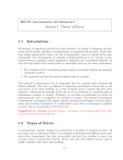EEG 317: Instrumentation and Measurment I Lecture 1: Theory of Errors 1.1 Introduction All branches of engineering perform two main functions: the design of equipment and processes, and the proper operation and maintenance of equipment and processes. These functions require measurement. Hence, the role of measurement cannot be ignored in the engineering field. The measurement of a quantity is fundamentally an act or outcome of comparison between a quantity (whose magnitude is unknown) and a predefined standard. In order that the results of the measurement are meaningful, there are two basic requirements: 1. The standard used for comparison purposes must be accurately defined and should be commonly accepted. 2. The apparatus used and the method adopted must be provable The methods of measurement can be categorized into two, namely, direct methods and indirect methods. The latter is adopted in engineering measurement systems due to the inaccuracies in the direct methods as a result of human factors coupled with their lower sensitivity. Measurements generally involve the use of an instrument as a physical means of determining a quantity or variable. Therefore, we can define an instrument as a device for determining the value or magnitude of a quantity or variable. The historical development of instruments encompasses three phases, namely, mechanical instruments, electrical instruments and electronic instruments. It is important to note that no instrument is perfectly accurate; thus, no measurement is free from error. Assignment 1a - Highlight the main features, advantages, and disadvantages of the aforementioned categories of instruments. 1.2 Types of Errors No measurement, whether conducted in a laboratory or elsewhere, is perfectly accurate. All have some error or inaccuracy. Hence, it is pertinent to determine how different errors have entered into measurement, how they are specified, and how they combine to create even a greater error in measurement systems. Errors may come from different sources and are usually classified under three main headings: 1-1 1-2 Lecture 1: Theory of Errors Gross errors: This class of errors is attributed to human errors, such as misreading of instruments, incorrect adjustment and improper application of instruments, and computational mistakes. Systematic errors: These errors can be further categorized into three, namely instrumental errors, environmental errors, and observational errors. – Instrumental errors: these types of errors occur due to the shortcomings in the instrument, misuse of the instruments, and loading effects of instruments. – Environmental errors: These errors are due to conditions external to the measuring device, including conditions in the area surrounding the instrument. This may be effects of temperature, humidity, dust, vibrations or of external magnetic or electrostatic fields. – Observational errors: There are many sources of observation error. A typical example is the parallax error, which is incurred when reading a measurement from an angle rather than in line with the vision of the observer. Random errors: Sometimes called residual errors are those due to the cause that cannot be directly established because of the random variations in the parameter or the system of measurement. Assignment 1b - Give an elaborate discussion on the aforementioned types of errors and how they can be avoided. In most instruments, the accuracy is guaranteed to be within a certain percentage of fullscale reading. Components are guaranteed to be within a certain percentage of the rated value. Thus, the manufacturer has to specify the deviations from the true or nominal value of a particular quantity. These limits lead us to the theory of absolute and relative treatment of errors. 1.3 Absolute Errors and Relative Errors Given the nominal value of a resistor as 500 Ω with a tolerance of ±5% as depicted in Figure 1.1(a), this means the resistor will have a value between the limits 475 Ω and 525 Ω. Hence, we can say the resistor has a possible error of ±25 Ω. The ±25 Ω is referred to as the absolute error. When the error is expressed as a percentage or as a fraction of the total 1 resistance, it becomes a relative error. Thus the ±25 Ω is ±5%, relative to 500 Ω, or ± 20 of 500 Ω. Note that percentages are usually employed to express errors in resistance and other electrical quantities. The terms accuracy and tolerance are also used. A resistor with a possible error of ±5% is said to be accurate to ±5%, or have a tolerance of ±5%. Mathematically, ρm = ρt ± εa , (1.1) Lecture 1: Theory of Errors 1-3 Figure 1.1: Resistor tolerance is represented by a gold color band. where ρm is the actual or measured value, ρt is the nominal value, and εa is the absolute error. The relative error in fractional and percentage form can be expressed as given in (1.2) and (1.3), respectively. εa (1.2) εr = , ρt Percentage relative error %εr = εr × 100. (1.3) Also, from (1.1), limiting values in terms of relative errors can be expressed as ρm = ρt ± εa = ρt ± εr ρt = ρt (1 ± εr ). (1.4) In addition, when the deviation limits from the nominal value are given, we can take the maximum deviation from the ρm to be the erroneous quantity. Thus we have εa = ρm − ρt . (1.5) Illustration: A component manufacturer constructs a certain resistance to be anywhere between 1.14 kΩ and 1.26 kΩ and classifies them to be 1.2 kΩ resistors. What tolerance should be stated? Solution: From (1.5) εa = 1.26 kΩ − 1.2 kΩ = 0.06 kΩ. (1.6) Thus, εa = ±0.06 kΩ. From (1.2) ±0.06 kΩ = 0.05 1.2 kΩ % εr = 0.05 × 100 = 5%. εr = Take note of the extension of the question in Example 2-1, page 16 of reference [1]. (1.7) (1.8) 1-4 Lecture 1: Theory of Errors 1.4 Accuracy, Precision, Resolution, and Significant Figures 1.4.1 Accuracy and Precision Accuracy refers to the degree of closeness or conformity to the true value of a quantity under measurem