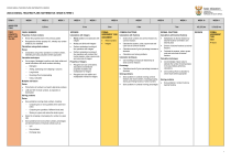 2023/24 ANNUAL TEACHING PLANS: MATHEMATICS: GRADE 8 2023/24 ANNUAL TEACHING PLANS: MATHEMATICS: GRADE 8 (TERM 1) TERM 1 WEEK 1 HOURS PER TOPIC TOPIC, CONCEPTS, SKILLS AND VALUES WEEK 2 WEEK 3 WEEK 4 11,5 hrs INTEGERS Properties of whole numbers • Revise the properties done in the previous grades Recognise the division property of 0, whereby any number divided by 0 is undefined Calculations using whole numbers Calculations using all four operations on whole numbers, estimating and using calculators where appropriate Use a range of strategies to perform and check written and mental calculations with whole numbers including: ‒ Estimation ‒ Adding, subtracting and multiplying in columns ‒ Long division ‒ Rounding off and compensating ‒ Using a calculator 2 hrs Prime factors of numbers to at least 3-digit whole numbers • LCM and HCF of whole numbers, by inspection or factorisation 7 hrs DECIMAL FRACTIONS Calculations with integers Calculations with fractions Calculations with decimal fractions • Revise addition and subtraction with integers ASSIGNMENT • • Divide whole numbers and common fractions by common fractions • Whole numbers • Multiply and divide with integers • Integers • • Perform calculations involving all four operations with integers Calculate the squares, cubes, square roots and cube roots of common fractions • • Calculate amounts if given percentage increase or decrease Division of decimal fractions by decimal fractions • • Calculations and solving problems Calculate the squares, cubes, square roots and cube roots of decimal fractions • Perform calculations involving all four operations with numbers that involve squares, cubes, square roots and cube roots of integers Properties of integers • • Calculation techniques • Use knowledge of reciprocal relationships to divide common fractions Recognise and use commutative, associative and distributive properties of addition and multiplication for integers Percentage Recognise and use additive and multiplicative inverses for integers Solving problems • • • • WEEK 9 9 hrs Multiples and factors Revise WEEK 8 COMMON FRACTIONS Calculation techniques • WEEK 7 FORMAL ASSESSMENT TASK Revise: • WEEK 6 9 hrs WHOLE NUMBERS • WEEK 5 Calculate amounts if given percentage increase or decrease Solve problems in contexts involving common fractions and mixed numbers, including grouping, sharing and finding fractions of whole numbers Solve problems in contexts involving percentages Multiplication of decimal fractions by decimal fractions not limited to one decimal place WEEK 10 WEEK 11 4,5 (2,5) hrs 2,5 (4,5) hrs. REVISION FORMAL ASSESSMENT TASK TEST All topics Calculation techniques • Use knowledge of place value to estimate the number of decimal places in the result before performing calculations • Use rounding off and a calculator to check results where appropriate Solving problems • Solve problems in context involving decimal fractions Solving problems Revise • Solve problems involving whole numbers, including: ‒ Comparing two or more quantities of the same kind (ratio) ‒ Comparing two quantities of different kinds (rate) ‒ Sharing in a given ratio where the whole is given • Extend to increasing or decreasing of a number in a given ratio • Solve problems that involve whole numbers, percentages and decimal fractions in financial contexts such as: ‒ VAT ‒ Hire purchase ‒ Exchange rates 1 2023/24 ANNUAL TEACHING PLANS: MATHEMATICS: GRADE 8 TERM 1 WEEK 1 HOURS PER TOPIC WEEK 2 WEEK 3 WEEK 4 11,5 hrs PREREQUISITE • SKILL/ PRE• KNOWLEDGE • Multiplication of whole numbers to at least 12 × 12 Order and compare prime numbers to at least 100 Calculations using all four operations on whole numbers, estimating and using calculators where appropriate • Prime factors of numbers to at least 3-digit whole numbers • LCM and HCF of numbers to at least 3-digit whole numbers, by inspection or factorisation • Solve problems involving whole numbers, including: ‒ Comparing two or more quantities of the same kind (ratio) ‒ Comparing two quantities of different kinds (rate) ‒ Sharing in a given ratio where the whole is given WEEK 5 9 hrs WEEK 6 WEEK 7 2 hrs WEEK 8 9 hrs WEEK 9 7 hrs • Count forwards and backwards in integers for any interval • Addition and subtraction to fractions where one denominator is not a multiple of the other • Count forwards and backwards in decimals • Recognise, order and compare integers • • Compare and order decimal fractions • Add and subtract with integers Multiplication of common fractions, including mixed numbers, not limited to fractions where one denominator is a multiple of another • Rounding off decimal fractions • Recognise and use commutative and associative properties of addition and multiplication for integers • Addition and subtraction of decimal • Solve problems in contexts involving addition and subtraction of integers • Converting mixed numbers to common fractions • Use knowledge of multiples and factors to write fractions in the simplest form before or after calculations • Use knowledge of equivalent fractions to add and subtract common fractions in order to perform calculations with them • Calculate the percentage of part of a whole • Calculate percentage increase or decrease of whole numbers WEEK 10 WEEK 11 4,5 (2,5) hrs 2,5 (4,5) hrs. fractions of at least three decimal places • Multiplication of decimal fractions by whole numbers and decimals • Division of decimal fractions by whole numbers • Use knowledge of Place value to estimate the number of decimal places in the result before performing calculations • Use rounding off and a calculator to check results where appropriate 2 2023/24 ANNUAL TEACHING PLANS: MATHEMATICS: GRADE 8 2023/24 ANNUAL TEACHING PLANS: MATHEMATICS: GRADE 8 (TERM 2) TERM 2 WEEK 1 WEEK 2 WEEK 3 WEEK 4 WEEK 5 WEEK 6 WEEK 7 WEEK 8 WEEK 9 WEEK 10 WEEK 11 3 hrs HOURS P