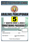 NAME: _______________________________________________________________ GRADE AND SECTION: _____________________ DATE: __________________ ______________________________ Pupil’s Signature ____________________________________ Parent’s Name and Signature CP #: _____________________________ _____________________________________ Teacher’s Name 1 and Signature Republic of the Philippines Department of Education Region VI - Western Visayas Schools Division of Bago City MODULE 1 Kaugnayan ng Lokasyon sa Paghubog ng Kasaysayan MODULE 2 Pinagmulan ng Pagkakabuo ng Pilipinas batay sa Teorya, Mitolohiya, at Relihiyon KABUUANG PANUTO 1. Basahing mabuti ang mga tagubilin. 2. Basahin at unawain ang bawat aytem bago sumagot. 3. Lahat ng mga sagot ay dapat na nakasulat sa iyong “Summative Test Booklet” bilang inyong sagutang papel. 4. Huwag manatili sa isang numero. Ang pagsusuri ay mabuti para sa isang araw lamang. Maging matapat sa pagsagot ng inyong Lagumang Pagsusulit. I. PANUTO Basahin ang mga pangungusap. Bilugan ang titik ng tamang sagot. 1. Anong rehiyon ng Asya kabilang ang bansang Pilipinas? A. Silangang Asya C. Hilagang Asya B. Kanlurang Asya D. Timog Silangang Asya 2. Alin sa mga sumusunod ang tiyak o absolute na lokasyon ng Pilipinas sa mapa? A. 4°23’ at 21°25’ hilagang latitud at 116°00 at 127°00 silangang longhitud B. 2°43’ at 25°31’ hilagang latitud at 161°00 at 172°12 silangang longhitud C. 1°32’ at 15°21’ hilagang latitud at 131°00 at 151°10 silangang longhitud D. 3°23’ at 20°29’ hilagang latitud at 121°14 at 148°25silangang longhitud 3. Bakit tinawag na arkipelago ang bansang Pilipinas? A. ito ay nakaharap sa Karagatang Pasipiko B. ito ay binubuo ng tatlong malalaking pulo. 2 C. ito ay napapalibutan ng mga mayayamang bansa D. ito ay binubuo ng maliliit at malalaking kapuluan na napapalibutan ng tubig o dagat 4. Anong karagatan ang matatagpuan sa silangan ng Pilipinas? A. Karagatang Indian C. Karagatang Atlantiko B. Karagatang Pasipiko D. Karagatang Arktiko 5. Ang mga sumusunod ay mga bansang nakipagkalakalan sa bansa MALIBAN sa isa. Alin dito? A. India C. Indonesia B. Saudi Arabia D. Tsina 6. Ang islang hinahanap ng mga Europeo na naging daan para matuklasan ang Pilipinas. A. Kiribati C. Micronesia B. Moluccas D. Palau 7. Ito ay pagtukoy sa lokasyon batay sa mga anyong tubig na nakapaligid sa isang bansa. A. Bisinal C. Insular B. Kritikal D.Absoluto 8. Bilang isang bansang nasakop ng Espanya, ano ang naging pinakamalaking pamana ang kanilang iniwan sa Pilipinas? A. edukasyon C. ekonomiya B. relihiyon D. sandatahang lakas 9. Ang mga sumusunod ay ang tuwirang epekto ng lokasyon ng ating bansa sa paghubog ng kasaysayan MALIBAN sa isa. Ano ito? A. nagkaroon ng kalakalan sa mga karatig bansa B. napadali ang paglipat o migrasyon ng mga katutbo C. naging kalaban ng Pilipinas ang lahat na mga karatig bansa nito. D. nadiskubre ng mga mananakop ang estratehikong lugar ng Pilipinas 10. Bakit mahalagang pag-aralan ang heograpiya o lokasyon ng isang bansa? A. para maging sikat ang isang bansa B. para malaman kung iilan ang naninirahan sa bansa C. para makilala kung sino-sino ang mga kilalang tao sa bansa 3 D. para maunawaan kung paano nahubog ang iba’t ibang aspeto ng kultura, ekonomiya, pamahalaan at relihiyon ng isang bansa. 11. Ito ang tawag sa malaking masa ng kalupaan may 240 milyong taon na ang nakalipas. A. Asthenosphere C. Kontinente B. Pangaea D. Tectonic 12. Teoryang nagsasabing nagmula ang Pilipinas sa malalaking tipak ng lupain sa daigdig na naghiwa-hiwalay ilang daang milyong taon na ang nakalipas. A. Land Bridges o Tulay na Lupa Theory B. Pacific Theory o Teorya ng Bulkanism C. Continental Drift Theory D. Tectonic Plate 13. Teoryang nagpapaliwanag na dating karugtong ang Pilipinas ng Timog - Silangang Asya. A. Teorya ng Continental Drift C. Teorya ng Tulay na Lupa B. Teorya ng Ebolusyon D. Teorya ng Bulkanismo 14. Ayon sa teoryang ito, nabuo ang mga kalupaan ng Pilipinas mula sa pagputok ng mga bulkan sa ilalim ng karagatan A. Teorya ng Tulay na lupa C. Teorya na Continental drift B. Teorya ng Ebolusyon D. Teorya ng Bulkanismo 15. Siya ang naghain ng teoryang nabuo ang kalupaan ng daigdig mula sa isang Supercontinent. A. Alfred Einstein C. Alfred Wegener B. Bailey Willis D. Charles Darwin 16. Alin sa ibaba ang tumutukoy sa sali-salimuot na kuwento na ang layunin ay magpaliwanag ng sagisag ng mahahalagang balangkas ng buhay? A. mitolohiya C. relihiyon B. sitwasyon D. teorya 17. Ayon sa paniniwalang panrelihiyon, nilikha ang tao sa pamamagitan ng isang maykapangyahiran na tinatawag na __________. A. Apoy C. Diyos B. Hangin D. Tubig 4 18. Sila ay naniniwala na ang Pilipinas ay mula sa libag ng katawan ni Melu, na kanilang Diyos. A. Badjao C. Bagobo B. Igorot D. Manobo 19. Sino ang Amerikanong siyentista ang naghain ng Pacific Theory? A. Alfred D. Wegener C. Bailey Willis B. Henry Otley Bayer D. Robert Fox 20. Mga tipak ng lupa sa ilalim ng katubigang nakakabit sa mga kontinente. A. Continental Shelf C. Fossilized Materials B. Tectonic Slate D. Vulcanic materials Para sa bilang 21 – 25. Isalin ang mga nagkahalong letra upang mabuo ang tamang salita. (Arrange the Jumbled Letters) sa pamamagitan ng “hint/clue” na nasa kabila. Bilugan ang titik ng tamang sagot. 21. YAORET– itinuturing bilang tama o tumpak, na maaaring gamitin bilang mga prinsipyo ng paliwanag at prediksiyon A. AREOTA C. TEORYA B. TOERYA D. THEORYA 22. IMOTOLIHAY- sali-salimuot na kuwento na ang layunin ay maipaliwanag ang sagisag ng mahahalagang balangkas ng buhay A. IMOLOHIYA C. IMOTOLOHIYA B. MITOLOHIYA D. MITO 23. NICTOCET ATEPL – malalaki at makakapal na tipak ng lupa A. TECTONIC PLATE C. PLATONIC PLATE B. COASTAL PLATE D. ARIAL PLATE 24. OBOGAB- mga katutubong naniniwala na si Melu, ang kanilang diyos ang gumawa ng Pilipinas. A. BOGABO C. BAGOBO B. ABOGADO D. GOBOGA 25. SOYID- pinaniniwalaan ng relihiyon na siya ang gumawa ng daigdig kasama ang Pilipinas. A. YIDSO C. D