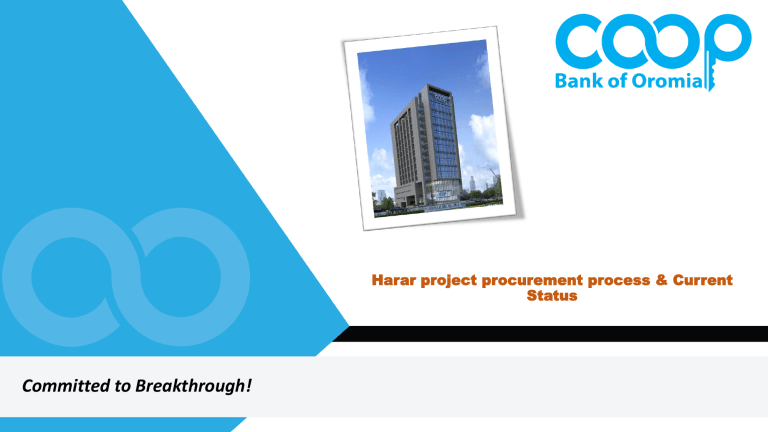Harar project procurement process & Current Status Committed to Breakthrough! Harar project procurement process & Current Status TECHNICAL VALUATION TEAM Name 1. Obbo Anteneh Demire 2. Obbo Shiferaw kumbi 3. Obbo Derara Emana 4. Obbo Million Andarge 5. Obbo Alemisa Gebisa Position • Manager ,Construction Management[ COOP ] • Senior Civil Engineer[ COOP ] • Senior Civil Engineer[ COOP ] • Associate Civil Engineer [ COOP ] • A/Manager, Procurement Team[ COOP ] Harar project procurement process & Current Status Harar project procurement process & Current Status 1.Introduction This document seeks to describe the procurement process that has so far been completed in order to secure an international Consultant to advise the bank on the construction of its Headquarters building. As a result, procurement processes and summary of evaluation report will be presented in this power slide to demonstrate what has been done so far. 2.Pre-Bid Preparatory work The following activates were conducted prior to the bidding document being floated. Expected building size shall be B+G+M+5 The bidding document preparation for Harar project has been conducted in between January 10, 2022 and February 18, 2022. The bidding document has been presented to Procurement committee on February 25,2022 Following the presentation, the Procurement committee also recommended that the final draft to be distributed once certain critical comments on the draft bidding document has been corrected. After Procurement committee direction, the final bidding document has been duplicated in between March 22, 2022 and March 24, 2022 and made ready for distribution. Harar project procurement process & Current Status 3.Discharging Bid Document During this stage, the bidding document was provided to prospective bidders through invitation, which was advertised in a highly circulated local Reporter Newspaper and the bid floated on the air from March 25th to April 18th, 2022. 4.List of Bidder Who Collected the Bidding Document Following the official announcement from March 25th to April 5th, 2022, exactly sixteen (16) bidders, as listed below, were able to collect the bidding document from the cooperative bank of Oromia procurement office:S/No Bidders Name S/No Bidders Name 1 ASRAT KETEMA G.C 1 ANWAR EBRAHIM G.C 2 HAKICON Engineering PLC 2 MEKASH AMBAW B.C 3 TEKROM Construction PLC 3 MCG Construction PLC 4 MEDCON Engineering and Construction PLC 4 ASAMINEW TESHOME Construction PLC 5 GUTEMA FIRISA Construction PLC 5 YIRGALEM Construction PLC 6 SHANGI FURNITURE PLC 6 BLC Construction 7 DUGDA Construction PLC 7 HEBRON Construction PLC 8 SELALE Engineering PLC 8 KUSHLADDER Construction PLC Harar project procurement process & Current Status 5.Bidder response Following the release of the bidding document, bidders replied appropriately and submitted their documents until April 18th,2022. 6.Bid Opening Ceremony The bid opening ceremony was held on the 7th floor of Rang Real Estate Building at CBO's V.P. (Finance and Facility) office in the presence of procurement committee officers and staff. Both the technical and financial documents were opened at different times, one after the other. In this situation, the technical document was opened on April 19, 2022, and the financial document was opened on June 6, 2022, after the technical document evaluation and recommendation was done. On April 19,2022, during Bid opening only six (6) applicants submitted their bidding document; namely: Hakicon Engineering plc, Yirgalem Construction plc MCG Construction, Gutema Ferisa Construction Hebron Construction Anewar Ibrahim Building Contractor but rejected due to unable to include their power of attorney letter Harar project procurement process & Current Status 7.Formation of Technical evaluation Team To this end, Technical evaluation Team was formed on April 25, 2022 by the procurement committee to handle the evaluation of bidding document. Therefore by the procurement committee the following outlined staffs were assigned to evaluate the bidding document submitted by the bidders. Name 1. Obbo Anteneh Demire 2. Obbo Shiferaw kumbi 3. Obbo Derara Emana 4. Obbo Million Andarge 5. Obbo Alemisa Gebisa Position • Manager ,Construction Management[ COOP ] • Senior Civil Engineer[ COOP ] • Senior Civil Engineer[ COOP ] • Associate Civil Engineer [ COOP ] • A/Manager, Procurement Team[ COOP ] 8.Bid Evaluation Process The process for bid document evaluation started immediately after the bid officially opened and the evaluation was proceed with in House evaluation starting from April 25, 2022 and the corresponding technical evaluation was concluded by May 23,2022. Accordingly , the committee officially notified the evaluation report with technical recommendation. Harar project procurement process & Current Status 8.Feedback on the Evaluation Report Following the Evaluation report ,the Procurement committee was called for discussion on the Technical document evaluation report. In this regard ,the procurement committee was thoroughly discussed on the technical evaluation report and recommendation ,at the end ,the committee with minute number PACA/011/2022 passed decision to further more assess the outlined bidder whose technical document has minor deviation from evaluation criteria set in bidding document and at the same time clarification request were sent to bidder: Hakicon Engineering plc, Yirgalem Construction plc Gutema Ferisa Construction Hebron Construction 9.Field Assessment Between June 1 and June 8, 2022, in accordance with the procurement committee's minute direction, the technical valuation team assessed the bidder’s site and went through all of the bidders' technical experience as well as their office setup. Finally, the technical evaluation team concluded its visit by noting the following points: Harar project procurement process & Current Status All bidders are technically qualified and capable for the project. Their office setting is wellorga