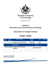Faculty of Information and Communication Technology Department of Computer Science STUDY GUIDE NQF LEVEL NQF CREDITS MODULE NAME MODULE CODE YEAR SEMESTER 5 15 Programming (Extended) I PG1F05D 2025 0 QUALIFICATION SAQA ID: National Diploma: Engineering: Computer Systems H/H16/E077CAN Compiled by Tshepo Raphiri Revised on: February 2025 ©COPYRIGHT: Tshwane University of Technology Private Bag X680 PRETORIA 0001 All rights reserved. Apart from any reasonable quotations for the purposes of research criticism or review as permitted under the Copyright Act, no part of this book may be reproduced or transmitted in any form or by any means, electronic or mechanical, including photocopy and recording, without permission in writing from the publisher. © Tshwane University of Technology | Department of Computer Science | Programming (Extended) 1 2 Contents SECTION A – INTRODUCTION............................................................................................................................ 5 1. Welcome ...........................................................................................................................................................5 2. Introduction ......................................................................................................................................................5 3. Name of the module .........................................................................................................................................5 4. Module Credits/Weight ....................................................................................................................................5 5. Custodian department of this module .............................................................................................................5 6. Purpose of the module .....................................................................................................................................5 7. Code of conduct................................................................................................................................................6 SECTION B – ORGANISATIONAL COMPONENT................................................................................................... 7 8. Contact information of custodian department of this module ........................................................................7 9. Contact information of lecturers ......................................................................................................................7 9.1. Module coordinator/s ..............................................................................................................................7 9.2. Facilitators for PG1F05D ...........................................................................................................................7 10. Library Contact Details .................................................................................................................................8 11. Student Support Contact Details ..................................................................................................................8 12. Time table .....................................................................................................................................................8 Group Allocation ...................................................................................................................................................8 No accommodations for any reason can be made for switching to a different group. .................................................... 8 Class Times............................................................................................................................................................8 13. Consultation..................................................................................................................................................9 14. Schedule .....................................................................................................................................................10 SECTION C – PRESCRIBED AND RECOMMENDED RESOURCES........................................................................... 11 15. Prescribed Textbook ...................................................................................................................................11 16. Additional Module Resource Information ..................................................................................................11 17. Recommended Additional Resources.........................................................................................................12 18. Recommended Electronic resources ..........................................................................................................13 19. Supplied Resources .....................................................................................................................................13 20. E-Learning platform ....................................................................................................................................13 SECTION D – MODULE DESCRIPTION............................................................................................................... 14 21. Alignment of this module with the relevant exit level outcomes ..............................................................14 22. Learning outcomes, assessment criteria, teaching activities, and Assessment method ...........................16 Learning outcome: A.1 Understand problems and how to solve them using a computer. (Reference Book: Basic Principles Notes) .............................................................................................................................................................. 16 Learning outcome: A.2. Getting started with Integrated Development Environment (i.e.: Visual Studio) (Reference Book: 