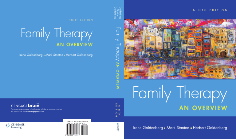 EDITION AN OVERVIEW Irene Goldenberg Mark Stanton NINTH EDITION To register or access your online learning solution or purchase materials for your course, visit www.cengagebrain.com. Herbert Goldenberg Family Therapy A N O V E R V I E W Family Therapy Goldenberg Stanton Goldenberg NINTH N I N T H E D I T I O N Family Therapy AN OVERVIE W Irene Goldenberg Mark Stanton Herbert Goldenberg Want to turn C’s into A’s? Obviously, right? But the right way to go about it isn’t always so obvious. Go digital to get the grades. MindTap’s customizable study tools and eTextbook give you everything you need all in one place. Engage with your course content, enjoy the flexibility of studying anytime and anywhere, stay connected to assignment due dates and instructor notifications with the MindTap Mobile app... and most of all…EARN BETTER GRADES. TO GET STARTED VISIT WWW.CENGAGE.COM/STUDENTS/MINDTAP N i n t h E D ITI O N Family Therapy AN OVERVIEW Irene Goldenberg Mark Stanton Herbert Goldenberg Professor Emerita, University of Azusa Pacific University California, Los Angeles Australia • Brazil • Mexico • Singapore • United Kingdom • United States Family Therapy: An Overview, Ninth Edition Irene Goldenberg, Mark Stanton and Herbert Goldenberg Product Director: Jon Goodspeed Product Manager: Julie Martinez Content Developer: Amelia Blevins Product Assistant: Stephen Lagos Marketing Manager: Jennifer Levanduski Art and Cover Direction, Production Management, and Composition: Lumina Datamatics, Inc. Manufacturing Planner: Judy Inouye © 2017, 2013 Cengage Learning ALL RIGHTS RESERVED. No part of this work covered by the copyright herein may be reproduced or distributed in any form or by any means, except as permitted by U.S. copyright law, without the prior written ­permission of the copyright owner. For product information and technology assistance, contact us at Cengage Learning Customer & Sales Support, 1-800-354-9706 For permission to use material from this text or product, submit all requests online at www.cengage.com/permissions Further permissions questions can be emailed to permissionrequest@cengage.com Library of Congress Control Number: 2016930346 Cover Image: ©kasyanovart/Shutterstock Student Edition: ISBN: 978-1-305-09296-9 Unless otherwise noted, all items © Cengage Learning Loose-leaf Edition: ISBN: 978-1-305-86639-3 Cengage Learning 20 Channel Center Street Boston, MA 02210 USA Cengage Learning is a leading provider of customized learning solutions with employees residing in nearly 40 different countries and sales in more than 125 countries around the world. Find your local representative at www.cengage.com. Cengage Learning products are represented in Canada by Nelson Education, Ltd. To learn more about Cengage Learning Solutions, visit www.cengage. com. Purchase any of our products at your local college store or at our ­preferred online store www.cengagebrain.com. Printed in the Canada Print Number: 01 Print Year: 2016 Dedication to Herb Goldenberg, 1926–2008 To Herb, whose compassion, integrity, intelligence, and unwavering support nourished our relationship and made this book possible. Thank you for the life, the love, and the family. Irene Goldenberg Contents PART I Fundamentals of Family Psychology 1 1 Adopting a Family Relationship Framework 1 Family Systems: Fundamental Concepts 2 Today’s Families: A Pluralistic View 3 Family Structure 4 Basic Structural Characteristics 4 Family Interactive Patterns 5 Family Narratives and Assumptions 5 Family Resiliency 7 Gender, Race, and Ethnicity and Family Therapy 10 Gender Roles and Gender Ideology 10 Cultural Diversity and the Family 12 Impact of Gender and Cultural Influences on the Therapist and Therapy 14 Shifting Perspectives of Family Therapy 15 Shifting Paradigm: From Individual Psyche to Family System 15 The Origins of Family Therapy: A New Paradigm Begins to Take Shape 16 Cybernetics: The Paradigm Shift Continues 19 Reciprocal Determinism 20 Second-Order Cybernetics and Postmodernism 22 The Identified Patient as Seen from the Different Family Therapy Perspectives 25 Summary 27 Recommended Readings 28 2 Family Development: Continuity and Change 29 Developing a Life Cycle Perspective 30 Identifying Developmental Tasks 30 Conceptualizing the Life Cycle: Some Preliminary Cautions 30 Family Diversity May Modify Life Cycle Stages 31 The Family Life Cycle Framework 32 Family Life Cycle Stages 32 Continuity and Change Throughout the Family Life Cycle 32 v vi Contents A Family Life Cycle Stage Model 35 The Developmental Stages 35 Family Transitions and Symptomatic Behavior 35 Family Life Cycles: A Multidimensional, Multicultural, and Multigenerational Perspective 36 Critiques of the Stage Model 37 The Stages of Family Development 39 “Coupling” and Preparing for Parenthood 40 The Arrival of Children 41 Coping with Adolescence 43 Leaving Home 44 Reorganizing Generational Boundaries 44 Retirement, Illness, Widowhood 44 Other Developmental Sequences in Families 45 Single-Parent–Led Families 47 Remarried Families 49 Families with Gay or Lesbian Members 53 Summary 58 Recommended Readings 59 3 Diversity in Family Functioning 60 Multicultural and Culture-Specific Considerations 62 Culture-Sensitive Therapy 63 Developing a Multicultural Framework 64 Cultural Specificity and Family Systems 65 Gender Issues in Families and Family Therapy 69 Feminism and Family Therapy 71 Feminist Reexamination of Family Therapy Theory and Practice Gender, Work, and Family Life 73 Men’s Studies and Gender-Role Awareness 74 Therapy from a Gender-Sensitive Perspective 79 Socioeconomic Status and Family Functioning 79 Therapy and Social Justice 81 Summary 82 Recommended Readings 83 72 4 Systems Theory and Systemic Thinking 84 Extending Beyond the Scientific Method 84 Seeing the System 85 Some Characteristics of a Family System 87 Organization and Wholeness 87 Family Rules and Patterns 89 Contents vii Family Homeostasis or Adaptation? 92 Feed