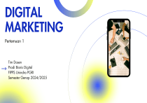 DIGITAL MARKETING Pertemuan 1 Tim Dosen Prodi Bisnis Digital FIPPS Unindra PGRI Semester Genap 2024/2025 Introduction to Digital Marketing a. Pengertian Digital Marketing b. Media Berbayar, Dimiliki & Menghasilkan c. Konteks 7D's Digital Marketing d. Tujuan & Strategi Digital Marketing e. Model Bisnis & Pendapatan f. Tantangan & Tren Digital Marketing Definition of Digital Marketing Pemasaran digital dapat didefinisikan secara sederhana sebagai: Mencapai tujuan pemasaran melalui penerapan media digital, data, dan teknologi. Definisi yang ringkas ini mengingatkan kita bahwa hasil yang diberikan oleh teknologi harus menjadi faktor penentu dalam investasi pemasaran digital, bukan sekadar adopsi teknologinya! Kita juga perlu mengingat bahwa meskipun perangkat digital semakin populer dalam pemilihan produk, hiburan, dan pekerjaan, kita masih menghabiskan banyak waktu di dunia nyata. Oleh karena itu, integrasi dengan media tradisional tetap penting dalam banyak sektor. Secara praktik, pemasaran digital berfokus pada pengelolaan berbagai bentuk kehadiran online perusahaan, seperti situs web perusahaan, aplikasi seluler, dan halaman media sosial perusahaan. Kehadiran ini terintegrasi dengan teknik komunikasi online yang akan diperkenalkan lebih lanjut dalam bab ini, termasuk pemasaran mesin pencari (search engine marketing), pemasaran konten (content marketing), pemasaran media sosial (social media marketing), periklanan online (online advertising), pemasaran email (email marketing), serta kerja sama dengan situs web lain. Teknik-teknik ini digunakan untuk mendukung tujuan memperoleh pelanggan baru serta memberikan layanan kepada pelanggan yang sudah ada guna mengembangkan hubungan pelanggan melalui manajemen hubungan pelanggan (Customer Relationship Management atau CRM). Namun, agar pemasaran digital berhasil, teknik-teknik ini masih perlu diintegrasikan dengan media tradisional seperti cetak, televisi, surat langsung (direct mail), serta tenaga penjualan dan layanan pelanggan sebagai bagian dari komunikasi pemasaran multikanal (multichannel marketing communications). Definition of Digital Marketing Menurut Dr Feri Sulianta Pemasaran Digital adalah kegiatan atau tindakan mempromosikan barang atau jasa menggunakan saluran distrubusi digital. Menurut Kotler et al. (2016); Pemasaran digital adalah penggunaan saluran digital seperti mesin pencari, media sosial, email, dan situs web untuk berkomunikasi dengan konsumen potensial atau pelanggan. Dalam pengertian ini, pemasaran digital tidak hanya melibatkan upaya promosi, tetapi juga melibatkan interaksi aktif dengan audiens target melalui berbagai platform online (Erwin et al., 2022; Erwin et al., 2023a). Pemasaran digital adalah bentuk pemasaran yang menggunakan perangkat elektronik dan internet. Ini mencakup berbagai teknik dan strategi yang digunakan oleh perusahaan untuk mempromosikan produk atau layanan mereka melalui saluran digital seperti mesin pencari, media sosial, email, situs web dan sebagainya untuk menjangkau potensial customer di internet dengan cepat, tepat waktu, tepat pribadi serta relevan/terukur. Media Berbayar Benefits and challenges of each channel Lorem ipsum dolor sit amet, consectetur adipiscing elit. Morbi sit amet metus neque. Mauris scelerisque egestas magna eget scelerisque. How to choose the right mix Media Berbayar Strategi Digital dan Jenis Media dalam Pemasaran Digital Untuk mengembangkan strategi digital yang efektif saat ini, diperlukan pemahaman tentang lingkungan pembelian yang semakin kompleks dan kompetitif. Perjalanan pelanggan (customer journey) mencakup berbagai titik kontak (touchpoints) dalam berbagai bentuk kehadiran online. Lorem ipsum dolor sit amet, consectetur Dalam menyusun strategi untuk menjangkau dan mempengaruhi pelanggan potensial secara online, pemasar biasanya adipiscing elit. Morbi sit amet metus neque. mempertimbangkan tiga jenis media utama berikut: Mauris scelerisque egestas magna eget 1. Paid Media (Media Berbayar) scelerisque. Media yang memerlukan investasi untuk memperoleh pengunjung, jangkauan, atau konversi. Contoh: Iklan pencarian (search ads) How to choose the right mix Jaringan iklan tampilan (display ad networks) Pemasaran afiliasi (affiliate marketing) Media tradisional seperti iklan cetak, iklan TV, dan surat langsung (direct mail) juga tetap penting untuk beberapa merek, terutama produk konsumen. Media Berbayar 2. Owned Media (Media Milik Sendiri) Media yang dimiliki dan dikendalikan oleh perusahaan. Contoh media online: Situs web perusahaan Blog Daftar email pelanggan Aplikasi seluler Halaman media sosial (Facebook, Instagram, LinkedIn, Twitter) Contoh media offline: Brosur Toko ritel Media milik sendiri dianggap sebagai investasi alternatif yang memungkinkan perusahaan mempromosikan produknya menggunakan format iklan atau editorial serupa dengan media lain. Oleh karena itu, setiap organisasi harus menjadi penerbit multikanal (multichannel publisher). Media Berbayar 3. Earned Media (Media yang Diperoleh) Media yang diperoleh melalui publisitas dan keterlibatan pihak ketiga. Tradisionalnya, earned media berasal dari upaya PR yang menargetkan influencer untuk meningkatkan kesadaran merek. Saat ini, earned media juga mencakup: Word of mouth yang dipicu melalui pemasaran viral dan media sosial Percakapan di media sosial, blog, dan komunitas online lainnya Earned media melibatkan berbagi konten menarik yang dikembangkan bersama mitra seperti penerbit, blogger, dan influencer, termasuk advokat pelanggan. Secara lebih luas, earned media mencerminkan berbagai bentuk interaksi dan percakapan antara konsumen dan bisnis, baik secara online maupun offline. Strategi digital yang sukses membutuhkan pemanfaatan ketiga jenis media ini secara terintegrasi untuk mencapai tujuan pemasaran secara efektif. Konteks 7D’s Digital Marketing Tujuan Digital Marketing Tujuan Digital Marketing Reach (Menjangkau) Membangun kesadaran merek, produk, dan layanan melalui situs lain serta media offline. Menin