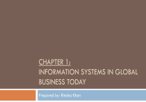 CHAPTER 1: INFORMATION SYSTEMS IN GLOBAL BUSINESS TODAY Prepared by: Rimsha Khan Learning Objectives Why information systems are so essential in business today. Define an information system from both technical and a business perspective. Business Objectives achieved through Information System Define and describe business processes and their relationship to information systems. Identify and describe the three dimensions of information systems. Assess the complementary assets required for information technology to provide value to a business. Identify and describe contemporary approaches to the study of information systems and distinguish between computer literacy and information systems literacy. Management Information System (MIS) DEFINITION: Management information systems (MIS) is the study of how people use technology to manage information. It is a computer-based system that provides managers with the tools to organizes, evaluate and manage departments within organization. It’s purpose is to transform raw data into useful information for decision making. It’s the process of turning data into insights that that guide business strategies and dayto-day operations. MEANING: Management information system is an acronym of three words, viz., Management, Information, System. In order to fully understand the term MIS, let us try to understand these three words. Management: Management is the art of getting things done through and with the people in formally organized groups. Data Vs Information Data is a collection of raw facts that may or may not be meaningful for managers. Input to any system may be treated as Data. It is very difficult to understand data and needs to be processed to understand. Data may not be in the order. Information is the outcome derived after processing the data and is always meaningful. Output after processing the system is Information. Processing is performed by performing arithmetic logical calculations on data of simply by rearranging the data. It is very easy to understand information. Information should be in the order. For example, researchers who conduct market research survey might ask a member of the public to complete questionnaires about a product or a service. These completed questionnaires are data; they are processed and analyze in order to prepare a report on the survey. This resulting report is information. Information System (IS) System: A system may be defined as a set of elements which are joined together to achieve a common objective. The set of elements for a system may be understood as input, process and output. An information system (IS) consists of several components: hardware, software, data, people, and procedures. The components’ common goal is to produce the best information from available data. System Hierarchy Information systems are composed of three main elements: technology, people, and process. Information systems (IS) are defined more broadly as the combination of technology (the “what”), people (the “who”), and process (the “how”) that an organization uses too produce and manage information. Characteristics of Information Accuracy: Information must be correct and free from errors to ensure reliable decision-making. Relevance: The information should be applicable to the purpose for which it is being used, ensuring it supports current needs or decisions. Timeliness: Information should be available when needed; too early or late can render it useless. Completeness: All necessary details should be included so users can make informed decisions without gaps in understanding. Form/Presentation: The format of information should facilitate easy understanding by the intended user, whether summarized or detailed. Purpose: Information must serve a specific objective; otherwise, it remains mere data1. Reliability/Validity: The source of information should be trustworthy and consistent with its intended purpose13. Subjectivity/Objectivity: Awareness of personal biases (subjectivity) is crucial; ideally, information should strive for objectivity to avoid misinterpretation2. Accessibility/Adequacy/Availability: Information must be easily accessible and provide sufficient details to meet user needs on time Component of Information System (Technical Perspective) Business Objectives achieved through IS Operational Excellence: Businesses can constantly improve their efficiency of their operations in order to achieve higher profitability. They can do this by constantly having the correct amount of stock in store so consumers can always get want they want. New product services and business models: I.S systems play a major role for businesses in creating new products and services. New business models can be created and these can describe how a company produce, create and sell there products. Customer and Supplier intimacy: The better services a company provides its consumers with more likely they are too come back to them and as result the more they will buy off the supplier therefore creating a good relationship with both parties. Competitive advantage: If companies achieve any of the above objectives they will generally create a competitive advantage over their rivals. Day to Day survival: Business invest in these systems to make their jobs as easy as possibly. An example is Citibank introduced the first ATM machine to make it easier for customer to access their money and to cut down queues in their banks. Why do Business need MIS? Supporting decision making: The main purpose of MIS is to provide managers with information that helps them make better decisions. This includes data on performance, trends, and business forecasts. Improving efficiency: By automating data collection and report generation, MIS helps improve operational Efficiency. Tasks that would otherwise be manual and time-consuming are done quickly and accurately. Enhancing Coordination: MIS integrates different department in an organization, ensuring that everyone is worki