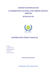 UNITED NATIONS STAFF CO‐OPERATIVE SAVINGS AND CREDIT SOCIETY LIMITED (UNS-SACCO) GOVERNANCE POLICY MANUAL UNS-SACCO AGA HOUSE, 2nd Floor, Plot 89, Mawanda, Road P.O. BOX 21412, KAMPALA- UGANDA REVIEWED MARCH 2021 1 GOVERNANCE POLICY MANUAL 2021 Contents FOREWORD ..........................................................................................................................................................3 PREFACE ...............................................................................................................................................................4 Contents ...............................................................................................................................................................5 0.1 General Provisions ...................................................................................................................................7 0.2 Mandate of the manual ...........................................................................................................................7 0.3 Objectives of the manual .........................................................................................................................7 0.4 Scope ........................................................................................................................................................7 0.5 Revision and amendment ........................................................................................................................8 Abbreviations and acronyms ...............................................................................................................................8 1.0 INTRODUCTION ........................................................................................................................................9 1.1 Background ..........................................................................................................................................9 1.2 Strategic direction ............................................................................................................................. 10 1.2.1 The Vision: ............................................................................................................................... 10 1.2.2 The mission: ............................................................................................................................. 10 1.2.3 The Core Values: ...................................................................................................................... 10 2.0 UNS- SACCO CORPORATE GOVERNANCE.............................................................................................. 12 2.1 The Annual General Meeting (AGM) ................................................................................................ 12 2.2 The Board .......................................................................................................................................... 13 2.3 Functions of the Board ...................................................................................................................... 14 2.4 The Supervisory Board. ..................................................................................................................... 15 2.5 Mandate of the Supervisory Board ................................................................................................... 16 2.6 Vetting Committee ............................................................................................................................ 18 2.7 Subcommittees of the Board ............................................................................................................ 19 2.8.1 Finance and Risk Committee..................................................................................................... 20 2.8.2 Management and Operations Committee ................................................................................ 22 2.8.3 Lending Credit Committee ........................................................................................................ 23 2.8.4 Investment, Partnerships and Research Committee ................................................................ 24 3.0 ROLES AND RESPONSIBILITIES IN GOVERNANCE .................................................................................. 27 3.1 Board Chairperson ............................................................................................................................ 27 3.2 Vice Chairperson ............................................................................................................................... 27 3.3 Treasurer ........................................................................................................................................... 27 5 GOVERNANCE POLICY MANUAL 2021 3.4 Secretary ........................................................................................................................................... 28 3.5 Members ........................................................................................................................................... 29 4.0 GOVERNANCE MEETING ....................................................................................................................... 31 4.1 General Meeting ............................................................................................................................... 31 4.2 Annual General meeting ................................................................................................................... 31 4.3 Special General Meetings ................................................................................................................. 32 4.4 Board Meetings ................................................................................................................................. 32 4.5 The Supervisory meetings .......................