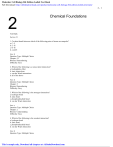 Molecular Cell Biology 8th Edition Lodish Test Bank Full Download: https://alibabadownload.com/product/molecular-cell-biology-8th-edition-lodish-test-bank/ 2-1 2 Chemical Foundations Test Bank Section 2.1 1. Covalent bonds between which of the following pairs of atoms are nonpolar? a. C–C b. C–H c. O–H d. a and b Ans: d Question Type: Multiple Choice Chapter: 2.1 Blooms: Remembering Difficulty: Easy 2. Which of the following is a noncovalent interaction? a. hydrophobic effect b. ionic interactions c. van der Waals interactions d. all of the above Ans: d Question Type: Multiple Choice Chapter: 2 Blooms: Remembering Difficulty: Easy 3. Which of the following is the strongest interaction? a. hydrogen bond b. ionic bond c. phosphoanhydride bond d. van der Waals interaction Ans: c Question Type: Multiple Choice Chapter: 2 Blooms: Understanding Difficulty: Easy 4. Which of the following is the weakest interaction? a. hydrogen bond b. ionic bond c. phosphoanhydride bond d. van der Waals interaction Ans: d Question Type: Multiple Choice This is sample only, Download all chapters at: AlibabaDownload.com 2-2 Chapter: 2 Blooms: Understanding Difficulty: Easy 5. When two atoms differing in electronegativity are joined in a covalent bond, then the: a. electrons are shared equally between the atoms. b. bond is nonpolar. c. resulting compound is devoid of any dipole moment. d. atom with the greater electronegativity attracts the bonded electrons more strongly. Ans: d Question Type: Multiple Choice Chapter: 2 Blooms: Understanding Difficulty: Moderate 6. The interactions between two proteins such as an antibody and an antigen or a hormone and its receptor are quite strong despite the fact that these interactions consist of relatively weak noncovalent bonds. How can this be? Ans: Two proteins can bind tightly because of molecular complementarity, in which multiple noncovalent bonds participate. Although each individual bond is weak, the cumulative effect of many noncovalent bonds is a relatively strong and highly specific interaction. Question Type: Essay Chapter: 2 Blooms: Analyzing Difficulty: Moderate 7. What produces the dipole of a water molecule? Ans: The dipole of a water molecule is caused by the difference in electronegativity between O and H. The oxygen atom has a greater electronegativity than the hydrogen atom. As a result, oxygen attracts the electrons in the O–H bond more strongly, and the oxygen side of the bond has a slight net negative charge. This results in a dipole moment. Question Type: Essay Chapter: 2.1 Blooms: Understanding Difficulty: Moderate Section 2.2 8. Which of the following is a negatively charged amino acid? a. alanine b. aspartate c. glutamine d. histidine Ans: b Question Type: Multiple Choice Chapter: 2 Blooms: Remembering Difficulty: Easy 9. Which of the following is/are a hydrophilic amino acid? a. aspartate b. serine c. tryptophan d. aspartate and serine 2-3 Ans: d Question Type: Multiple Choice Chapter: 2 Blooms: Remembering Difficulty: Easy 10. Adenosine is a: a. component of RNA. b. nucleoside. c. pyrimidine. d. a and b Ans: d Question Type: Multiple Choice Chapter: 2 Blooms: Remembering Difficulty: Moderate 11. Which of the following is a monosaccharide? a. fructose b. galactose c. glucose d. all of the above Ans: d Question Type: Multiple Choice Chapter: 2 Blooms: Remembering Difficulty: Easy 12. Based on what you know about hydrophobic interactions, which of the following is/are composed of a bilayer? a. a cell’s membrane b. spontaneously aggregated phospholipids surrounding an aqueous interior c. lipid vesicles that have budded off the cell’s membrane d. all of the above Ans: d Question Type: Multiple Choice Chapter: 2 Blooms: Remembering Difficulty: Easy 13. You discover that you suffer from a deficiency in the amino acid tryptophan. At the pharmacy, you find both D-tryptophan and L-tryptophan supplements. Which do you purchase? Why? Ans: You should choose L-tryptophan. All amino acids can exist as one of two stereoisomers ( D or L) because of asymmetry around the α carbon. Proteins consist of the L form of amino acids, and as these stereoisomers possess distinct biological properties and are not readily interconverted, you should choose the form that is normally utilized by cells. Question Type: Essay Chapter: 2 Application Difficulty: Moderate 14. Cysteine often plays an important role in stabilizing protein structure. Explain how this works. 2-4 Ans: Two adjacent sulfhydryl (SH) groups can oxidize to form a covalent disulfide (S–S) bond. Disulfide bonds can stabilize the structure of folded peptides or sometimes link two separate peptide chains together. Question Type: Essay Chapter: 2 Blooms: Understanding Difficulty: Easy 15. Triacylglycerol and cholesterol esters are nonpolar; in contrast, phospholipids are amphipathic molecules. Biomembranes are based on phospholipids rather than on triacylglycerols. Why? Ans: Biomembranes are based on phospholipids rather than on triacylglycerols because phospholipids as amphipathic molecules can form planar lipid bilayers, whereas the nonamphipathic nonpolar triacylglycerols cannot. Their amphipathic property, the presence of a polar and nonpolar domain at opposite ends of the same molecule, allows phospholipids to form hydrophilic associations with water at the same time as forming hydrophobic associations with each other through their hydrophobic tails. Triacylglycerols are strictly hydrophobic in nature and hence in an aqueous environment tend to associate with one another to form lipid droplets. This minimizes the contact of triacylglycerol with water. Recall the old adage: oil and water do not mix. Question Type: Essay Chapter: 2 Blooms: Evaluating Difficulty: Difficult 16. A nucleotide can vary in _____. a. the base b. the sugar c. the phosphate group d. the sugar and the base Ans: d Question Type: Multiple Choice Chapter: 2 Blooms: Understanding Difficulty: Moderate 17. Which of the following is