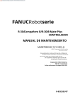 Traducido del inglés al español - www.onlinedoctranslator.com FANUCRobotserie R-30iCompañero B/R-30iB Mate Plus CONTROLADOR MANUAL DE MANTENIMIENTO MARETIBCN01121E REV.G ©2017 Corporación FANUC América Reservados todos los derechos. Esta publicación contiene información confidencial de FANUC America Corporation, se proporciona únicamente para uso del cliente. No se autoriza ningún otro uso. sin el permiso expreso por escrito de Corporación FANUC América. Corporación FANUC América 3900 W. Hamlin Road Colinas de Rochester, Michigan 48309–3253 B-83525ES/07 Derechos de autor y marcas comerciales Esta nueva publicación contiene información exclusiva de FANUC America Corporation, proporcionada únicamente para uso del cliente. No se autoriza ningún otro uso sin el permiso expreso por escrito de FANUC America Corporation. Las descripciones y especificaciones contenidas en este manual estaban vigentes en el momento en que se aprobó su impresión. FANUC America Corporation, en adelante denominada FANUC, se reserva el derecho de discontinuar modelos en cualquier momento o de cambiar las especificaciones o el diseño sin previo aviso y sin incurrir en obligaciones. Los manuales de FANUC presentan descripciones, especificaciones, dibujos, esquemas, listas de materiales, piezas, conexiones y/o procedimientos para instalar, desmontar, conectar, operar y programar productos y/o sistemas de FANUC. Dichos sistemas consisten en robots, ejes extendidos, controladores de robots, software de aplicación, el lenguaje de programación KAREL®, equipos de visión INSIGHT® y herramientas especiales. FANUC recomienda que solo las personas que hayan recibido capacitación en uno o más cursos de capacitación aprobados por FANUC puedan instalar, operar, usar, realizar procedimientos, reparar y/o mantener los productos y/o sistemas de FANUC y sus respectivos componentes. La capacitación aprobada requiere que los cursos seleccionados sean relevantes para el tipo de sistema instalado y la aplicación realizada en las instalaciones del cliente. ADVERTENCIA Este equipo genera, utiliza y puede emitir energía de radiofrecuencia y, si no se instala y utiliza de acuerdo con el manual de instrucciones, puede causar interferencias en las comunicaciones por radio. Según lo permitido temporalmente por la reglamentación, no se ha probado su cumplimiento con los límites para dispositivos informáticos de Clase A de conformidad con la Subparte J y la Parte 15 de las Normas de la FCC, que están diseñadas para proporcionar una protección razonable contra dichas interferencias. Es probable que el funcionamiento del equipo en un área residencial cause interferencias, en cuyo caso el usuario, a su propio cargo, deberá tomar las medidas necesarias para corregir la interferencia. FANUC imparte cursos sobre sus sistemas y productos de forma periódica en la sede mundial de la empresa en Rochester Hills, Michigan. Para obtener más información, póngase en contacto con Departamento de Capacitación de FANUC America Corporation 3900 W. Hamlin Road Rochester Hills, Michigan 48309-3253 www.fanucamerica.com Para recibir asistencia al cliente, incluido soporte técnico, servicio, repuestos y reparación de repuestos, y solicitudes de marketing, comuníquese con el Centro de recursos para clientes, las 24 horas del día, al 1-800-47-ROBOT (1-800-477-6268). Los clientes internacionales deben llamar al 011-1-248-377-7159. Envíe sus comentarios y sugerencias sobre este manual a: producto.documentation@fanucamerica.com Copyright © 2017 de FANUC America Corporation. Todos los derechos reservados. La información ilustrada o contenida en este documento no debe interpretarse como reproducido, copiado, descargado, traducido a otro idioma, publicado en cualquier formato físico o electrónico, incluido Internet, o transmitido total o parcialmente de cualquier manera sin el consentimiento previo por escrito de FANUC America Corporation. AccuStat®, ArcTool®,iRVision®, KAREL®, PaintTool®, PalletTool®, SOCKETS®, SpotTool®, SpotWorks® y TorchMate® son marcas comerciales registradas de FANUC. FANUC se reserva todos los derechos de propiedad, incluidos, entre otros, los derechos de marca registrada y nombre comercial, de los siguientes nombres: AccuAir™, AccuCal™, AccuChop™, AccuFlow™, AccuPath™, AccuSeal™, ARC Mate™, ARC Mate Sr.™, Sistema ARC Mate 1™, Sistema ARC Mate 2™, Sistema ARC Mate 3™, Sistema ARC Mate 4™, Sistema ARC Mate 5™, ARCWorks Pro™, AssistTool™, AutoNormal™, AutoTCP™, BellTool™, BODYWorks™, Cal Mate™, Buscador de células™, Buscador central™, Clean Wall™, DualARM™, Herramienta LR™, MIG Eye™, MotionParts™, MultiARM™, NoBots™, Paint Stick™, PaintPro™, PaintTool 100™, PAINTWorks™, PAINTWorks II™, PAINTWorks III™, PalletMate™, PalletMate PC™, PalletTool PC™, PayloadID™, RecipTool™, RemovalTool™, Robo Chop™, Robo Spray™, S-420i™, S-430i™, ShapeGen™, SoftFloat™, SOFT PARTS™, SpotTool+™, SR Mate™, SR ShotTool™, SureWeld™, Controlador SYSTEM R-J2™, Controlador SYSTEM R-J3™, SYSTEM R-J3iControlador B™, SISTEMA R-J3iControlador C™, SISTEMA R-30iUn controlador™, SISTEMA R-30iUn controlador Mate™, SISTEMA R-30iControlador B™, SISTEMA R-30iControlador B Mate™, SISTEMA R-30i Controlador B Plus™, SISTEMA R-30iControlador B Mate Plus™, TCP Mate™, TorchMate™, TripleARM™, TurboMove™, visLOC™, visPRO-3D™, visTRAC™, WebServer™, WebTP™ y YagTool™. © CORPORACIÓN FANUC 2017 • Ninguna parte de este manual puede reproducirse bajo ninguna forma. • Todas las especificaciones y diseños están sujetos a cambios sin previo aviso. Patentes Una o más de las siguientes patentes estadounidenses podrían estar relacionadas con los productos FANUC descritos en este manual. Lista de patentes de FANUC America Corporation 4.630.567 4.639.878 4.707.647 4.708.175 4.708.580 4.942.539 4.984.7