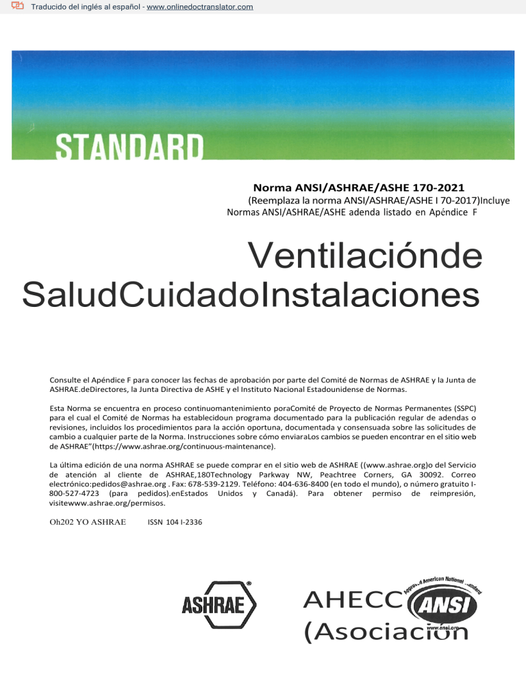 Norma ANSI/ASHRAE/ASHE 170-2021