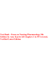 Test Bank - Focus on Nursing Pharmacology 9th Edition by Amy Karch All Chapters 1 to 59 Covered, Verified Latest Edition Test Bank - Focus on Nursing Pharmacology (9th Edition by Karch) Chapter 01 - Introduction to Drugs A nurse working in radiology administers iodine to a patient who is having a computed tomography (CT) scan. The nurse working on the oncology unit administers chemotherapy to patients who have cancer. At the Public Health Department, a nurse administers a measles-mumps-rubella (MMR) vaccine to a 14-month-old child as a routine immunization. Which branch of pharmacology best describes the actions of all three nurses? Pharmacoeconomics Pharmacotherapeutics Pharmacodynamics Pharmacokinetics Ans: B Feedback: Pharmacology is the study of the biologic effects of chemicals. Nurses are involved with clinical pharmacology or pharmacotherapeutics, which is a branch of pharmacology that deals with the uses of drugs to treat, prevent, and diagnose disease. The radiology nurse is administering a drug to help diagnose a disease. The oncology nurse is administering a drug to help treat a disease. Pharmacoeconomics includes any costs involved in drug therapy. Pharmacodynamics involves how a drug affects the body and pharmacokinetics is how the body acts on the body. A physician has ordered intramuscular (IM) injections of morphine, a narcotic, every 4 hours as needed for pain in a motor vehicle accident victim. The nurse is aware this drug has a high abuse potential. Under what category would morphine be classified? Schedule I Schedule II Schedule III Schedule IV Ans: B Feedback: Narcotics with a high abuse potential are classified as Schedule II drugs because of severe dependence 3 Test Bank - Focus on Nursing Pharmacology (9th Edition by Karch) 4 liability. Schedule I drugs have high abuse potential and no accepted medical use. Schedule III drugs have a lesser abuse potential than II and an accepted medical use. Schedule IV drugs have low abuse potential and limited dependence liability. When involved in phase III drug evaluation studies, what responsibilities would the nurse have? Working with animals who are given experimental drugs Choosing appropriate patients to be involved in the drug study Monitoring and observing patients closely for adverse effects Conducting research to determine effectiveness of the drug Ans: C Feedback: Phase III studies involve use of a drug in a vast clinical population in which patients are asked to record any symptoms they experience while taking the drugs. Nurses may be responsible for helping collect and analyze the information to be shared with the Food and Drug Administration (FDA) but would not conduct research independently because nurses do not prescribe medications. Use of animals in drug testing is done in the preclinical trials. Select patients who are involved in phase II studies to participate in studies where the participants have the disease the drug is intended to treat. These patients are monitored closely for drug action and adverse effects. Phase I studies involve healthy human volunteers who are usually paid for their participation. Nurses may observe for adverse effects and toxicity. What concept is considered when generic drugs are substituted for brand name drugs? Bioavailability Critical concentration Distribution Half-life Ans: A Feedback: Bioavailability is the portion of a dose of a drug that reaches the systemic circulation and is available to act on body cells. Binders used in a generic drug may not be the same as those used in the brand name drug. Therefore, the way the body breaks down and uses the drug may differ, which may eliminate a generic drug substitution. Critical concentration is the amount of a drug that is needed to cause a therapeutic effect and should not differ between generic and brand name medications. Distribution is the phase of pharmacokinetics, which involves the movement of a drug to the body’s tissues and is the Test Bank - Focus on Nursing Pharmacology (9th Edition by Karch) 5 same in generic and brand name drugs. A drug’s half-life is the time it takes for the amount of drug to decrease to half the peak level, which should not change when substituting a generic medication. A nurse is assessing the patient’s home medication use. After listening to the patient list current medications, the nurse asks what priority question? Do you take any generic medications? Are any of these medications orphan drugs? Are these medications safe to take during pregnancy? Do you take any over-the-counter medications? Ans: D Feedback: It is important for the nurse to specifically question use of over-the-counter medications because patients may not consider them important. The patient is unlikely to know the meaning of orphan drugs unless they too are health care providers. Safety during pregnancy, use of a generic medication, or classification of orphan drugs are things the patient would be unable to answer but could be found in reference books if the nurse wishes to research them. After completing a course on pharmacology for nurses, what will the nurse know? Everything necessary for safe and effective medication administration Current pharmacologic therapy; the nurse will not require ongoing education for 5 years. General drug information; the nurse can consult a drug guide for specific drug information. The drug actions that are associated with each classification of medication Ans: C Feedback: After completing a pharmacology course nurses will have general drug information needed for safe and effective medication administration but will need to consult a drug guide for specific drug information before administering any medication. Pharmacology is constantly changing, with new drugs entering the market and new uses for existing drugs identified. Continuing education in pharmacology is essential to safe practice. Nurses tend to become familiar with the medications they administer most often, but there will alwa