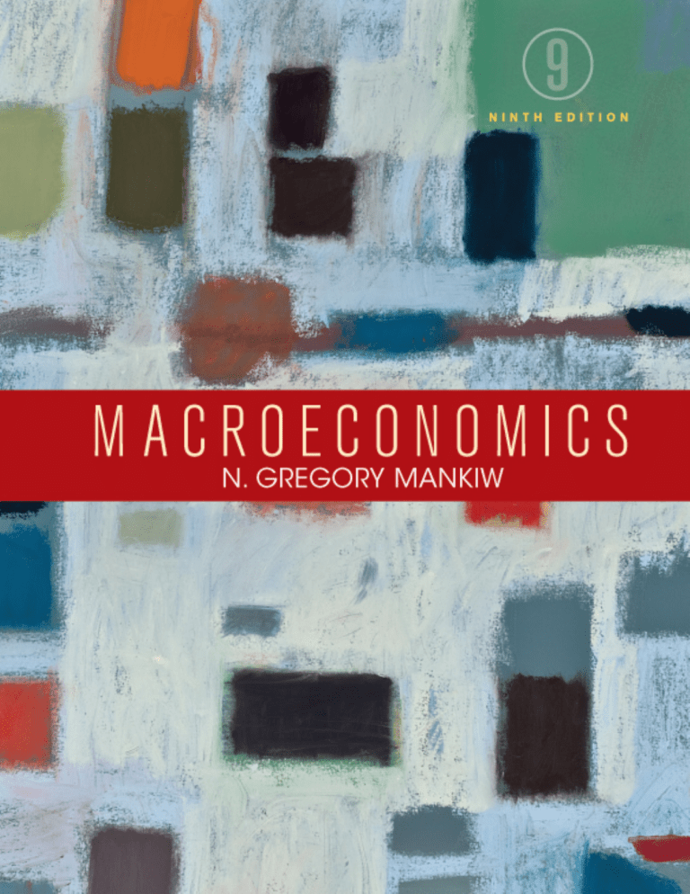 MACROECONOMICS this page left intentionally blank NINTH EDITION MACROECONOMICS N. GREGORY MANKIW Harvard University A Macmillan Education Imprint New York Vice President, Content Management: Catherine Woods Vice President, Editorial, Sciences, and Social Sciences: Charles Linsmeier Publisher: Shani Fisher Developmental Editor: Jane E. Tufts Editorial Assistant: Carlos Marin Marketing Manager: Thomas Digiano Marketing Assistant: Alexander Kaufman Media Editor: Lukia Kliossis Director, Content Management Enhancement: Tracey Kuehn Managing Editor: Lisa Kinne Project Editor: Julio Espin Photo Editor: Robin Fadool Director of Design, Content Management: Diana Blume Cover and Text Designer: Kevin Kall Senior Production Supervisor: Paul Rohloff Composition: TSI evolve, Inc. Printing and Binding: RR Donnelley Cover Art: Sharon Paster Library of Congress Control Number: 2015935681 ISBN-13: 978-1-4641-8289-1 ISBN-10: 1-4641-8289-2 © 2016, 2013, 2010, 2007 by Worth Publishers All rights reserved. Printed in the United States of America First printing Worth Publishers 41 Madison Avenue New York, NY 10010 www.worthpublishers.com Jordi Cabré Photography About the Author N. Gregory Mankiw is the Robert M. Beren Professor of Economics at Harvard University. He began his study of economics at Princeton University, where he received an A.B. in 1980. After earning a Ph.D. in economics from MIT, he began teaching at Harvard in 1985 and was promoted to full professor in 1987. At Harvard, he has taught both undergraduate and graduate courses in macroeconomics. He is also author of the best-selling introductory textbook Principles of Economics (Cengage Learning). Professor Mankiw is a regular participant in academic and policy debates. His research ranges across macroeconomics and includes work on price adjustment, consumer behavior, financial markets, monetary and fiscal policy, and economic growth. In addition to his duties at Harvard, he has been a research associate of the National Bureau of Economic Research, a member of the Brookings Panel on Economic Activity, and an adviser to the Congressional Budget Office and the Federal Reserve Banks of Boston and New York. From 2003 to 2005 he was chairman of the President’s Council of Economic Advisers. Professor Mankiw lives in Wellesley, Massachusetts, with his wife, Deborah; children, Catherine, Nicholas, and Peter; and their border terrier, Tobin. | v To Deborah T hose branches of politics, or of the laws of social life, on which there exists a collection of facts sufficiently sifted and methodized to form the beginning of a science should be taught ex professo. Among the chief of these is Political Economy, the sources and conditions of wealth and material prosperity for aggregate bodies of human beings. . . . The same persons who cry down Logic will generally warn you against Political Economy. It is unfeeling, they will tell you. It recognises unpleasant facts. For my part, the most unfeeling thing I know of is the law of gravitation: it breaks the neck of the best and most amiable person without scruple, if he forgets for a single moment to give heed to it. The winds and waves too are very unfeeling. Would you advise those who go to sea to deny the winds and waves—or to make use of them, and find the means of guarding against their dangers? My advice to you is to study the great writers on Political Economy, and hold firmly by whatever in them you find true; and depend upon it that if you are not selfish or hardhearted already, Political Economy will not make you so. John Stuart Mill, 1867 Brief Contents Preface xxiii Supplements and Media xxxii Part I Introduction 1 Chapter 1 The Science of Macroeconomics 1 Chapter 2 The Data of Macroeconomics 17 Part II Classical Theory: The Economy in the Long Run 47 Chapter 3 National Income: Where It Comes Chapter 4 Chapter 5 Chapter 6 Chapter 7 From and Where It Goes 47 The Monetary System: What It Is and How It Works 81 Inflation: Its Causes, Effects, and Social Costs 105 The Open Economy 139 Unemployment and the Labor Market 183 Part III Growth Theory: The Economy in the Very Long Run 211 Chapter 8 Economic Growth I: Capital Accumulation and Population Growth 211 Chapter 9 Economic Growth II: Technology, Empirics and Policy 241 Part IV Business Cycle Theory: The Economy in the Short Run 281 Chapter 10 Introduction to Economic Fluctuations 281 Chapter 11 Aggregate Demand I: Building the IS-LM Model 311 viii | Chapter 12 Aggregate Demand II: Applying the IS-LM Model 337 Chapter 13 The Open Economy Revisited: The Mundell-Fleming Model and the Exchange-Rate Regime 367 Chapter 14 Aggregate Supply and the Short-Run Tradeoff between Inflation and Unemployment 409 Part V Topics in Macroeconomic Theory 439 Chapter 15 A Dynamic Model of Economic Fluctuations 439 Chapter 16 Understanding Consumer Behavior 475 Chapter 17 The Theory of Investment 507 Part VI Topics in Macroeconomic Policy 531 Chapter 18 Alternative Perspectives on Stabilization Policy 531 Chapter 19 Government Debt and Budget Deficits 555 Chapter 20 The Financial System: Opportunities and Dangers 581 Epilogue: What We Know, What We Don’t 607 Glossary 617 Index 627 Contents Preface xxiii Supplements and Media xxxii Part I Introduction 1 Chapter 1 The Science of Macroeconomics 1 1-1 What Macroeconomists Study 1 u CASE STUDY The Historical Performance of the U.S. Economy 3 1-2 How Economists Think 5 Theory of Model Building 6 FYI Using Functions to Express Relationships Among Variables 9 The Use of Multiple Models 10 Prices: Flexible Versus Sticky 10 Microeconomic Thinking and Macroeconomic Models 11 FYI Nobel Macroeconomists 12 1-3 How This Book Proceeds 13 Chapter 2 The Data of Macroeconomics 17 2-1Measuring the Value of Economic Activity: Gross Domestic Product 18 Income, Expenditure, and the Circular Flow 18 FYI Stocks and Flows 20 Rules for Computing GDP 21 Real GDP Versus Nominal GDP 23 The GDP Deflator 25 Chain-Weighted Measures of Real GDP 25 FYI 