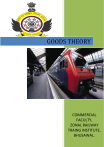 GOODS THEORY COMMERCIAL FACULTY, ZONAL RAILWAY TRAING INSTITUTE, BHUSAWAL. माऱ सिधदाांत क्षेत्रीय रे ऱ प्रसिक्षण िांस्थान,भुिावऱ. DISCLAIMER This reading material has been prepared by simplifying the language of tariff, manual and code of Commercial Department on August 15, 2017 for the guidance of trainees undergoing training in this institute. Hence it should not be looked as substitute of Tariffs, Manuals and Codes on Commercial subjects. In case of any doubt; it is advised to refer concerned code, manuals and rulebooks. Sd/Principal Zonal Railway Training Institute, Bhusawal. Central Railway 4 माऱ सिधदाांत क्षेत्रीय रे ऱ प्रसिक्षण िांस्थान,भुिावऱ. INDEX Chapter Description Chapter– 1 DEFINATIONS. Page No. 10-15 Siding Bans Restrictions Busy Season Lean Season Surcharges Chapter 2 16-37 Booking of Goods Forwarding Note Wagon Registration Fees – WRF e-RD:-Electronically registration for demand of wagon. Money Receipt (MR) Preferential Traffic Order (PTO) Change in registered Indents ,Supply of Wagons Allotment of Wagons Acceptance and Examination of Goods Misdecleartion of Goods Packing, Labeling and Marking (PLM) Weighment of Goods Sender’s Weight Accepted (SWA Weighment on weighing machine enroute Electronic In -motion-way-bridge Routing of Goods Traffic :Rating of Goods traffic Unclassified Goods Rates of Wagon Registration Fee : Train Load Consignment, General Rules Issue of Invoice Number in Goods Traffic 5 माऱ सिधदाांत क्षेत्रीय रे ऱ प्रसिक्षण िांस्थान,भुिावऱ. Chapter Description Page No. Chapter– 3 Booking of various types of Goods. 38-48 Booking of Live Stock Contraband goods and intoxicating goods Contraband goods Booking of Dangerous and Explosive Goods Offensive Goods Booking of Railway Material consignment (RMC) Military Traffic :Chapter– 4 49-54 Loading of Goods Loading precautions gviviiviR , Sealing, Locking Chapter– 5 55-58 Unloading of goods Damages and deficiency post card ( PPDD ) Damage and deficiency Message (DD Message) Chapter– 6 DELIVERY OF GOODS 59-67 Delivery book Partial Delivery Open Delivery and Assessment Delivery Open Delivery Assessment Delivery Memo Delivery Value Payable System - VPS Chapter– 7 68-69 Demurrage Charges: General Rules Single line Single Placement Single line Multiple Placement Multiple line Single Placement-: Chapter– 8 70-72 Wharfage Charges General Rules. Station groups Free time Wharfage rate 6 माऱ सिधदाांत Chapter Description Chapter– 9 Crane Charges क्षेत्रीय रे ऱ प्रसिक्षण िांस्थान,भुिावऱ. Page No. 73-74 Crane Haulage Charges Chapter–10 Excess Unconnected and unclaimed Goods, Public 75-79 Auction Punitive Charge for loading excess goods: Unconnected Goods Reasons for Goods being Unconnected Disposal of Unconnected Goods:Parcel Consignment Unclaimed Goods. Public Auction Chapter–11 80-83 MISCELLANCEOUS Weekly Inventory Modes of payment Weight only System. Examination of documents and orders for depositing of security amount. Bill of Weight only system Credit Note cum Cheque (CNCC ) E-Payment- Chapter–12 Responsibility of Railways as Common Carrier and 84-86 Bailee. Section 93 to 106 Chapter–13 Claims and Claims Prevention Claims preventive measures Departments involved in elimination of claims and their role Monetary Powers for settlement of claims. Procedure for settlement of minor claims. Settlement report of minor claims Not Received Cell (NR Cell) Dis-report ,Railway Claims Tribunal (RCT). Railway Rates Tribunal (RRT) 7 87-94 माऱ सिधदाांत क्षेत्रीय रे ऱ प्रसिक्षण िांस्थान,भुिावऱ. Chapter Description Chapter–14 Marketing and Sales Organization Page No. 95-134 Steps taken in the field of Marketing. Freight Marketing Schemes Liberalized Automatic Freight rebate scheme Incentive Scheme for Freight Forwarders Incentive Scheme for Loading Bagged Consignments in Open and Flat wagons Transportation Product Engine On Load Scheme (EOL) Freight Operation Information System (FOIS) Rake Management System (RMS) Terminal Management System (TMS Public Private Partnership (PPP) Private Freight Terminal Rail Side warehousing Scheme Terminal Development Scheme (TDS) Special Freight Train Operation Scheme(SFTO) Automobile Freight Train Operation Scheme(AFTO) Policy on Development of Automobile and Ancillary hub Booking of Automobile Traffic carried in NMG, BCACM & BCCNR WAGONS: Dedicated Freight Corridor Liberalized Wagons Investment Scheme (LWIS) wagon Leasing Scheme (WLS) Merry -Go-Round System: MGR Roll on Roll Of Scheme: RORO Container Service Container Corporation of India Limited (CONCOR) Container Rail Terminal (CRT) Policy on private siding Parcel Management System Comprehensive Parcel leasing Policy Passenger Profile Management System 8 माऱ सिधदाांत Chapter Description Chapter-15 Traffic Accounts क्षेत्रीय रे ऱ प्रसिक्षण िांस्थान,भुिावऱ. Page No. 135-143 Goods Traffic Goods Cash Book Goods Delivery Book Machine prepared Abstract Station outstanding & Its clearances Under charges and Over charges Goods balance sheet Goods Returns 9 माऱ सिधदाांत क्षेत्रीय रे ऱ प्रसिक्षण िांस्थान,भुिावऱ. CHAPTER 1:- DEFINATIONS. ___________________________________________________________________________________________________________________________________ Rail Traffic –The traffic transported by railways (trains) is known as Rail Traffic. It includes Goods Traffic and Coaching Traffic. Goods T