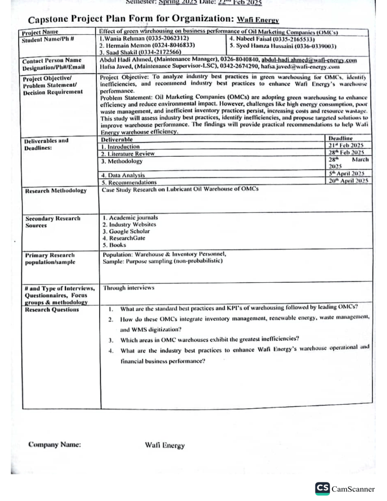 Green Warehousing Project Plan: Wafi Energy & OMCs Performance