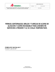 PEMEX-EST-0027/02-2017 Revisión: 0 Grupo para la Emisión de Estándares Técnicos de los Bienes y Servicios que contraten Petróleos Mexicanos y sus Empresas Productivas Subsidiarias Fecha: julio 2017 Hoja 1 de 18 PERNOS, ESPÁRRAGOS, BIRLOS Y TUERCAS DE ACERO DE ALEACIÓN Y ACERO INOXIDABLE PARA UNIONES EN SERVICIOS A PRESIÓN Y ALTA O BAJA TEMPERATURA PEMEX-EST-0027/02-2017 Revisión 0, julio de 2017 Petróleos Mexicanos Todos los Derechos Reservados PEMEX-EST-0027/02-2017 PERNOS, ESPÁRRAGOS, BIRLOS Y TUERCAS DE ACERO DE ALEACIÓN Y ACERO INOXIDABLE PARA UNIONES EN SERVICIOS A PRESIÓN Y ALTA O BAJA TEMPERATURA Hoja 2 de 18 CONTENIDO CAPÍTULO PÁGINA Prólogo 1 Objetivo 3 4 2 Alcance y campo de aplicación 4 3 Vigencia, actualización y resguardo 4 4 Referencias 4 5 Definiciones 8 6 Símbolos, abreviaturas y acrónimos 8 7 Desarrollo 9 8 Anexo A Requisitos documentales Hoja de Datos / Hoja de Especificación o Especificación de los Servicios 13 Anexo B Bibliografía 18 Petróleos Mexicanos Todos los derechos reservados Dirección Corporativa de Administración y Servicios Dirección Operativa de Procura y Abastecimiento Avenida Marina Nacional #329, Torre Ejecutiva Piso 36 Col. Verónica Anzures, Del. Miguel Hidalgo, C.P. 11300, Ciudad de México. 14 Prohibida su reproducción parcial o total sin la autorización por escrito de Petróleos Mexicanos a través de las áreas correspondientes PEMEX-EST-0027/02-2017 PERNOS, ESPÁRRAGOS, BIRLOS Y TUERCAS DE ACERO DE ALEACIÓN Y ACERO INOXIDABLE PARA UNIONES EN SERVICIOS A PRESIÓN Y ALTA O BAJA TEMPERATURA Hoja 3 de 18 Prólogo En las instalaciones industriales de Petróleos Mexicanos y sus Empresas Productivas Subsidiarias, se cuenta con recipientes a presión, recipientes atmosféricos, equipos dinámicos, sistemas de tuberías, sistemas de transporte por ductos, para servicios a presión de alta o baja temperatura que contienen juntas, que requieren para su unión el uso de pernos, espárragos, birlos y tuercas (tornillería). Por lo anterior y tomando en cuenta que estas instalaciones son consideradas de alto riesgo en virtud de los productos que manejan, es necesario definir los requerimientos técnicos que deben cumplir los diferentes tipos de pernos, espárragos, birlos y tuercas de acero aleado, acero templados y revenidos, y aceros inoxidables, así como el tipo de recubrimientos resistentes a la corrosión cuando se requieran, que se utilicen en las instalaciones industriales de Petróleos Mexicanos, Empresas Productivas Subsidiarias y, en su caso, Empresas Filiales. El presente Estándar Técnico, fue desarrollado con base en lo dispuesto en las Normas Oficiales Mexicanas, Normas Mexicanas, Normas Internacionales y Prácticas Internacionales o Extranjeras, en materia vigentes en la fecha de su emisión. Este Estándar Técnico es de propiedad exclusiva de Petróleos Mexicanos y Empresas Productivas Subsidiarias, para uso interno en los procedimientos de contratación. Su reproducción para uso externo o divulgación, debe ser autorizada previamente por la Gerencia de Alianzas Contractuales y Estándares Técnicos de la Coordinación de Desarrollo y Relación con Proveedores y Contratistas adscrita a la Dirección Operativa de Procura y Abastecimiento. Este EST se realizó teniendo como sustento: Ley de Petróleos Mexicanos y su Reglamento. Estatuto Orgánico de Petróleos Mexicanos. Disposiciones Generales de Contratación para Petróleos Mexicanos y sus Empresas Productivas Subsidiarias. En la elaboración del presente Estándar Técnico, participó personal, de las siguientes áreas de Petróleos Mexicanos, sus Empresas Productivas subsidiarias: Dirección Corporativa de Planeación, Coordinación y Desempeño Dirección Corporativa de Tecnologías de Información Dirección Operativa de Procura y Abastecimiento Pemex Cogeneración y Servicios Pemex Etileno Pemex Exploración y Producción Pemex Fertilizantes Pemex Logística Pemex Perforación y Servicios Pemex Transformación Industrial Petróleos Mexicanos Todos los derechos reservados Dirección Corporativa de Administración y Servicios Dirección Operativa de Procura y Abastecimiento Avenida Marina Nacional #329, Torre Ejecutiva Piso 36 Col. Verónica Anzures, Del. Miguel Hidalgo, C.P. 11300, Ciudad de México. Prohibida su reproducción parcial o total sin la autorización por escrito de Petróleos Mexicanos a través de las áreas correspondientes PEMEX-EST-0027/02-2017 PERNOS, ESPÁRRAGOS, BIRLOS Y TUERCAS DE ACERO DE ALEACIÓN Y ACERO INOXIDABLE PARA UNIONES EN SERVICIOS A PRESIÓN Y ALTA O BAJA TEMPERATURA 1 Hoja 4 de 18 Objetivo Establecer los requisitos técnicos y documentales que deben cumplir los pernos, espárragos, birlos y tuercas (tornillería) para uniones bridadas en servicio de presión y alta o baja temperatura, de las instalaciones de Petróleos Mexicanos, y sus Empresas Productivas Subsidiarias. 2 Alcance y campo de aplicación 2.1 El presente Estándar Técnico, establece los requisitos que debe cumplir la tornillería (pernos, espárragos, birlos y tuercas) de aceros aleados, aceros templados y revenidos, y aceros inoxidables, para uniones de bridas, recipientes a presión, válvulas y componentes, en servicio de presión y/o alta o baja temperatura, que se adquieran en Petróleos Mexicanos y su Empresas Productivas Subsidiarias. 2.2 El presente Estándar Técnico, también establece los requisitos de marcado y empaque, métodos de prueba, inspección; así como documentales y hojas de especificaciones para la Conformidad de la tornillería alcance de este documento. 2.3 El presente Estándar Técnico es de aplicación general y de observancia obligatoria en los procedimientos de contratación, y en la formalización de los diferentes tipos de contratos; establecidos en los artículos 9, 10 y 11 de las “Disposiciones Generales de Contratación para Petróleos Mexicanos y sus Empresas Productivas Subsidiarias”, que realice Petróleos Mexicanos