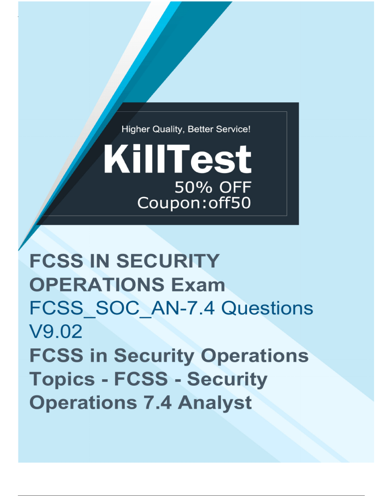 FCSS IN SECURITY OPERATIONS Exam FCSS_SOC_AN-7.4 Questions V9.02 FCSS in Security Operations Topics - FCSS - Security Operations 7.4 Analyst 1.Which connector on FortiAnalyzer is responsible for looking up indicators to get threat intelligence? A. The FortiGuard connector B. The FortiOS connector C. The FortiClient EMS connector D. The local connector Answer: A C _A N -7 .4 E xa m w it h K ill te st 2.In the context of SOC operations, mapping adversary behaviors to MITRE ATT&CK techniques primarily helps in: A. Speeding up system recovery B. Predicting future attacks C. Understanding the attack lifecycle D. Facilitating regulatory compliance Answer: C Q ue s ti on s -P re p ar e fo r th e Fo rt in et FC S S _S O 3.You are managing 10 FortiAnalyzer devices in a FortiAnalyzer Fabric. In this scenario, what is a benefit of configuring a Fabric group? A. You can apply separate data storage policies per group. B. You can aggregate and compress logging data for the devices in the group. C. You can filter log search results based on the group. D. You can configure separate logging rates per group. Answer: C FC S S _S O C _A N -7 .4 E xa m 4.In managing events and incidents, which factors should a SOC analyst focus on to improve response times? (Choose Three) A. Speed of alert generation B. Accuracy of event correlation C. Time spent in meetings D. Clarity of communication channels E. Efficiency of data entry processes Answer: ABD 5.When designing a FortiAnalyzer Fabric deployment, what is a critical consideration for ensuring high availability? A. Configuring single sign-on B. Designing redundant network paths C. Regular firmware updates D. Implementing a minimalistic user interface Answer: B te st 6.What should be prioritized when analyzing threat hunting information feeds? (Choose Two) A. Accuracy of the information B. Frequency of advertisement insertion C. Relevance to current security landscape D. Entertainment value of the content Answer: AC th e Fo rt in et FC S S _S O C _A N -7 .4 E xa m w it h K ill 7.Why is it crucial to configure playbook triggers based on accurate threat intelligence? A. To ensure SOC parties are well-attended B. To prevent the triggering of irrelevant or false positive actions C. To increase the number of digital advertisements D. To facilitate easier management of office supplies Answer: B FC S S _S O C _A N -7 .4 E xa m Q ue s ti on s -P re p ar e fo r 8.Which two assets are available with the outbreak alert licensed feature on FortiAnalyzer? (Choose two.) A. Custom event handlers from FortiGuard B. Outbreak-specific custom playbooks C. Custom connectors from FortiGuard D. Custom outbreak reports Answer: AD 9.Which trigger type requires manual input to run a playbook? A. INCIDENT_TRIGGER B. ON_DEMAND C. EVENT_TRIGGER D. ON_SCHEDULE Answer: B 10.When configuring playbook triggers, what factor is essential to optimize the efficiency of automated responses? A. The color scheme of the playbook interface B. The timing and conditions under which the playbook is triggered C. The number of pages in the playbook D. The geographical location of the SOC Answer: B Q ue s ti on s -P re p ar e fo r th e Fo rt in et FC S S _S O C _A N -7 .4 E xa m w it h K ill te st 11.Refer to the exhibits. FC S S _S O C _A N -7 .4 E xa m The Quarantine Endpoint by EMS playbook execution failed. What can you conclude from reviewing the playbook tasks and raw logs? A. The playbook executed in an ADOM where the incident does not exist. B. The admin user does not have the necessary rights to update incidents. C. The local connector is incorrectly configured, which is causing JSON API errors. D. The endpoint is quarantined, but the action status is not attached to the incident. Answer: D 12.A key benefit of mapping adversary behaviors to MITRE ATT&CK tactics in SOC operations is: A. Decreasing the dependency on external consultants B. Enhancing preventive security measures C. Streamlining software development processes D. Improving public relations Answer: B 13.In designing a stable FortiAnalyzer deployment, what factor is most critical? A. The physical location of the servers B. The version of the client software C. The scalability of storage and processing resources D. The color scheme of the user interface Answer: C FC S S _S O C _A N -7 .4 E xa m w it h K ill te st 14.In the context of SOC automation, how does effective management of connectors influence incident management? A. It decreases the effectiveness of communication channels B. It simplifies the process of handling incidents by automating data exchanges C. It increases the need for paper-based reporting D. It reduces the importance of cybersecurity training Answer: B .4 E xa m Q ue s ti on s -P re p ar e fo r th e Fo rt in et 15.How do effectively managed connectors impact the overall security posture of a SOC? A. By reducing the need for physical security measures B. By increasing the workload of SOC analysts C. By enhancing the integration of diverse security tools and platforms D. By complicating the incident response process Answer: C FC S S _S O C _A N -7 16.Which configuration would enhance the efficiency of a FortiAnalyzer deployment in terms of data throughput? A. Lowering the security settings B. Reducing the number of backup locations C. Increasing the number of collectors D. Decreasing the report generation frequency Answer: C 17.How does regular monitoring of playbook performance benefit SOC operations? A. It enhances the social media presence of the SOC B. It ensures playbooks adapt to evolving threat landscapes C. It reduces the necessity for cybersecurity insurance D. It increases the workload on human resources Answer: B te st 18.You are tasked with configuring automation to quarantine infected endpoints. Which two Fortinet SOC components can work together to fulfill this task? (Choose two.) A. FortiAnalyzer B. FortiClient EMS C. FortiMail D. FortiSandbox Answer: AB th e Fo rt in et FC S S _S O C _A N -7 .4 E xa m w it
