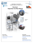 Light Railway Transit (LRT) National Authority for Tunnels (NAT) Electrical Inspection Test Plan Manual Power Transformers Protection Relays L.R.T Prepared By: Usama Ali Taha Testing and Comissioning Engineer CREC-AVIC INTL. Revised By: Mahmoud Abd ELShafy Senior Power Supply Engineer Khatib&Alami Mariam Adel Senior Power Supply Engineer National Authority for Tunnels Inspection Test Plan ITP Guidebook Safety Precautions: (1) Safety tagging shall be implemented (2) Isolate the area by safety warning tape (3) Keep a safe distance from the device being tested (4) Wear appropriate personal protective equipment prior to starting any testing activity (5) Implementation proper grounding. Introduction We provide a guidebook for the owner to supervise and follow up Testing and Commissioning for all the power supply equipment’s in LRT project. Why Testing and Commissioning? - To assure all tested equipment or system supplied by contractor within applicable standards and manufacturer’s tolerance. - To assure that the systems are installed accordance with design specification: • Shipping and installation damage. • Field and factory wiring errors. • Manufacturing defects and system. • Components not accordance with drawing and specification. • And some of the problem can be detected during testing only. - When these defects found before start-up, they can be corrected under warranty without safety hazard. - Consequential damage of loss / production that can be occur if discovered after start-up or energizing. Page | 2 Inspection Test Plan ITP Guidebook Safety Precautions: (1) Safety tagging shall be implemented (2) Isolate the area by safety warning tape (3) Keep a safe distance from the device being tested (4) Wear appropriate personal protective equipment prior to starting any testing activity (5) Implementation proper grounding. References • • • • • Page | 3 ASNI: American national standards institute IEEE: Institute for electrical and electronic engineers IE: International electro technical committee. CSD Commissioning Manual Madkour & El-Fanar Testing Team Inspection Test Plan ITP Guidebook Safety Precautions: (1) Safety tagging shall be implemented (2) Isolate the area by safety warning tape (3) Keep a safe distance from the device being tested (4) Wear appropriate personal protective equipment prior to starting any testing activity (5) Implementation proper grounding. Content Table of Contents Introduction: ...........................................................................................................................................2 References: ..............................................................................................................................................3 GIS and Switchgears............................................................................ 11 GIS HV CB Tests ..................................................................................................................... 11 Mechanical Check and Visual Inspection: ..................................................................................... 13 Spring Charging Motor: ................................................................................................................. 14 Coil Resistance Test: ....................................................................................................................... 14 Timing Test: .................................................................................................................................... 15 SWGR MV CB Tests................................................................................................................ 17 Mechanical Check and Visual Inspection: ..................................................................................... 19 Insulation Resistance Test: ............................................................................................................. 20 Spring Charging Motor: ................................................................................................................. 21 Coil Resistance Test: ....................................................................................................................... 21 Contact Resistance Test: ................................................................................................................. 22 Timing Test: .................................................................................................................................... 23 GIS HV DS Procedure Tests .................................................................................................... 25 Mechanical Check and Visual Inspection: ..................................................................................... 27 Timing Test: .................................................................................................................................... 27 SWGR MV DS Procedure Tests ........................................................................................................... 29 Mechanical Check and Visual Inspection: ..................................................................................... 31 Timing Test: .................................................................................................................................... 31 Contact Resistance Test: ................................................................................................................. 33 GIS BB Contact Resistance Procedure Tests .......................................................................... 34 Mechanical Check and Visual Inspection: ..................................................................................... 36 Contact Resistance Test: ................................................................................................................. 36 SWGR BB Contact Resistance Procedure Tests ........................................................
