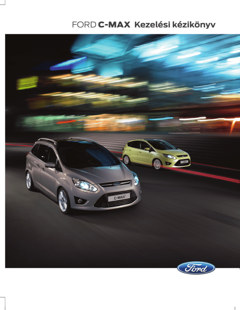 FORD C-MAX Kezelési kézikönyv Tartalomjegyzék A riasztóberendezés aktiválása................46 A riasztóberendezés deaktiválása...........46 Bevezetés A kézikönyvről ....................................................7 Jelek jegyzéke......................................................7 Cserealkatrészekre vonatkozó ajánlás..............................................................8 Kormánykerék A kormánykerék beállítása.........................48 Audiovezérlés..................................................48 Beszédvezérlés...............................................49 Első pillantásra Első pillantásra .................................................9 Ablaktörlők és -mosók Gyermekbiztonság Szélvédőtörlők................................................50 Automata ablaktörlés..................................50 Szélvédő-mosóberendezés........................51 Hátsóablak-ablaktörlő és -mosóberendezés.......................................51 Fényszóró-mosóberendezés.....................52 Az ablaktörlőlapátok ellenőrzése.............52 Az ablaktörlőlapátok cseréje.....................52 Műszaki specifikációk...................................54 Gyermekülések................................................18 Ülésmagasítók ................................................19 A gyermekülés elhelyezése........................20 ISOFIX rögzítési pontok................................23 Gyermek-biztonsági zárak..........................24 Utasvédelem Működési elv....................................................26 A biztonsági övek becsatolása..................28 Biztonságiöv-magasságállítás..................32 Biztonságiöv-figyelmeztető.......................32 A biztonsági övek használata terhesség esetén.............................................................33 A jobb oldali első légzsák deaktiválása.................................................33 Világítás Működési elv....................................................44 Kódolt kulcsok.................................................44 A motor-indításgátló élesítése.................44 A motor-indításgátló hatástalanítása..........................................44 Világítás-vezérlés...........................................55 Automata lámpák.........................................56 Automatikus távolsági fényszóró vezérlés..........................................................56 Első ködlámpák..............................................58 Hátsó ködlámpák..........................................58 A fényszórók beállítása - Gépkocsik a következő felszerelésekkel: Adaptív első világítás/Xenon fényszórók..........58 Vetítésitávolság-szabályozás...................59 Vészvillogók.....................................................59 Irányjelzők.........................................................60 Kanyarodás-fényszórók..............................60 Belső lámpák....................................................61 Fényszóró kiszerelése...................................62 Izzólámpacsere...............................................63 Izzólámpa-táblázat.......................................70 Riasztóberendezés Ablakok és tükrök Működési elv....................................................45 Elektromos működtetésű ablakok...........72 Zárak Zárás és nyitás.................................................35 Kulcsnélküli zárrendszer..............................39 Teljesnyitás és -zárás rendszer.................42 Motorindításgátló 1 C-MAX (CB7) Tartalomjegyzék Külső visszapillantó tükrök.........................73 Elektromos külső visszapillantó tükrök..............................................................73 Automatikusan besötétedő tükör............74 Holttérfigyelő információs rendszer........75 Mérőműszerek.................................................78 Figyelmeztető lámpák és jelzők...............80 Hangfigyelmeztetők és -jelzők.................82 Kiegészítő elektromos csatlakozóaljzatok ..................................129 Italtartók..........................................................130 Csomagterek..................................................130 Palacktartó.....................................................130 Kiegészítő bemeneti csatlakozóaljzat.........................................131 USB-csatlakozó..............................................131 Navigációs egység tartó.............................132 Padlószőnyegek............................................132 Információkijelzők A motor indítása és leállítása Kombinált műszer Általános tudnivalók.....................................85 Fedélzeti számítógép....................................91 Személyes beállítások..................................91 Információ-üzenetek....................................92 Működési elv..................................................105 Szellőzőfúvókák............................................105 Manuális klímaszabályozás.....................106 Automata klímaszabályozás...................108 Fűtött ablakok és tükrök.............................110 Kiegészítő fűtő.................................................111 Általános tudnivalók...................................133 Gyújtáskapcsoló............................................133 Kormánykerékzár..........................................133 Kormánykerékzár - Gépkocsik a következő felszerelésekkel: Nyomógombos indítás...........................134 Benzinmotor beindítása............................134 Dízelmotor beindítása................................135 Kulcsnélküli indítás......................................135 Dízel részecskeszűrő....................................13