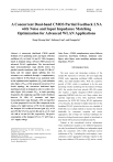 JOURNAL OF SEMICONDUCTOR TECHNOLOGY AND SCIENCE, VOL. 21, NO. 5, OCTOBER, 2021 https://doi.org/10.5573/JSTS.2021.21.5.356 ISSN(Print) 1598-1657 ISSN(Online) 2233-4866 A Concurrent Dual-band CMOS Partial Feedback LNA with Noise and Input Impedance Matching Optimization for Advanced WLAN Applications Dong-Myeong Kim1, Euibong Yang2, and Donggu Im1 Abstract—A concurrent dual-band CMOS partial feedback LNA optimizing noise and input reflection coefficient (S11) at both 2.4 and 5.2 GHz frequency bands is designed using a 65-nm CMOS process for advanced WLAN applications. The inverter-based input transconductance stage directly drives two parallel cascode transistors with 2.4 and 5.2 GHz LC loads, and the output signals splitting into two resonators are combined through a complementary source follower (CSF). Based on an analytical study on the optimum noise impedance (Zopt) and minimum noise figure (NFmin) of the proposed concurrent LNA circuit topology, the concurrent dual-band input matching network is designed in order to achieve low noise figure (NF) around NFmin at both operating frequencies. By employing a partial resistive feedback between 2.4 GHz LC resonator and input transconductance stage through a CSF, an imperfect S11 of the proposed LNA at 2.4 GHz is improved at the expense of a slight increase of NF. In the simulation, the designed LNA achieved forward gain (S21) of 14 and 15.5 dB, NF of 1.6 and 2.2 dB, and S11 of -11.2 and -10.3 dB at 2.4 and 5.2 GHz, respectively. The power consumption of the designed LNA is 7.7 mW from a 1.2 V supply voltage. Manuscript received Aug. 23, 2021; reviewed Sep. 3, 2021; accepted Sep. 8, 2021 1 Division of Electronic Engineering, Jeonbuk National University, Jollabuk-do 561-756, Korea. 2 Samsung Electronics System LSI, 1-1, Samsungjeonja-ro, Hwaseong-si, Gyeonggi-do 474-1, Korea. E-mail : dgim@jbnu.ac.kr Index Terms—CMOS, complementary source follower, concurrent, dual-band, feedback, minimum noise figure, noise figure, noise matching, optimum noise impedance, WLAN I. INTRODUCTION The most recent and interesting evolution of the modern RF transceiver is toward a low-cost single-chip CMOS radio supporting multiband (MB), multimode (MM), and multi-standard (MS). With the explosive growth of WiFi, which is considered to be the most promising wireless technology for the Internet of Things (IoT), the wireless local area network (WLAN) system also requires a highly integrated CMOS transceiver supporting MB/MM with low cost. Many studies have reported single-chip 2.4/5.2 GHz dual-band CMOS transceivers for IEEE 802.11a/b/g WLAN applications [1-3]. Recently, the demand for higher data-rates for the broadband WLAN system has driven a new standard of IEEE 802.11ax to adopt methods to increase the channel bandwidth by concurrent reception and carrier aggregation, and it brings new technical challenges for transceiver design because more signals in intra-bands or inter-bands will be processed simultaneously [4]. Contrast to the conventional receiver architectures where simultaneous reception at two different frequencies can only be performed by building two independent signal paths, the concurrent 2.4/5.2 GHz dual-band receiver architecture of Fig. 1 including this work employs a noncontinuous carrier aggregation technique reported in the long term evolution (LTE) receiver of [5], and as a result, JOURNAL OF SEMICONDUCTOR TECHNOLOGY AND SCIENCE, VOL. 21, NO. 5, OCTOBER, 2021 2.4GHz / 5.2GHz I/Q Mixer IF Filter Image Rejection Mixer LPF VGA I CH#1 1 1 2 2.4G 5.2G I Q fLO1 fLO2 I Q Q I CH#2 Concurrent Dual-Band LNA 2 Q Fig. 1. An architecture for concurrent 2.4/5.2 GHz dual-band receiver employing non-continuous carrier aggregation technique reported in the long term evolution (LTE) receiver of [5]. enables simultaneous operation at two different frequencies without dissipating twice as much power or a significant increase in hardware complexity. However, because the double quadrature image rejection mixer stage for the carrier aggregation causes a higher noise floor in comparison with the conventional low-IF/zero-IF receiver, a low noise LNA with sufficiently high gain at two frequency bands is required for high sensitivity performance. In addition, it is better to provide a good outof-band (OOB) rejection characteristic in order to handle strong interferes. In this paper, a concurrent dual-band CMOS partial feedback LNA is designed for advanced WLAN applications supporting concurrent reception and carrier aggregation. This is the first suggestion of concurrent dual-band LNA optimizing noise and input reflection coefficient (S11) at both 2.4 and 5.2 GHz frequency bands through an input noise matching network and a partial feedback. Section II describes a circuit design of the proposed concurrent dual-band LNA, including an analytical study on its optimum noise impedance (Zopt), minimum noise figure (NFmin), and concurrent input noise matching network. In addition, a partial feedbackbased noise and S11 optimization technique at both 2.4 and 5.2 GHz frequency bands is presented. Section III reports the simulation results of the proposed LNA, followed by the conclusion in Section IV. II. DESIGN OF 2.4/5.2 GHZ CONCURRENT DUAL-BAND LNA There are several LNA design approaches for concurrent reception and carrier aggregation applications, including parallel, concurrent, or wideband LNAs. Parallel LNAs are implemented by placing several 357 individual narrowband LNAs for each band. The out-ofband attenuation characteristic from the input matching network relaxes the linearity burden of the RF front-end, but the complexity and occupied silicon area grow rapidly as the number of frequency bands increases. For the wideband LNA, many standards are supported in a wide frequency range with low complexity and small silicon area. However, its noise performance is much poorer than that in parallel LNAs and the higher linearity is required due to no OOB rejection characteri