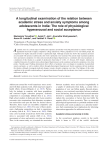 International Journal of Psychology, 2022 Vol. 57, No. 3, 401–410, DOI: 10.1002/ijop.12825 A longitudinal examination of the relation between academic stress and anxiety symptoms among adolescents in India: The role of physiological hyperarousal and social acceptance Mackenzie Trevethan1 , Anjali T. Jain1 , Anuradha Shatiyaseelan2 , Aaron M. Luebbe1 , and Vaishali V. Raval1 1 Department of Psychology, Miami University, Oxford, Ohio, USA 2 Christ University, Bengaluru, Karnataka, India A cademic stress is a critical aspect of adolescent experience around the world, but particularly in countries with dense populations that lead to highly competitive college admissions. With a population of over one billion people, the competition for higher education in India is significantly high. Although research has shown that academic pressures are associated with anxiety in adolescents, this work is primarily cross-sectional. The current study examined academic stress and anxiety symptoms over time and assessed physiological hyperarousal as a mediator and social acceptance as a moderator of this relation in a sample of adolescents from India (N = 282, 13–18 years, 84% female). Adolescents completed measures of academic stress, physiological hyperarousal, social acceptance and anxiety symptoms at two-time points, 5 months apart. Findings demonstrate direct effects of academic stress on changes in symptoms of generalised anxiety and panic, as well as indirect effects through physiological hyperarousal. Social acceptance did not moderate the relation, although it uniquely predicted changes in panic disorder symptoms over time. The findings of this study contribute to the scientific understanding of a potential mechanism through which academic stress leads to anxiety among adolescents in India. Keywords: Academic stress; Anxiety; Physiological hyperarousal; Social acceptance. Adolescents around the world experience stress associated with their academic work, which may have negative health effects (Casuso-Holgado et al., 2019). Particularly for students in countries with dense populations and restricted higher education prospects, academic competition is exceedingly difficult (Sun et al., 2012). High school students in India and other Asian countries encounter state examinations that determine acceptance into universities and open the door for desired careers. Therefore, these exams are incredibly competitive and stressful (Verma et al., 2002). For some of these adolescents, challenging competition can lead to experiences of anxiety (Sun et al., 2012; Verma et al., 2002). While some cross-sectional research has shown that academic stress is associated with anxiety (Deb et al., 2014), assessments of stress and anxiety over time are limited. Thus, in the current study, we examined the association between academic stress and anxiety longitudinally in a sample of adolescents from India, a country with a population of over one billion people. Beyond demonstrating a cross-sectional association between academic stress and anxiety, there has been little research attention devoted to examining potential mechanisms that may explain this association or factors that may buffer the negative effects of stress on anxiety. Thus, we examined physiological hyperarousal as a potential mediator of this association, and social acceptance as a potential moderator. Such examinations have implications for informing intervention approaches for adolescent anxiety. Academic stress and anxiety in India As the second-most populous country in the world, India is home to 22% of the world’s adolescent Correspondence should be addressed to Mackenzie Trevethan, Department of Psychology, Miami University, 90 N Patterson Avenue, Oxford, OH 45056, USA. (E-mail: trevetma@miamioh.edu) Mackenzie Trevethan contributed to conception, analysis, drafting the article, revising; Anjali T. Jain contributed to analysis, drafting the article, revising; Anuradha Shatiyaseelan contributed to design, collection; Aaron M. Luebbe contributed to drafting the article, revising; Vaishali V. Raval contributed to conception, drafting the article, revising. © 2021 International Union of Psychological Science. 402 TREVETHAN ET AL. population. Adolescents in India experience highly competitive state-wide exams that determine their access to higher education (Verma et al., 2002). Academic success is important because it determines future occupational success and upward social and economic mobility. Thus, it is common for students from urban, middle-class families in India to attend after-school tutoring sessions to be more academically competitive. These high academic demands and pressures to succeed can be experienced as stressful for some adolescents. According to Lazarus and Folkman (1984), stress is experienced when external demands are appraised as exceeding beyond the individual’s capabilities. Given the salience of academic success for adolescents in India, stress experienced in academic situations is likely to have health consequences, including implications for mental health (Deb et al., 2014). In particular, anxiety may be relevant to examine given its prevalence and associations with academic stress. Anxiety is the second most common mental health condition (after depression) worldwide with current global prevalence estimates of 5–10% (Baxter et al., 2013). In India, anxiety symptoms have been found to be just as prevalent, if not more (e.g., 20% as per Deb et al., 2010), and anxiety symptoms are more common among adolescents compared to children (Deb et al., 2010). As children get older, academic demands increase, which may contribute to greater stress related to those demands, making them more prone to developing anxiety (Verma et al., 2002). Academic stress has been associated with anxiety and depression in samples from around the world (e.g., see American Psychological Association, 2018, USA; Deb et al., 2014, India; Casuso-Holgado et al., 2