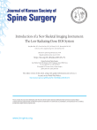 Journal of Korean Society of Spine Surgery Introduction of a New Skeletal Imaging Instrument: The Low Radiating-Dose EOS System Sang Bum Kim, M.D., Youn Moo Heo, M.D., Jin Woong Yi, M.D., Byoung Hak Oh, M.D., Gi Soo Lee, M.D., Sang Jin Jeong, M.D., Tae Gyun Kim, M.D. J Korean Soc Spine Surg 2018 Jun;25(2):74-80. Originally published online June 30, 2018; https://doi.org/10.4184/jkss.2018.25.2.74 Korean Society of Spine Surgery Asan Medical Center 88, Olympic-ro 43 Gil, Songpa-gu, Seoul, 05505, Korea Tel: +82-2-483-3413 Fax: +82-2-483-3414 ©Copyright 2017 Korean Society of Spine Surgery pISSN 2093-4378 eISSN 2093-4386 The online version of this article, along with updated information and services, is located on the World Wide Web at: http://www.krspine.org/DOIx.php?id=10.4184/jkss.2018.25.2.74 This is an Open Access article distributed under the terms of the Creative Commons Attribution Non-Commercial License (http:// creativecommons.org/licenses/by-nc/4.0) which permits unrestricted non-commercial use, distribution, and reproduction in any medium, provided the original work is properly cited. www.krspine.org Review Article J Korean Soc Spine Surg. 2018 Jun;25(2):74-80. https://doi.org/10.4184/jkss.2018.25.2.74 Introduction of a New Skeletal Imaging Instrument: The Low Radiating-Dose EOS System Sang Bum Kim, M.D., Youn Moo Heo, M.D., Jin Woong Yi, M.D., Byoung Hak Oh, M.D., Gi Soo Lee, M.D., Sang Jin Jeong, M.D., Tae Gyun Kim, M.D. Department of Orthopedic Surgery, Konyang University College of Medicine, Daejeon, Korea Study Design: Literature review. Objective: The aim of this article is to introduce the EOS imaging device, with a focus on spinal and pelvic alignment. Summary of Literature Review: The EOS imaging device can obtain images of spinal and pelvic alignment with almost no distortion, using a low radiation dose. Materials and Methods: We searched for studies related to the use of EOS imaging device for spinal and pelvic alignment. Results: The EOS is not only capable of simultaneously obtaining paired anteroposterior and lateral X-ray images with a low radiation dose, but also can reconstruct the image as if it was acquired in the patient’s reference plane, limiting the distortion to the patient’s thickness instead of the whole distance between the source and detector. The EOS device also has the advantage of accurately measuring the sagittal alignment of the spine and pelvis and the torsional deformity of the lower limbs, as the subject can be imaged while standing upright in a weight-bearing posture. Conclusions: EOS is a new diagnostic technique that can detect spinal and pelvic alignment and deformities of the lower limbs under weight-bearing conditions with a low radiation dose. Key words: Spine, Pelvis, Lower limb, Diagnostic technology, Radiation device 는 환자가 촬영시 움직이지 않도록 머리 고정 장치 및 안전 바 서론 가 설치되어 있다(Fig. 2). EOS 장치 옆에는 엑스레이 보호가 되 EOS 영상 장치는 척추, 골반 및 하지 골격의 정렬을 체중 부 는 별도 workstation이 있어서 촬영된 영상은 EOS 소프트웨어 하한 상태에서 촬영하는 영상 검사로 국내에서는 본원에 처음 (software)를 이용해서 길이 및 각도를 잴 수 있고 3D image를 도입되었기에 소개하고자 한다. 구현 할 수 있다(Fig. 3). 본론 1. EOS 역사 및 소개 EOS (Biospace Imaging, Paris, France)는 체중부하를 한 상 태에서 환자의 골격계 전후방 및 측면을 한번에 촬영하는 기 기로 2002년에 프랑스에서 개발되었다. 광자의 흐름을 증폭시 키는 Chamber를 이용하여 저선량 엑스레이(Low dose x-ray) 로 고 해상도의 이미지를 얻을 수 있으며 전후방 및 측면 전체 골격부위를 1:1 비율로 촬영할 수 있고 3D 기술을 통해서 골 격 변형을 삼차원적으로 구현할 수 있다. EOS는 넓이가 2 ㎡ 높이는 2.7 m로 구성된 직육면체 모양의 open cage 장치이다 (Fig. 1). 장치에는 X-ray 튜브와 감지기가 90도 각도로 설치되 어 있어 전후방 및 측면을 동시에 촬영할 수 있고 장치 안쪽에 74 Received: August 6, 2017 Revised: January 25, 2018 Accepted: June 2, 2018 Published Online: June 30, 2018 Corresponding author: Tae Gyun Kim, M.D. ORCID ID: Sang Bum Kim: https://orcid.org/0000-0002-7497-9077 Youn Moo Heo: https://orcid.org/0000-0002-8739-2224 Jin Woong Yi: https://orcid.org/0000-0003-1541-8357 Byoung Hak Oh: https://orcid.org/0000-0001-9921-5973 Gi Soo Lee: https://orcid.org/0000-0002-4085-5674 Hyung Jun Cho: https://orcid.org/0000-0002-3258-9943 Tae Gyun Kim: https://orcid.org/0000-0003-1073-4211 Department of Orthopaedic Surgery, Konyang University Hospital, 158, Gwanjeodong-ro, Seo-gu, Daejeon, 36365, Korea TEL: +82-42-600-6903, FAX: +82-82-42-545-2373 E-mail: ktk1113@kyuh.ac.kr © Copyright 2018 Korean Society of Spine Surgery Journal of Korean Society of Spine Surgery. www.krspine.org. pISSN 2093-4378 eISSN 2093-4386 This is an Open Access article distributed under the terms of the Creative Commons Attribution Non-Commercial License (http://creativecommons.org/licenses/by-nc/4.0/) which permits unrestricted non-commercial use, distribution, and reproduction in any medium, provided the original work is properly cited. Journal of Korean Society of Spine Surgery EOS Imaging System: The Spine, Pelvis and Lower Limbs Fig 3. A separated EOS station protected from the X-ray. The length and angles of the obtained images are measured and reproduced as 3-dimensional images by the EOS software at this station. Fig 1. EOS is an open rectangular cage that is 2 m wide and 2.7 m tall. Fig 4. Diagrammatic representation of the amplification of the low-dose primary X-ray beam through the Charpak chamber. 2. EOS 기기의 장점 1) 저선량 엑스레이 1992년에 Georges Charpak 교수는 multiwire proportional chamber를 이용한 기체 입자 탐지기를 발명해 노