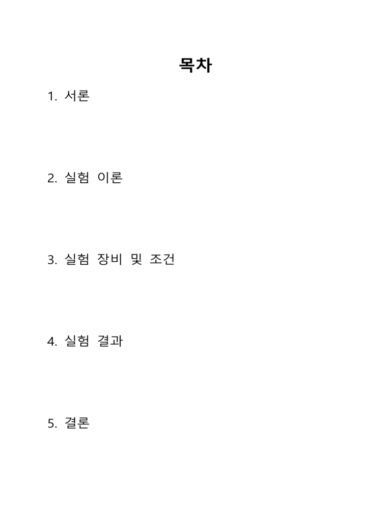 목차 1. 서론 2. 실험 이론 3. 실험 장비 및 조건 4. 실험 결과 5. 결론 1. 서론 - Lab-on-a-chip 과 미소 유체 역학 Lab-on-a-chip (1) 정의 : 랩온어칩은 초 미세 회로의 반도체 기술과 나노기술, 생명공학기술 등의 집적으로 손 톱만한 크기의 칩을 통해 실험실에서 할 수 있는 연구를 할 수 있도록 만든 장치이다. 이는 DNA 칩이나 단백질칩을 한 단계 발전시킨 바이오칩의 일종으로, 극 미량의 시료나 샘플만으로도 실험 연구과정을 신속하게 진행할 수 있어 의학, 생명공학, 환경 등 다양한 분야에서 차세대 진단ㆍ분 석장치로 개발, 연구 중이다. (2) 장점 : 바이오칩의 일종으로, 매우 미세한 시료나 샘플만으로도 실험 연구과정을 신속하고 정 확하게 진행할 수 있다. (3) 활용 : 신재생 에너지(미소연료전지 등)과 의학, 생명공학(바이오 기술), 환경(수질, 공기 등) 등 다양한 분야에서 진단, 분석 장치로 개발되고 있다. (4) 분류 : 구동방식에 따라, 재료에 따라, 구조에 따라 분류할 수 있다. ① 액체 구동방식에 따라 – 공기압 방식, 진공흡입방식, 주사기펌프방식, 전기 삼투압방식, 공기 압 구동펌프 방식, 전기 젖음 방식 ② 재료에 따라 - 연질 실리콘 PDMS 칩, 아크릴 칩, COC수지 칩, 유리칩 ③ 구조에 따라 - 이층칩, 다층칩 미소 유체역학 (1) 정의 : 미세 종합 분석 시스템(μ-TAS:micro-total analysis system) 및 랩온어칩(lab-on-a-chip) 의 상용화에 기초가 되는 기반ㆍ핵심 기술을 연구ㆍ개발하는 학문. (2) 목적 : 생물학적인 분리 및 분석 방법의 소형화 – 다종의 실험을 손 위에 올라갈 수 있는 칩 위에 구현함으로써 극소량의 용매, 시료와 반응액을 작은 채널을 정확히 통과시키며, 혼합하거나 분석하여 전기영동, 형광측정, 면역분석 등의 전통적인 모든 실험 방법을 시행한다. (3) 특징 1. 소량의 시약 사용한다. 2. 소형화를 통해 시료절감 효과를 얻을 수 있다. 3. 반응시간이 짧다. 4. 다양한 조건의 실험 연산을 하나의 칩으로 수행 가능하다. 2. 실험 이론 – 고정된 평판 사이의 유동과 Darcy-Weisbach 방정식 고정된 두 평판 사이의 유동 실험에서 사용되는 미소유체로는 무한히 넓은 고정된 두 평판이라고 가정하고, 평판에서의 유 속 방정식을 Navier-Stokes equation (나비에 스토크스 방정식)을 통해 정리하면 다음과 같다. ΔP : 압력 : 점도 : 유로의 높이 y 에 대한 이차방정식 형태의 유속을 갖게 되어 유체의 흐름이 포물선을 그린다. 유체로의 양쪽 벽면에서는 물이 접촉을 통해 마찰이 생겨 유속이 0이고, 유체로의 벽면과 어느 정도 떨어져 있으면 유속은 독립적인 형태를 갖는다. Darcy–Weisbach 방정식 - 이론 유체 역학에서, 달시-바이스바하 방정식(Darcy–Weisbach equation)은 일정한 길이의 파이프에서 유체가 흐를 때 따르는 마찰로 인한 압력 손실 또는 수두 손실과 비압축성 유체의 유체 흐름의 평균 속도를 관련시키는 상태 방정식이다. 달시-바이스바하 방정식(Darcy–Weisbach equation)은 달시 마찰 계수(Darcy friction factor)로 알 려진 무차원 마찰 계수를 포함한다. 유체가 일정량(유량)을 가지고, 일정 속도(유속)로 흐를 때 유체의 성상(성질 특히 점도)과 파이프 배관의 특성과 관련하여 손실되는 에너지를 표현한다. 그러나 결과적으로 에너지 보존의 법칙을 설명하고 있다. - 표기 Δh : 수두 손실 L : 관로의 길이 D : 지름 V : 속도 g : 중력가속도 f : 마찰 상수 - Darcy-Friction Factor Darcy-Friction Factor은 Darcy-Weisbach 방정식에 사용된 무차원 수량인 Darcy 마찰 계수를 계 산할 수 있는 방정식으로 유속 예측을 가능케 한다. 단면이 사각형인 경우 위와 같이 구할 수 있으며, 이때 레이놀즈 수 Re 는 Re = VD/ν 로 간주 되고, 이는 특정 유동이 난류인지 층류인지 구분할 수 있는 무차원의 계수이다. 3. 실험 장비 및 조건 실험장비 미소유체 칩 현미경 아크릴을 사출성형하 접안렌즈는 x10, 대물 여 만든 칩이다. 칩의 렌즈는 각각 x4, x10 미세유체로는 길이가 으로 마이크로 비드의 58.5 mm, 높이가 20 흐름을 40배 혹은 100 μm이고 폭이 b이다. 배로 관찰할 수 있다. 마이크로 피펫 작은 양의 액체를 옮 기는 데에 쓰는 실험 도구로 액체나 기체 의 부피를 정밀하게 측정할 수 있다. 현미경 마이크로미터 전체 길이는 1mm=1000μm로 일반 자로 측정할 수 없는 미세한 치수를 현미경에서 측정할 수 있도록 해준다. ImageJ CDC카메라 미국 국립보건원에서 대물렌즈를 통해서 들 개발한 이미지 분석 어온 이미지를 기록하 프로그램으로 실험에 는 센서 CDC렌즈와 서는 관로 폭 측정과 대물렌즈의 조합으로 마이크로 비드 영상 물체의 상을 확대하여 분석에 사용된다. 조영한다. 실험조건 -저장소에 용액을 채우고 유동이 정상상태가 되도록 5분정도 기다린 후 동영상을 기록한다. -동영상을 촬영 후 초당 몇 프레임의 속도로 동영상이 촬영되었는지 반드시 기록한다. -현재 온도를 온도계를 통해 측정한다. (측정값 24.5도) -적어도 50개 이상의 마이크로 비드 궤적의 속도를 구해서 평균을 내도록 한다. -현미경의 광원에서 발생하는 열이나 실험실의 대류로 인해 발생하는 온도차이는 무시한다. -미세 유체로는 총 길이 58.5mm, 높이 20μm, 폭 789.4532μm 로 한다. -미소 유체로의 모양은 약간 사다리꼴이지만, 