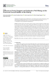 International Journal of Environmental Research and Public Health Article Influence of Social Support and Subjective Well-Being on the Perceived Overall Health of the Elderly Valeria Farriol-Baroni Sergio Pérez-Ruiz , Lorena González-García * , Aina Luque-García , Silvia Postigo-Zegarra and Departament of Psychology, Faculty of Health Sciences, Universidad Europea de Valencia, 46010 Valencia, Spain; valeriaadriana.farriol@universidadeuropea.es (V.F.-B.); ainarosa.luque@universidadeuropea.es (A.L.-G.); silvia.postigo@universidadeuropea.es (S.P.-Z.); sergio.perez@universidadeuropea.es (S.P.-R.) * Correspondence: lorena.gonzalez@universidadeuropea.es Citation: Farriol-Baroni, V.; González-García, L.; Luque-García, Abstract: Scientific interest in the positive aspects of aging and the development of healthy aging has increased, given the need to ensure older people well-being and quality of life. In this sense, social support and some sociodemographic variables may have a not yet entirely clear role. The main objective of this work was to analyze the predictive relationships of age, marital status, social support and subjective well-being on the general perception of the health of a group of elderly people. The participants were 137 people (77.4% women) between 61 and 91 years old (M = 73.11; SD = 6.22); 56.9% of them had a partner and 40.1% did not. The path analysis tested indicates that social support has an indirect predictive value on perceived overall health through its influence on subjective well-being. Age and life satisfaction are the most important direct predictors of perceived overall health. Conclusions highlight the need to delve into the study of explanatory factors of the general perception of the health of the elderly and promote interventions to facilitate the development of an appropriate social support network and increase the subjective well-being of this group. A.; Postigo-Zegarra, S.; Pérez-Ruiz, S. Influence of Social Support and Keywords: elder people; social support; subjective well-being; perceived overall health Subjective Well-Being on the Perceived Overall Health of the Elderly. Int. J. Environ. Res. Public Health 2021, 18, 5438. https:// 1. Introduction doi.org/10.3390/ijerph18105438 People’s life expectancy has increased throughout the world, which has led to growth in the presence of older people in society. For example, in Spain, the data indicate that at the beginning of the 20th century, the percentage of older people was 5.2%. In 2019, this percentage increased up to 19.4%; for 2033, the population over 65 years will be 25.2% and 38.7% in 2050 [1–4]. This worldwide situation has led to the growing scientific interest in the maintenance and development of well-being and quality of life at this stage of life. The research on the elderly has mainly focused on the negative view of old age, in which the multiple losses that occur, and the pathologies associated with aging, were highlighted [5]. However, to contribute to the study of the promotion of well-being within the elderly, it is essential to focus on the study of deterioration and understanding the facilitating aspects of healthy aging [6]. In this line, previous research has analyzed the relationship between age, the family situation [7], social participation [8], and the elderly well-being and quality of life, finding discrepant results about the importance of some variables [9,10]. Along these lines, this study aims to contribute to the existing body of literature about the promotion of well-being in old age and analyze a current sample of participants to delve into the relationship between the social support perceived by older people, indicators of well-being (i.e., satisfaction with life and self-esteem), and perceived general health. Centering in the construct of quality of life, it is understood as a subjective, global, and multidimensional perception that considers the individual, the environment surrounding him, and the relationships between the different variables that seem to affect this perception [11]. Among other indicators of well-being, satisfaction with life and happiness Academic Editor: Paul B. Tchounwou Received: 14 April 2021 Accepted: 14 May 2021 Published: 19 May 2021 Publisher’s Note: MDPI stays neutral with regard to jurisdictional claims in published maps and institutional affiliations. Copyright: © 2021 by the authors. Licensee MDPI, Basel, Switzerland. This article is an open access article distributed under the terms and conditions of the Creative Commons Attribution (CC BY) license (https:// creativecommons.org/licenses/by/ 4.0/). Int. J. Environ. Res. Public Health 2021, 18, 5438. https://doi.org/10.3390/ijerph18105438 https://www.mdpi.com/journal/ijerph Int. J. Environ. Res. Public Health 2021, 18, 5438 2 of 9 significantly influences the quality of life [12], and other variables such as social relationships, the environment where the elderly live, or their wealth [13]. Self-reported health or perceived overall health has been introduced in the scientific literature as a general indicator of the quality of life [14]. The perception of overall health considers the current physical state of the person and the level of emotional adjustment and seems to correlate with life satisfaction, self-esteem, and emotional symptoms such as depression [15,16]. In addition, a good perception of health is associated with lower mortality and a reduction in the use of health resources [17]. Under this information, in this work, we use the global perceived health indicator in older people and analyze its relationship with some psychological constructs of well-being to understand which variables need to be used to promote optimal aging [13]. Focusing on the elderly experiences of well-being, the two indicators used in the present study are satisfaction with life and self-esteem. Life satisfaction is defined as the person’s assessment of their actual shape compared to another