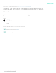 See discussions, stats, and author profiles for this publication at: https://www.researchgate.net/publication/255664868 CULTURE AND EDUCATION IN THE DEVELOPMENT OF AFRICA By Article · January 1995 CITATIONS READS 16 15,344 1 author: Isaac Ncube Mazonde University of Botswana 52 PUBLICATIONS 60 CITATIONS SEE PROFILE Some of the authors of this publication are also working on these related projects: Universities in Inclusive Development View project Needs Assessment Study View project All content following this page was uploaded by Isaac Ncube Mazonde on 05 May 2016. The user has requested enhancement of the downloaded file. CULTURE AND EDUCATION IN THE DEVELOPMENT OF AFRICA By ISAAC N MAZONDE EXECUTIVE SUMMARY Today, Africa remains the world’s poorest continent. There could be several reasons for this but one of the key ones is that education has not been relevant to the needs of the society. Substantial resources have been expended to boost education in Africa, even though such resources may not have been adequate. The basic problem is that educational structures were formulated by colonialists who had a cultural background different to that obtaining among Africans. Decades of self rule and independence have not succeeded in empowering Africans through enabling them determine their educational framework. In part, this difficulty is a result of the continued social and economic ties between African countries and their former colonising powers. Although Africa is politically independent, it remains technologically and economically dependent on countries that colonised it. Current educational structures are meant mainly to foster this bond, rather than reduce it. Reforms in African education were conceived and implemented within the framework of this relationship, hence they did not go far enough to develop and foster African culture . This paper is divided into sections. Each section discusses a specific aspect of education. The material is drawn from across Africa, and many countries are used as cases, thus giving the paper a comparative perspective. Section I is a historical presentation of the evolution of education across Africa. It highlights key areas of focus in traditional education before the advent of Europeans. At this point in time, education was structured by the people and it was relevant to the needs of the society that prevailed then. Such education was based on the values and traditional systems of societies. It was when Africa was colonised that modern or western education was introduced. It undermined the traditional value system and created social classes that did not exist before its advent. Western values replaced traditional ones and in the process traditional African education was relegated to the margins, being associated with rural people who lost their socio-economic power with the onset of western values. Post-colonial education has contiuned the links with the west. The post colonial educational system has operated to strengthen such links. Section II focuses on primary education. The section highlights the problem of growing numbers of primary school children across sub-saharan Africa, showing the rates of growth and reflecting on the costs of providing education for these children. The section explains some of the reasons why some African children will never receive formal schooling and then shoes costs associated with education at the primary school level. The section proposes some alternatives to formal schooling. Section III addresses higher education. This section brings into the discussion ideas of the World Bank, an organisation that funded higher education in a number of African countries. The Bank’s arguments are tested for relevance to African situations and alternatives are suggested. Curriculum changes are suggested and the role of the government in the provision of higher education is evaluated. Section IV touches on curriculum. It argues that African countries have Africanised their education curricula quite slowly. Changes have occurred mainly in science subjects, such as mathematics. One might argue that such subjects have a small political economy dimension, hence the willingness of the west to make appropriate reforms in them. The section considers the role of informal education and that of vocational training, putting the informal sector in the perspective. Section V is on modeling African education for development. The section concentrates on the curricula for certain countries, essentially Zimbabwe, but also brings in experiences from Latin America. 1 Section VI brings to the fore problems associated with using a second language as the main language for learning. Cases used include French and English as the medium of instruction for African students. The problems are discussed under three sub-headings: pedagogical, supply of teachers and administrative difficulties. The literature reveals the difficulties African pupils face in understanding the basic concepts when taught in a foreign language and also the shortage. Most importantly, the discussion shows how culture comes up strongly to present a barrier for African students when they are forced to learn in a foreign language which is based on values and metaphors different from theirs. INTRODUCTION This paper sets out to discuss how culture has influenced education and also how education has influenced culture in Africa over time, from the pre-colonial through the colonial to the post-colonial period. Due to paucity of more current or up to-date literature, the post colonial period will be considered only up to the mid 1990s. It is recognised, however, that the current period is characterised by the use of hi-tech in education, tele-education through TV and through video-conferencing, and the eLearning initiative which is fast gaining a foothold in a number of African countries. Most of the discussion is on the colonial and the post colonial period. The discussion is in the form of 