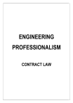 ENGINEERING PROFESSIONALISM CONTRACT LAW Contract Law PART I: WHAT IS A CONTRACT? 1 © University of Pretoria Contract Law 1. Introduction What is a contract? 1. A contract is a verbal or written agreement between two or more consenting parties who both have the legal capacity to conclude the agreement. a. The agreement must be legally executable (not contain any illegal content that cannot be executed by both parties due to legislative restrictions). b. Its purpose is to give rise to a binding legal commitment by both parties in which both parties have rights and obligations. 2. A contract is therefore an agreement entered into by specified parties with the specific intent to create obligations which are binding and as a result thereof, legally enforceable. 3. It is of the utmost importance to always indicate where and when a contract was concluded between parties: a. WHERE – the place where is always relevant, as it determines in which court’s jurisdictional area it was signed. If a party is in breach of that contract the disadvantaged party can approach the court where the contract was signed to exercise its remedies. b. WHEN – is paramount, as it determines at what time the parties’ rights and obligations came into effect. 4. These obligations [the performance] can be can be divided into three (3) different subcategories, namely: a. To do something b. To refrain from doing something; c. To give/surrender something. Characteristics of contracts Warranty There must be at least two parties to an agreement Bonae fidei Consensual WHAT ARE THE CHARACTERISTIC FEATURES Reciprocity Promises or undertakings on one or both sides. OF A CONTRACT? Consideration = Freedom of contract = Performance – Something of value must be given or Parties can agree to anything that is Immediately or at a future promised in return possible and lawful. date 2 © University of Pretoria Contract Law 2. Requirements for a valid contract REQUIREMENTS OF A VALID CONTRACT CAPACITY FORMALITIES The parties must Where the have the necessary agreement is capacity to required, contract. unusually, to be in CONSENSUS The minds of the parties must meet (or at least appear to meet) on all PHYSICALLY EXECUTABLE The agreement must be lawful – a certain form (for material aspects of their agreement. LEGALITY Person may either example, in writing have (i) no capacity and signed), these (ii) limited capacity formalities must be (iii) full capacity. observed. The obligations that is, not undertaken must be prohibited by (i) determinable and statute or (ii) capable of common law. performance when the agreement is entered into VOID CONTRACT VOID CONTRACTS • VOIDABLE CONTRACTS Void contracts are – ▪ • Contracts where one or more of the Voidable contracts are – ▪ requirements for a valid contract are concluded between the parties, but a missing. • Contracts where an agreement was material deficiency was present at the For example: If one of the parties is not allowed to time when the contract was contract due to common law or legislative concluded. restrictions (minors, unrehabilitated insolvents, • mentally incapable) The material deficiency may be based on – ▪ Misrepresentation ▪ Duress ▪ Undue Influence ▪ Economic Bribery ▪ Unconscionable Conduct – Sec 40 of the Consumer Protection Act 3 © University of Pretoria Contract Law CONTENT OF A CONTRACT ESSENTIALIA NATURALIA INCIDENTALIA Those distinctive terms used to Terms automatically included in any The terms other than the identify or classify a contract as one contract belonging to one of the classes naturalia and essentialia. of the specific contracts recognised of They are the additional terms by our common law. recognised by our law. agreed upon by the parties that The essentialia of a contract of sale: They can therefore be said to be implied supplement or modify the Are terms stipulating that property by law (ex lege). rights and duties incorporated specific contracts traditionally must be delivered and that the by law into the particular purchase price must be paid. contract in question – namely, the naturalia. 3. Commercial contracts A commercial contract in itself is relevant to the world of business transactions and professional relationships. Commercial agreements need to take into account the following principles: 1. Risk Management 2. Tax efficiency 3. Business Practice 4. Trade Usages 4. Commercial contracts and contracts for engineering Engineers in general offer one or more of the following: 1. Service – where the Engineer offers specific knowledge as the “product” he/she sells; 2. Products – where the engineer works for a company that offers certain products or specified systems; 3. When these products, services or a combination of the above are offered to another party, a contract is usually concluded between the aforesaid. Preferably any and all contracts should be reduced to writing, to ensure that both parties enjoy the appropriate protection in the event of breach. A verbal contract is extremely difficult to prove, unless the circumstances surrounding the agreement serve as irrefutable evidence of the agreement itself, as well as the terms thereof. 4 © University of Pretoria Contract Law PART II: HOW IS CONTRACT A FORMED? 5 © University of Pretoria Contract Law 5. Basic principles 5.1 The parties The parties 1. Always two or more parties to a contract. a. Who consent to the terms thereof (for example: X cannot force Y to sign the contract) b. Both have rights and responsibilities (to pay or render a service/receive goods or services) c. Both parties need to have the capacity and authority to contract. d. Two types of persons who can contract: i. Natural Persons ii. Juristic Persons PERSON TYPES NATURAL PERSONS • JURISTIC PERSONS Persons with FULL CAPACITY ▪ • Is conferred on those the law considers and are represented by specific individuals sane, sober or of an age where they can (natural persons) who 