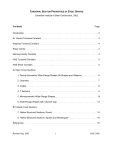 TORSIONAL SECTION PROPERTIES OF STEEL SHAPES Canadian Institute of Steel Construction, 2002 Contents Page Introduction . . . . . . . . . . . . . . . . . . . . . . . . . . . . . . . . . . . . . . . . . . . . . . . . . . . . . . . . . . . . . . 2 St. Venant Torsional Constant . . . . . . . . . . . . . . . . . . . . . . . . . . . . . . . . . . . . . . . . . . . . . . . . 3 Warping Torsional Constant . . . . . . . . . . . . . . . . . . . . . . . . . . . . . . . . . . . . . . . . . . . . . . . . . 4 Shear Centre . . . . . . . . . . . . . . . . . . . . . . . . . . . . . . . . . . . . . . . . . . . . . . . . . . . . . . . . . . . . . 4 Monosymmetry Constant . . . . . . . . . . . . . . . . . . . . . . . . . . . . . . . . . . . . . . . . . . . . . . . . . . . 4 HSS Torsional Constant . . . . . . . . . . . . . . . . . . . . . . . . . . . . . . . . . . . . . . . . . . . . . . . . . . . . 5 HSS Shear Constant . . . . . . . . . . . . . . . . . . . . . . . . . . . . . . . . . . . . . . . . . . . . . . . . . . . . . . . 5 A) Open Cross Sections: 1. Doubly-Symmetric Wide-Flange Shapes (W-Shapes and I-Beams) . . . . . . . . . . . . . 6 2. Channels . . . . . . . . . . . . . . . . . . . . . . . . . . . . . . . . . . . . . . . . . . . . . . . . . . . . . . . . . . 7 3. Angles . . . . . . . . . . . . . . . . . . . . . . . . . . . . . . . . . . . . . . . . . . . . . . . . . . . . . . . . . . . . 8 4. T-Sections . . . . . . . . . . . . . . . . . . . . . . . . . . . . . . . . . . . . . . . . . . . . . . . . . . . . . . . . . 9 5. Monosymmetric Wide-Flange Shapes. . . . . . . . . . . . . . . . . . . . . . . . . . . . . . . . . . . . 10 6. Wide-Flange Shapes with Channel Cap . . . . . . . . . . . . . . . . . . . . . . . . . . . . . . . . 12 B) Closed Cross Sections: 7. Hollow Structural Sections, Round . . . . . . . . . . . . . . . . . . . . . . . . . . . . . . . . . . . . . 15 8. Hollow Structural Sections, Square and Rectangular . . . . . . . . . . . . . . . . . . . . . . . 16 References . . . . . . . . . . . . . . . . . . . . . . . . . . . . . . . . . . . . . . . . . . . . . . . . . . . . . . . . . . . . . 18 Revised Aug. 2002 1 CISC 2002 Introduction Structural engineers occasionally need to determine the section properties of steel shapes not found in the current edition of the Handbook of Steel Construction (CISC 2000). The following pages provide the formulas for calculating the torsional section properties of structural steel shapes. The section properties considered are the St. Venant torsional constant, J, the warping torsional constant, Cw, the shear centre location, yO , and the monosymmetry constant, βx . Also included are the torsional constant, C, and the shear constant, CRT, for hollow structural sections (HSS). Although not a torsional section property, the shear constant is included because it is not easily found in the literature. Some of the formulas given herein are less complex than those used in developing the Handbook and the Structural Section Tables (CISC 1997). Effects such as flange-to-web fillet radii, fillet welds, and sloped (tapered) flanges have not been taken into account. Likewise, some of the formulas for monosymmetric shapes are approximations which are only valid within a certain range of parameters. If needed, more accurate expressions can be found in the references cited in the text. Simple example calculations are provided for each type of cross section to illustrate the formulas. A complete description of torsional theory or a detailed derivation of the formulas for torsional section properties is beyond the scope of this discussion; only the final expressions are given. The references can be consulted for further information. Although no effort has been spared in an attempt to ensure that all data contained herein is factual and that the numerical values are accurate to a degree consistent with current structural design practice, the Canadian Institute of Steel Construction does not assume responsibility for errors or oversights resulting from the use of the information contained herein. Anyone making use of this information assumes all liability arising from such use. All suggestions for improvement will receive full consideration. 2 CISC 2002 St. Venant Torsional Constant The St. Venant torsional constant, J, measures the resistance of a structural member to pure or uniform torsion. It is used in calculating the buckling moment resistance of laterally unsupported beams and torsional-flexural buckling of compression members in accordance with CSA Standard S16.1-94 (CSA 1994). For open cross sections, the general formula is given by Galambos (1968): b′ t 3 J = ∑ 3 [1] where b' are the plate lengths between points of intersection on their axes, and t are the plate thicknesses. Summation includes all component plates. It is noted that the tabulated values in the Handbook of Steel Construction (CISC 2000) are based on net plate lengths instead of lengths between intersection points, a mostly conservative approach. The expressions for J given herein do not take into account the flange-to-web fillets. Formulas which account for this effect are given by El Darwish and Johnston (1965). For thin-walled closed sections, the general formula is given by Salmon and Johnson (1980): J= 4 AO2 [2] ∫ ds t S where AO is the enclosed area by the walls, t is the wall thickness, ds is a length element along the perimeter. Integration is performed over the entire perimeter S. 3 CISC 2002 Warping Torsional Constant The warping torsional constant, Cw, measures the resistance of a structural member to nonuniform or warping torsion. It is used in calculating the buckling moment resistance of laterally unsupported beams and torsional-flexural buckling of compression members in accordance with CSA Standard S16.1-94 (CSA 1994). For open sections, a general calculation method is given by Galambos (1968). For sections in which all component plates meet at a single point, such as angles and T-se