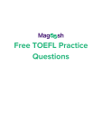 Free TOEFL Practice Questions Introduction About the TOEFL The TOEFL is formatted in four sections, each of which tests one language skill -reading, listening, speaking, and writing. In this PDF, you’ll find practice questions from each of those four sections. If you’d like to know more about the TOEFL, you can check out our free, 150+ page eBook . How to Use This PDF Before each set of questions, we’ve provided directions for that section--be sure to read them! The best way to use this PDF is to first answer the questions, and then check those answers with the answer key at the end. We’ve also provided detailed explanations, so you should read those as well. These practice questions came from the Magoosh TOEFL product . If you like what you see here, be sure to sign up for a free trial . :) Happy studying! The Magoosh Team toefl.magoosh.com 1 Table of Contents Click the links to jump to each section! The Magoosh Team What is Magoosh? Why Our Students Love Us Reading Section Questions Listening Section Questions Speaking Section Questions Writing Section Questions Answer Key and Explanations Reading Section Answer Key and Explanations Listening Section Answer Key and Explanations Speaking Section Sample Responses Writing Section Sample Response Additional Resources Study Plans [eBook] Magoosh’s Guide to the TOEFL iBT Vocabulary Resources Infographics Book Reviews toefl.magoosh.com 2 The Magoosh Team Who is Magoosh? We are a group of passionate educators in Berkeley, California. Email us at help@magoosh.com if you have any questions, comments, or suggestions! toefl.magoosh.com 3 What is Magoosh? Magoosh is an online TOEFL prep course that offers: ● over 100 TOEFL video lessons ● practice questions ● material created by expert tutors ● e-mail support ● personalized statistics based on performance ● access anytime, anywhere from an internet-connected device Featured in toefl.magoosh.com 4 Why Our Students Love Us These are survey responses sent to us by students after they took the TOEFL. All of these students and many more have used the Magoosh TOEFL prep course to improve their scores! toefl.magoosh.com 5 The Reading Section The reading section is designed to test how well you understand and interpret college-level academic writing similar to that found in introductory textbooks. Below, you will find a sample reading passage and 14 questions. toefl.magoosh.com 6 Directions: Read the passage below and answer the questions. History of the Chickenpox Vaccine Chickenpox is a highly contagious infectious disease caused by the Varicella zoster virus; sufferers develop a fleeting itchy rash that can spread throughout the body. The disease can last for up to 14 days and can occur in both children and adults, though the young are particularly vulnerable. Individuals infected with chickenpox can expect to experience a high but tolerable level of discomfort and a fever as the disease works its way through the system. The ailment was once considered to be a “rite of passage” by parents in the U.S. and thought to provide children with greater and improved immunity to other forms of sickness later in life. This view, however, was altered after additional research by scientists demonstrated unexpected dangers associated with the virus. Over time, the fruits of this research have transformed attitudes toward the disease and the utility of seeking preemptive measures against it. A vaccine against chickenpox was originally invented by Michiaki Takahashi, a Japanese doctor and research scientist, in the mid-1960s. Dr. Takahashi began his work to isolate and grow the virus in 1965 and in 1972 began clinical trials with a live but weakened form of the virus that caused the human body to create antibodies. Japan and several other countries began widespread chickenpox vaccination programs in 1974. However, it took over 20 years for the chickenpox vaccine to be approved by the U.S. Food & Drug Administration (FDA), finally earning the U.S. government’s seal of approval for widespread use in 1995. Yet even though the chickenpox vaccine was available and recommended by the FDA, parents did not immediately choose to vaccinate their children against this disease. Mothers and fathers typically cited the notion that chickenpox did not constitute a serious enough disease against which a person needed to be vaccinated. Strong belief in that view eroded when scientists discovered the link between Varicella zoster , the virus that causes chickenpox, and shingles, a far more serious, harmful, and longer-lasting disease in older adults that impacts the nervous system. They reached the conclusion that Varicella zoster remains dormant inside the body, making it significantly more likely for someone to develop shingles. As a result, the medical community in the toefl.magoosh.com 7 U.S. encouraged the development, adoption, and use of a vaccine against chickenpox to the public. Although the appearance of chickenpox and shingles within one person can be many years apart—generally many decades—the increased risk in developing shingles as a younger adult (30-40 years old rather than 60-70 years old) proved to be enough to convince the medical community that immunization should be preferred to the traditional alternative. Another reason that the chickenpox vaccine was not immediately accepted and used by parents in the U.S. centered on observations made by scientists that the vaccine simply did not last long enough and did not confer a lifetime of immunity. In other words, scientists con sidered the benefits of the vaccine to be temporary when given to young children. They also feared that it i ncreased the odds that a person could become infected with chickenpox later as a young adult, when the rash is more painful and prevalent and can last up to three or four weeks. Hence, allowing young children to develop chickenpox rather than take a vaccine against it was believed to be the “lesser of two ev