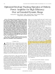 1508 IEEE TRANSACTIONS ON MICROWAVE THEORY AND TECHNIQUES, VOL. 57, NO. 6, JUNE 2009 Optimized Envelope Tracking Operation of Doherty Power Amplifier for High Efficiency Over an Extended Dynamic Range Jinsung Choi, Student Member, IEEE, Daehyun Kang, Student Member, IEEE, Dongsu Kim, and Bumman Kim, Fellow, IEEE Abstract—This paper presents an optimized envelope tracking (ET) operation of a Doherty amplifier. Compared to the general ET/envelope elimination and restoration transmitter, it has an advantage of the extended dynamic range of 6 dB for the load modulation of a Doherty amplifier. Moreover, by modulating the supply voltage of the carrier amplifier, while that of the peaking amplifier is fixed, the supply modulator provides just half of the current for the same power amplifier output power. It results in a reduced chip size and the crest factor of the supply modulating signal is reduced by 6 dB, enhancing the efficiency of the supply modulator. The designed ET transmitter consisting of the Doherty amplifier and the supply modulator are fabricated in 2- m HBT and 0.13- m CMOS processes, respectively. It presents the efficiency improvement over the broad output power region. Especially at the 16-dB backed-off power level, more than 23% of power-added efficiency (PAE) is achieved. For WiBro application, it shows the PAE of 38.6% at an output power of 24.22 dBm with a gain of 24.62 dB. The error vector magnitude is 3.64%. Index Terms—CMOS analog integrated circuits, dc–dc power conversion, Doherty amplifier, envelope tracking (ET), power amplifiers (PAs), transmitters, wireless communication. I. INTRODUCTION A S THE modern wireless communication systems request high data rates within a limited bandwidth, the crest factor, which is the power ratio between the average signal power and its peak power, is considerably higher, exceeding 10 dB. The RF power amplifier (PA) operates in the power backoff region to linearly amplify the signal. In general, the efficiency at this region is so low that the usable battery time is limited and the handset unit becomes warm easily. In order to operate the PA with high efficiency, the crest factor reduction technique can be used. By reducing the crest factor, the PA can Manuscript received November 18, 2008; revised March 04, 2009. First published May 08, 2009; current version published June 10, 2009. This work was supported by the Korean Government (MOST) under Korea Science and Engineering Foundation (KOSEF) Grant R01-2007-000-20377-0, by the Ministry of Knowledge Economy, Korea, under the Information Technology Research Center (ITRC) Support Program supervised by the Institute of Information Technology Advancement (IITA) (IITA-2009-C1090-0902-0037), and by the Electronics and Telecommunications Research Institute (ETRI) System-on-Chip (SoC) Industry Promotion Center under the Human Resource Development Project for Information Technology (IT) SoC Architect. The authors are with the Department of Electrical Engineering, Pohang University of Science and Technology (POSTECH), Gyeongbuk 790-784, Korea (e-mail: jinsungc@ieee.org; daehkang@postech.edu; rookieds@postech.edu; bmkim@postech.edu). Color versions of one or more of the figures in this paper are available online at http://ieeexplore.ieee.org. Digital Object Identifier 10.1109/TMTT.2009.2020674 operate at a less power backoff region and it results in more output power and higher efficiency. However, it is not an ultimate solution for the high crest factor signal. As the crest factor gets higher with evolution of communication systems, the PA inevitably operates in the power-inefficient region. Moreover, if the PA itself has higher efficiency, the crest factor reduction technique helps getting even higher efficiency. Much research has been done over time to improve PA efficiency at the power backoff region [1]–[17]. Among the various topologies reported in the literature, a Doherty amplifier and a polar modulator (also called the envelope elimination and restoration (EER) technique) are the most popular architectures capable of achieving high efficiency with moderate linearity. While both of them can be highly efficient for signals with the crest factor of around 5–7 dB, similar performance is hard to achieve for signals with a crest factor of more than 10 dB. In this paper, a transmitter employing the envelope tracking (ET) operation of Doherty amplifier is optimized and implemented. It takes advantages of the ET and Dohetry amplifier without any deterioration of the performance. By modulating the supply voltage of the carrier amplifier for the Doherty amplifier, it boosts up the efficiency of the amplifier at the low-power region. It shows an extended dynamic range of 6 dB compared to the general ET transmitter. The crest factor of the supply modulating signal is also reduced by 6 dB, significantly enhancing the supply modulator efficiency. It is suitable to mobile handset applications requesting a high efficiency with wide power control range. In Section II, the concept of the ET transmitter employing the Doherty technique is presented. Section III deals with circuit implementation of the proposed transmitter. In Section IV, experimental results are presented. The designed ET Doherty amplifier delivers an efficiency of 23% at the 16-dB power backoff level. Considering that the handset is usually operated at the low-power level, this efficiency improvement at the low level is very significant. II. ET TRANSMITTER WITH DOHERTY AMPLIFIER A. Limitation of General ET/EER Transmitter The EER transmitter shown in Fig. 1(a) ideally delivers very high efficiency at the entire power range with good linearity. By the Cartesian to polar conversion, the RF up-converted phase information is applied to the input of the PA and the amplitude information is delivered to the drain/collector of the PA through the supply modulator. It accomplishes the high efficiency by 0018-9480/$25.00 © 2009 IEEE CHOI et