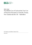 White Paper The Hidden Cost of Cash and the True Cost of Electronic Payments in Australia, Europe, New Zealand and the UK - Addendum Sam Stewart, Jean Dobbeni, Federico Folch August 2024 1 In May 2024, BCG conducted a survey on the cost of acceptance to merchants in Australia and New Zealand, based on previous studies in European countries and the UK. The survey data now covers 15 markets with more than 100 merchants surveyed in each market. Key messages The key findings for Australia and New Zealand are consistent with the previous European research: • Indirect and back-office costs account for the bulk of merchants' payment acceptance costs. • Cash acceptance is more expensive than most electronic payment instruments. • Electronic payments continue to gain in popularity among merchants. • The proliferation of payment solutions has led to a broad range of value propositions with distinct cost positions. • Large merchants benefit from substantial volume discounts which are unavailable to smaller merchants. • Country-level differences result largely from local payment behaviours. BOSTON CONSULTING GROUP August 2024 2 Indirect and Back-office Costs Account for the Bulk of Merchants' Payment Acceptance Costs Payment instruments come with multiple direct fees, associated services, and a broad range of indirect costs to merchants. To obtain a realistic, end-to-end view, we looked at three components: • Direct costs: For digital instruments, these costs comprise the amount paid to payment service providers (fees are linked to transactions and are invoiced as a percentage, fixed fee, or combination of both). For cash, we defined direct costs as the cost of depositing cash at the bank, or the cost of having the cash collected (cash-in-transit (CIT) cost). For card (four-party) schemes, a merchant service charge (MSC) is applicable. • Indirect costs: All instruments carry a broad range of costs that are either required to enable the transaction (such as a payment terminal or cash register), or result from the transaction (for example, fraud, theft, or keying errors during the check-out process). • Back-office costs: These stem from the work required to reconcile payments (such as invoice reconciliation and cash register preparation). To obtain market-level averages we weighted survey results by the mix of merchants in the country, expressed as a percentage of the average value of a transaction (€60 in the EEA and the UK, AUD$68 in Australia and NZD$64 in New Zealand). We present the European results on a consolidated basis, to avoid a skew to the largest countries. Results for Australia and New Zealand are presented separately. BOSTON CONSULTING GROUP August 2024 3 Cash is More Expensive than Most Electronic Payment Instruments For the merchant, cash may appear to be free, due to the absence of a cost per transaction. However, based on a comprehensive end-to-end view, cash is among the most expensive instruments, with a cost of 3.9% and 3.6% for Australia and New Zealand respectively, and an average cost of 3.1% in the EEA & the UK (see Exhibits A(i) and A(ii)). While the direct cost of cash is low, merchant costs emanate from indirect and back-office costs associated with cash handling: • The direct cost of cash is approximately 0.3% and 0.1% in Australia and New Zealand respectively, and 0.4% in the EEA & the UK. Many merchants pay for secure transportation to the bank and/or banking fees in order to deposit cash. Deposit costs in Australia and New Zealand are typically fixed sums that could be as high as 0.2% of cash turnover on average, as compared to European deposits costs, which can range from zero to as high as 1.5%. CIT costs can reach 0.7% in Australia and New Zealand, as compared to 2% in Europe. In markets with low cash levels and therefore with minimal scale, we observed higher costs for depositing cash and/or CIT. • Indirect costs are the second largest cost item, totalling approximately 1.1% and 1.2% in Australia and New Zealand respectively, and 1.1% in the EEA and the UK. In Australia and New Zealand, this can be broken down into under 0.1% for equipment costs (such as relating to the register, safe and teller), and around 1.1% for shrinkage (employee theft, cash handling errors, and other crime), while in the EEA and the UK, this is broken down into 0.2% for equipment costs and 0.9% for shrinkage. • Back-office costs are the most expensive item, reaching approximately 2.5% and 2.3% for Australia and New Zealand respectively, and 1.6% in the EEA and the UK. These result from labour costs to reconcile values, prepare tills and (for some merchants) to take cash to the bank. • In Australia and New Zealand (but not EEA and the UK), we included an examination of the consumer costs associated with cash usage (such as ATM BOSTON CONSULTING GROUP August 2024 4 withdrawals fees) relative to card usage costs. The analysis shows that it costs consumers approximately 0.4% to use cash, which is incremental to the merchant's cost of acceptance for cash. This contrasts with the consumer's average card usage surcharge of approximately 1%, which shifts part of the cost burden from the merchant to the consumer, thereby reducing the merchant's net cost of card acceptance (see Exhibit A(iii)). Exhibit A(i) - Cost of acceptance by payment instrument - Australia & New Zealand (2024) BOSTON CONSULTING GROUP August 2024 5 Exhibit A(ii) - Cost of acceptance by payment instrument - EEA & the UK (2022-2023) Exhibit A(iii) - Consumer cost of usage (cards and cash) - Australia & New Zealand (2024) BOSTON CONSULTING GROUP August 2024 6 Electronic Payments Continue to Gain Popularity Among Merchants The adoption of electronic payments has accelerated not only through the growth of ecommerce but also in store, where the Covid-19 pandemic has been a major catalyst for contactless card transactions in Australia, New Zealand, and Europe. Additionally, in Europe, there has been a similar