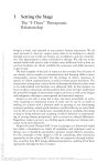 1 Setting the Stage Copyright 2017. Routledge. All rights reserved. May not be reproduced in any form without permission from the publisher, except fair uses permitted under U.S. or applicable copyright law. The “I-Thou” Therapeutic Relationship Respect is basic and essential to any positive human interaction. We all need and seek it. And yet, respect seems often to be lacking in a deeply harmful way in our world, our homes, our workplaces, and our communities. This phenomenon is often overlooked in therapy. We, who are in the mental health field, need to take a harder, more deliberate look at how we can best facilitate our clients establish the awareness and skills necessary to get it back. We find examples of the lack of respect in the everyday lives of many of our clients, such as apathy in communication and listening skills in many relationships, serious disregard for the feelings of others, meanness in speech, or violent communication, as well as violent actions and abuse. The connections among these various levels of disrespectful behavior often seem to be understudied and therefore not addressed fully. In this chapter, we focus on these connections and the patterns they create to better understand the powerful strength of intervention respect can have as well as the danger and malignancy disrespect, unrecognized and untreated, imposes. Respect is not only a noun but is also, and more powerfully, an active verb, requiring an intentional action of some sort. It can be as small as making eye contact with a pleasant smile or greeting or not interrupting someone speaking—simply good manners or polite behavior, as many think it to be. But it can be so much more, exceeding form or cordiality, becoming as deep as being tolerant and accepting of others’ behavior or understanding of varying human perspectives, such as sexual or cultural differences. Regardless, respect can serve as a healing agent, making every human interaction work more effectively. Respect-Focused Therapy (RFT) is not a technique or a theoretical model but rather a foundation on which all modalities and techniques used in therapy are, or should be, grounded to produce sound, effective outcomes. For the remainder of this chapter, I will be considering other theoretical approaches as they relate to RFT, how they are supportive through similarities, as well as how RFT brings additional perspective, unifying all of these approaches through the lens of respect. EBSCO Publishing : eBook Collection (EBSCOhost) - printed on 12/9/2024 6:17 PM via YORKVILLE UNIVERSITY AN: 1360445 ; Susanne Slay-Westbrook.; Respect-Focused Therapy : Honoring Clients Through the Therapeutic Relationship and Process Account: s7439054.main.eds 2 Setting the Stage The Therapist in the Therapist-Client Relationship What the therapist brings to the therapist-client relationship is vitally important to the entire process and outcome of therapy. Because of the power disparity between therapist and client, it is easy to slip into the position of judge or parent without intention. Even the smallest biases can get in the way of doing good, effective work, such as regarding physical appearance, dress, hygiene, or language, not to mention parenting or relating styles or what we may consider to be inappropriate behaviors. Our role as therapists inherently contains a certain power that can be too easily forgotten. We are the helpers, the professionals. We have been trained to be empathetic. We have learned skills and techniques. More importantly, the truth is, or should be, that we really do care, or we probably would not have chosen this field. We genuinely want to help alleviate human pain and suffering. It is with this intention that we go forward with this challenging but rewarding work. But the best intentions can be maligned by the presumption that we are indeed fulfilling this appropriately. This presumption can and does often bypass the focus of respect. The act of helping can then unintentionally create imbalance in power or asymmetry. To this point, respect can become the equalizer, or as Lawrence-Lightfoot (2000) put it, respect “creates symmetry” (p. 5). One of the core principles of respect I present in this book is that respect in its truest form is not hierarchical; it is lateral and genuine and thereby most effective in creating real change. It is freely given, not demanded or fear based. This directly challenges one of the more widely assumed aspects of respect: that it is reserved for elders or authority. This assumption leaves out a large section of humanity, namely, all of those who do not have power or authority over others, including children. In undergraduate school, I was required to write a senior-year thesis in psychology. I chose to do a phenomenological study of the nature of helping behavior, particularly as it related to the level of acceptability of the way the help was presented to the persons being helped. The two groups I studied were persons with physical disabilities and persons without obvious disabilities. It was particularly interesting to me that the nondisabled population found it harder to accept help than the disabled population did but just as notable, and perhaps more significantly to the point being made here, is that the factor that made help most acceptable to both groups was the feeling of equality with the helper. Condescension of any form made the help less desirable to those being helped. Being treated or perceived as helpless or inferior in any way most often was the cause of refusal of help. As therapists, as human beings in this role, we need to remind ourselves always of our humanity, our own frailties, woundedness, triggers, biases, and perceptions of the world at large. The respect we have, or don’t have, for ourselves is critical to how we find and build respect for our clients. Self-care, then, is a mandatory piece of the puzzle in the quality of care that EBSCOhost - printed on 12/9/2024 6