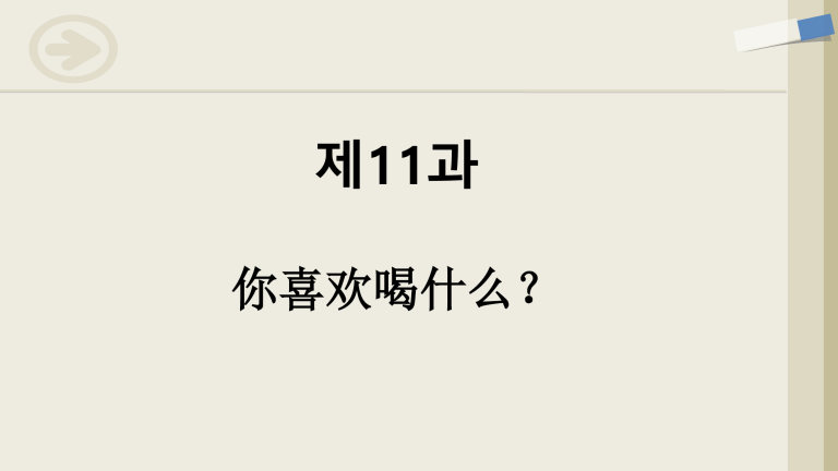 제11과 你喜欢喝什么? 워밍업: 你喝什么? kěkǒukělè 可口可乐 chá 茶 kāfēi 咖啡 niúnǎi 牛奶 kuàngquánshuǐ 矿泉水 보충 회화1 바람(~고 싶다): 想+동사+목적어 Yìdàlìmiàn 意大利面 shālà 沙拉 zhūpái 猪排 Hànbǎo 汉堡 wūlóngchá 乌龙茶 Měishìkāfēi 美式咖啡 보충 단어 Nátiě 拿铁 Mókǎkāfēi 摩卡咖啡 Kǎbùqínuò 卡布奇诺 Jiāotángmǎqíduǒ 焦糖玛奇朵 그림 보고 대화 만들어 보기 화제: 무엇을 드실래요? 대화방식: A와 B의 대화 1. 2. 3. 4. 5. 6. 그림 보고 대화 만들어 보기 화제: 무엇을 마실래요? 대화방식: A와 B의 대화 1. 2. 3. 4. 5. 6. 미각 관련 어휘 익히기 巧克力很甜。 Qiǎokèlì hěn tián. 炒年糕很辣。 Chǎoniángāo hěn là. 酱油很咸。 Jiàngyóu hěn xián. 柠檬很酸。 Níngméng hěn suān. 咖啡很苦。 Kāfēi hěn kǔ. 柿子很涩。 Shìzi hěn sè. 과일 명칭 단어 익히기 西瓜 xīguā 수박 苹果 píngguǒ 사과 草莓 cǎoméi 딸기 葡萄 pútao 포도 xīguā 香蕉 xiāngjiāo 바나나 梨 lí 배 西红柿 xīhóngshì 토마토 橘子 júzi 귤