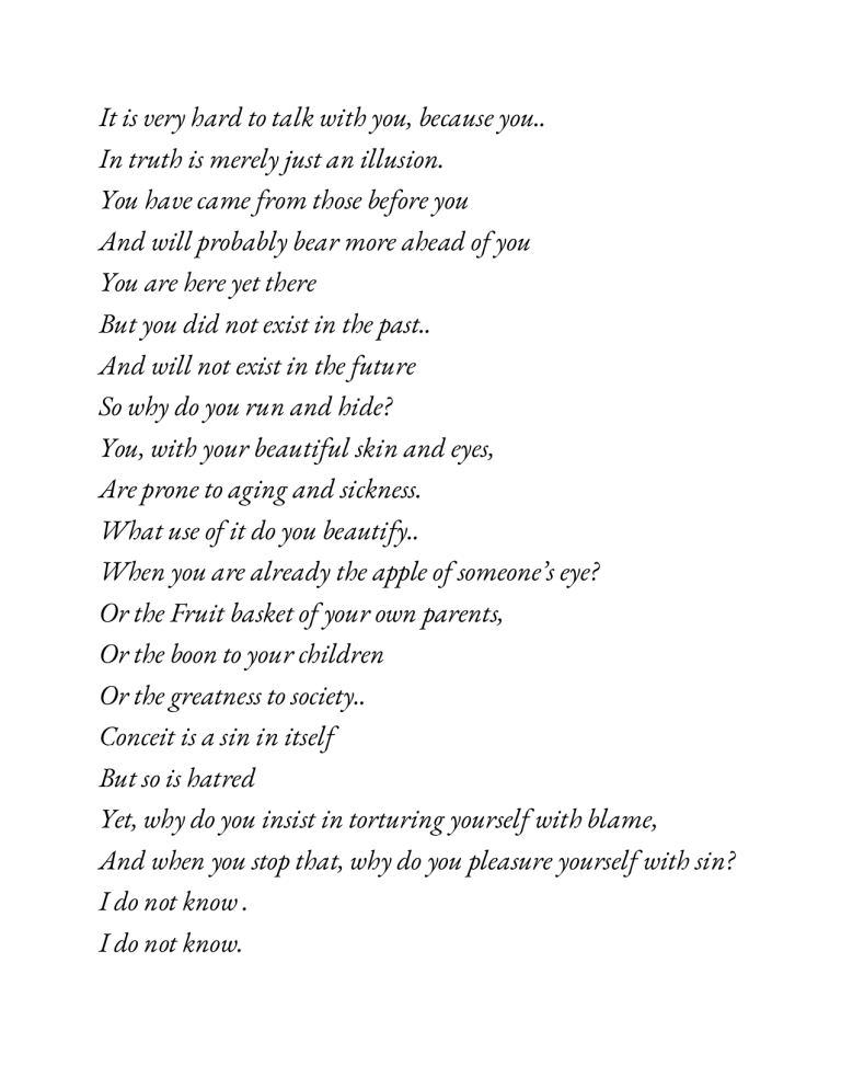 It is very hard to talk with you, because you.. In truth is merely just an illusion. You have came from those before you And will probably bear more ahead of you You are here yet there But you did not exist in the past.. And will not exist in the future So why do you run and hide? You, with your beautiful skin and eyes, Are prone to aging and sickness. What use of it do you beautify.. When you are already the apple of someone’s eye? Or the Fruit basket of your own parents, Or the boon to your children Or the greatness to society.. Conceit is a sin in itself But so is hatred Yet, why do you insist in torturing yourself with blame, And when you stop that, why do you pleasure yourself with sin? I do not know . I do not know. What good is it to trust in someone not real? Yet what good is it to deny what is? What is delusion, what is truth? The sublime truth exists, yet i am tired from my marathon of running after lies. This is what happens to all beings. Poor beings, realizing truth at the last moment that none of this really mattered anyway. And that none of it would matter even if it was good enough anyway. Why love? Why hate? Love is good, pleasure is good. But over of anything is bad. This world is full of paradoxes. This world is full of deception. Yet i am still so entrapped in the clutches of worldy treadmill, i don’t even think i have a body left over to exercise. I want to hate, but it’s fruitless. What is the use? If i get to compliment someone, i’ll compliment them for their virtue, what good is it to lick another bosom? What pleasure would i gain from doing so… if i had gained pleasure in the past, why don’t i feel it now? All of this is fruitless. The Dhamma is the only refuge. The Buddha is the only refuge, The Sangha is the only refuge. How i wish i could understand what they preach. When all satisfaction is out of reach. My body is in a undignified breach. How i cannot breathe. I am stuck in this cycle of wretched restlessness. Something is strangling me but i do not know what . OKAY . Now enough of this so-called “philosophizing language” This does not bring happiness or peace in the way seeing the truth does, so in fact. This too is delusion. I am now going to write only good things, i’ll see how it will transform my mindset. I am not going to shift from this until i am happy and content and in High Vibration. 1. A truly wise and contented is happy and light. 2. The true Buddha’s disciples live in joy and content. Gratitude prompts. What in your life do you have now that you used to dream about having in the past? 1. My loku punchi’s love because, i think she is a wonderful person. 2. The love of my family members, because i always wanted to be a person whose loved by everyone. 3. My tea is warm and delicious. It soothes me. 4. The love for Buddhism. I have always wanted to understand it and now i do a little by little ! 5. Cute pretty Cats. they so adorable uwu 6. Mom back! Her food is delicious and i get hugs 7. A sick dad to take care of. If i take care of him well, it is a lot of merit <3 so i am grateful for that 8. Mindfulness training , i want to be mindful and joyful when Sadhu arrives 9. Venerable monk coming to visit us. It’s pleasing to the eyes and heart when a Venerable Monk arrives . 10. Seeing monks and listening Bana everyday . it is such a beautiful and meritorious occasion for us everyday to learn something new and become 0.01 % better everyday. 11. Having a healthy body, it makes me feel so grateful i get to have a healthy body that is not in pain and enables me to be exubarant and free everyday! 12. The new year approaching! I get to turn 16 and , my life is moving forward, may i get so many more opportunities to grow and develop my mind forawrds <3 ● Where do you find the most joy in your days? Writing sweet words to somebody, Praying to Lord Buddha for hours at a time Sleeping a wonderful evening sleep Drinking warm tea, Experiencing beautiful light meditation Reading a wonderful Buddhist book and learning something new. Breathing lovingly Today i learned maithree meditation :D